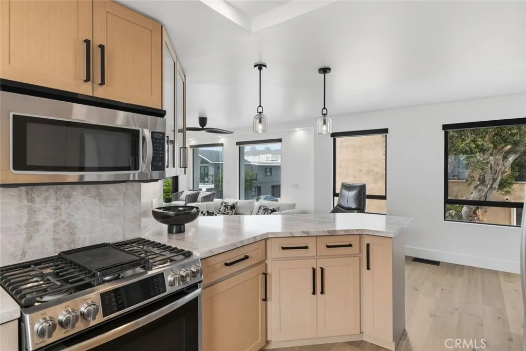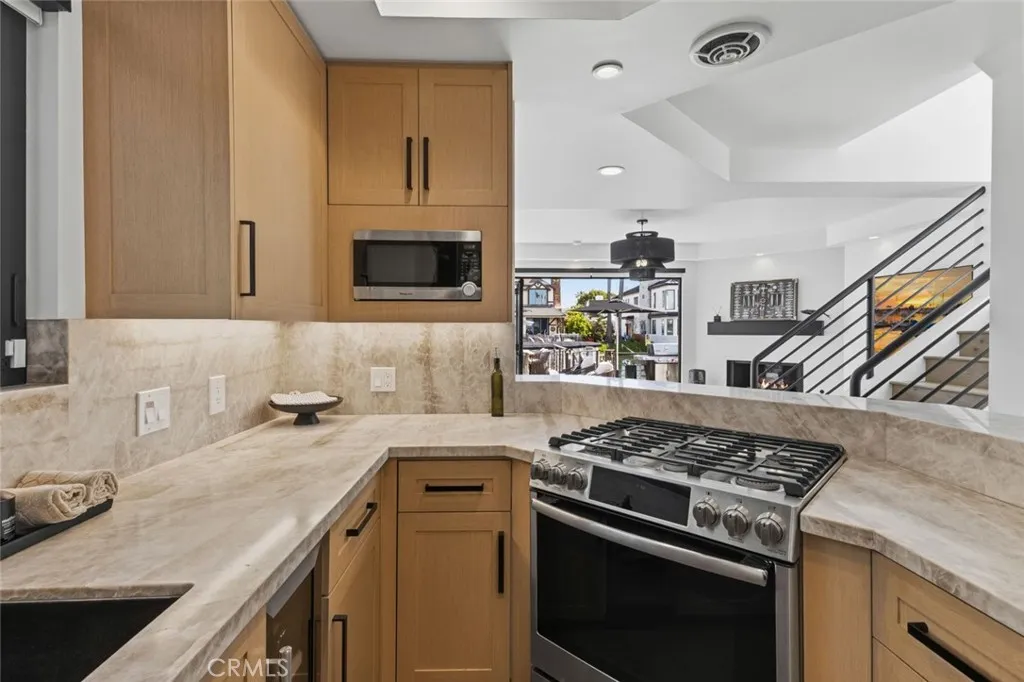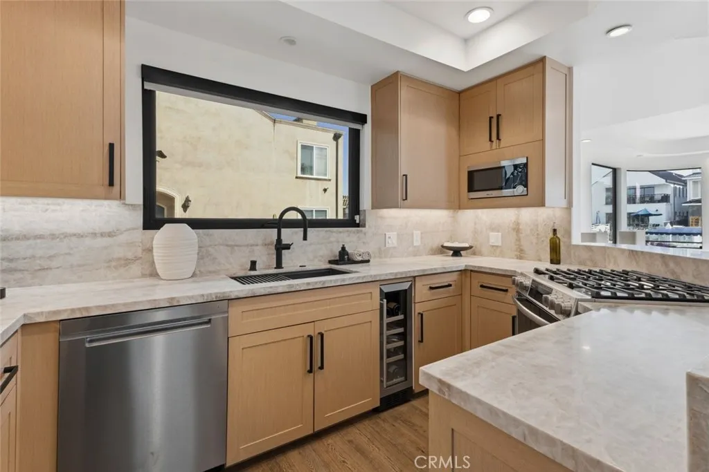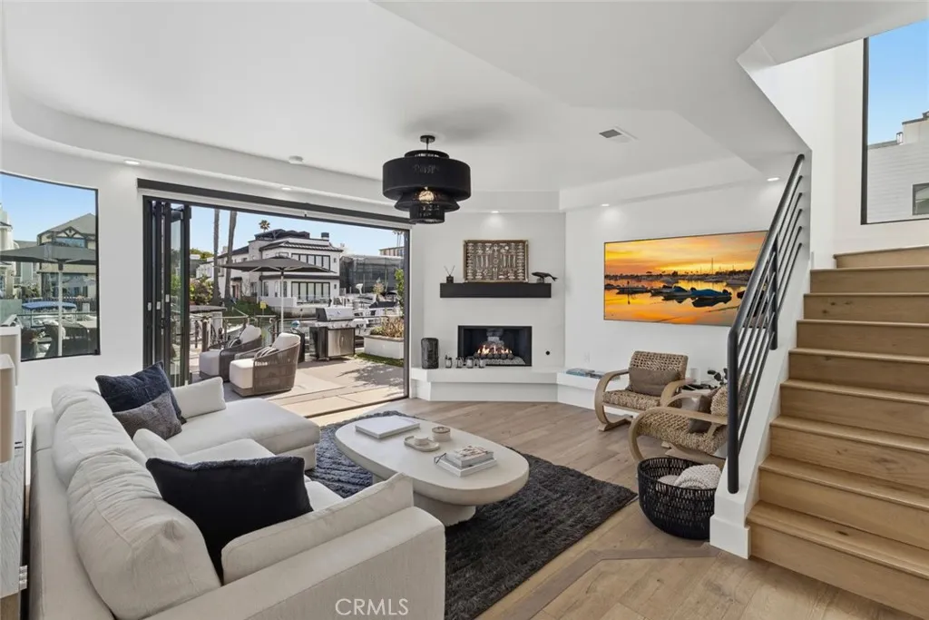 Completely remodeled luxury bayfront duplex in Newport Beach with private dock and just steps from the ocean. Recently elevated with high-end finishes and designer touches throughout, offering a rare blend of luxury waterfront living and flexibility of ownership. Situated along a quiet bay channel facing Newport Island, this location delivers a calm and intimate harbor setting. Watch the paddleboarders cruise by or untie your boat and head out on the bay. Pass under the Newport Blvd bridge and the greater harbor opens up to you. Motor to Lido Marina Village, the Cannery, Billy's & Class of 47, loop the islands, or venture out to the open ocean. Walk across the street to 40th Street Beach where the jetties frame the waves and the blue Pacific ignites your imagination. Bay side unit (3 bed | 4 bath | 1-car garage) opens directly to the water through expansive bifold doors connecting the living room to the bayside deck and dock. Both bay-facing bedrooms have private balconies. Middle guest suite has a Mr. Steam shower. Primary suite has its own fireplace, dual vanities and skylights. Includes a laundry/beach towel room. Ocean view unit (2 bed | 2 bath | 2-car tandem garage) offers an open-concept great room where the kitchen, living area and fireplace flow to an ocean-facing balcony. Primary bedroom has two balconies facing opposite directions with Pacific Ocean and Catalina views one way, and Saddleback Mountain & Newport Coast hills the other. Primary bath has twin skylights, floating double vanity and oversized glass shower. Both units completely renovated top to bottom, both kitchens and all 6 bathrooms. Kitchens feature Taj Mahal quartzite countertops, full slab backsplash, rifted white oak cabinetry & Kohler touchless faucets. Bathrooms redesigned with Restoration Hardware vanities, quartzite countertops, porcelain tile showers, marble master shower with glass doors & Delta/Kohler fixtures. Interiors include natural hardwood flooring, Emtek hardware, Hunter Douglas blinds & new interior doors. Exterior includes full repaint, resealed decks, blacked out railings, tinted glass garage doors, epoxied floors, Restoration Hardware sconces & new glass entry doors. Corner lot next to a landscaped greenbelt with no direct neighbor, adding space, privacy and light. Live in one, host guests or family in the other, or use one or both as a rental. All furnishings and new Duffy available and negotiable separately. Turn the key and live the Newport dream.