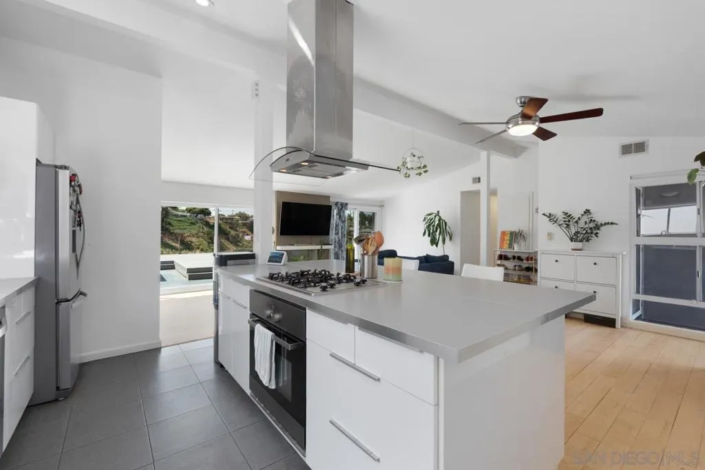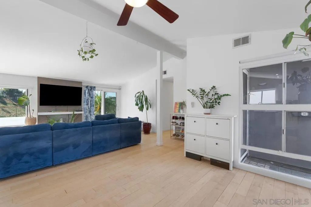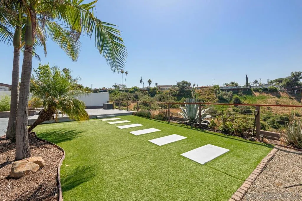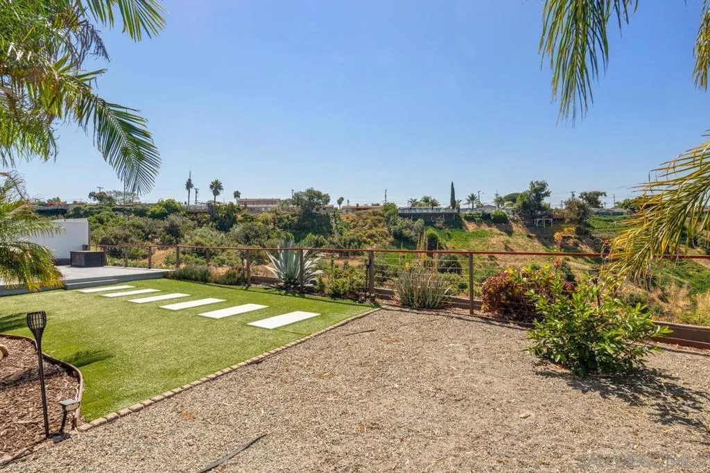 Serra Mesa single-level gem — 3 bed, 2 bath home with stunning canyon views and incredible privacy near impossible to find in San Diego situated perfectly on the canyon bluff. Bright, open floor plan featuring abundant windows that frame sweeping natural vistas. Updated kitchen with stainless appliances and ample storage flows to the dining and living areas — perfect for everyday living and entertaining. Fully paid off solar panels with a back up battery included make this an energy efficient money saver as well! Roof is under ten years old with lots of life left, and the property offers spacious boat/RV parking! Primary bedroom offers private en suite bath. Enjoy direct access to the rear patio where you can relax or dine al fresco while enjoying sunsets over the canyon. Two additional bedrooms and another full bath provide flexible space for guests, office, or hobbies. Central AC and heating! Waterless turf make the large lot low maintenance year round. Perfect location, near premiere shopping, schools and Stadium!