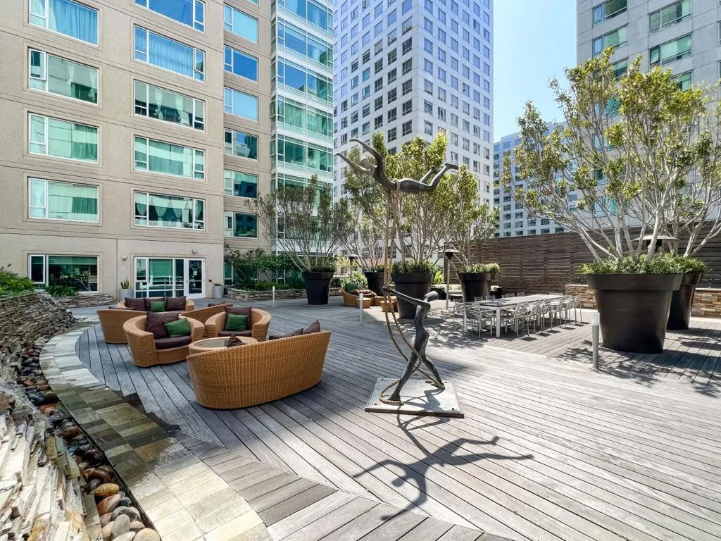 Enjoy modern city living in this bright 1-bed, 1-bath home at Soma Grand Tower. The open living space features dramatic windows, abundant natural light, and sweeping city views. The sleek kitchen includes stainless steel appliances, while the bedroom offers two closets, including a walk-in. A spacious bathroom and in-unit laundry add convenience. Soma Grand offers luxury amenities such as a 24-hours Concierge, Housekeeping service, Fitness center, Private green space, Fire pit, Rooftop courtyard with BBQ area, Hot tub, and Recreation room Located in the heart of SoMa, this home is close to dining, shopping, cultural attractions, freeway access, and Civic Center Station for easy commuting. Chic, service-rich, and set above the vibrant heart of the city, this Soma Grand residence delivers a level of urban living that is truly extraordinary.