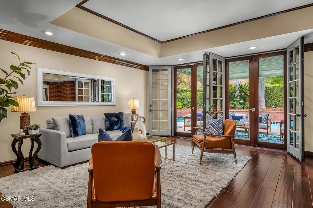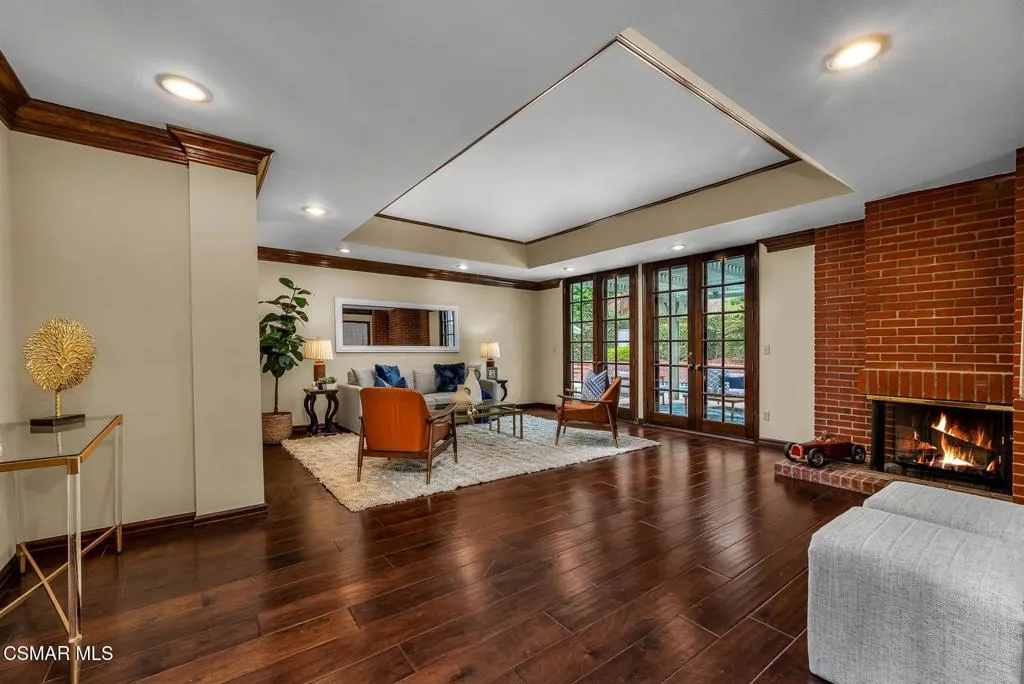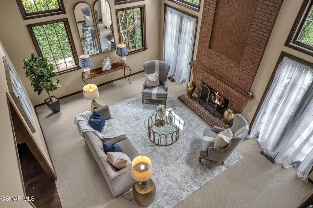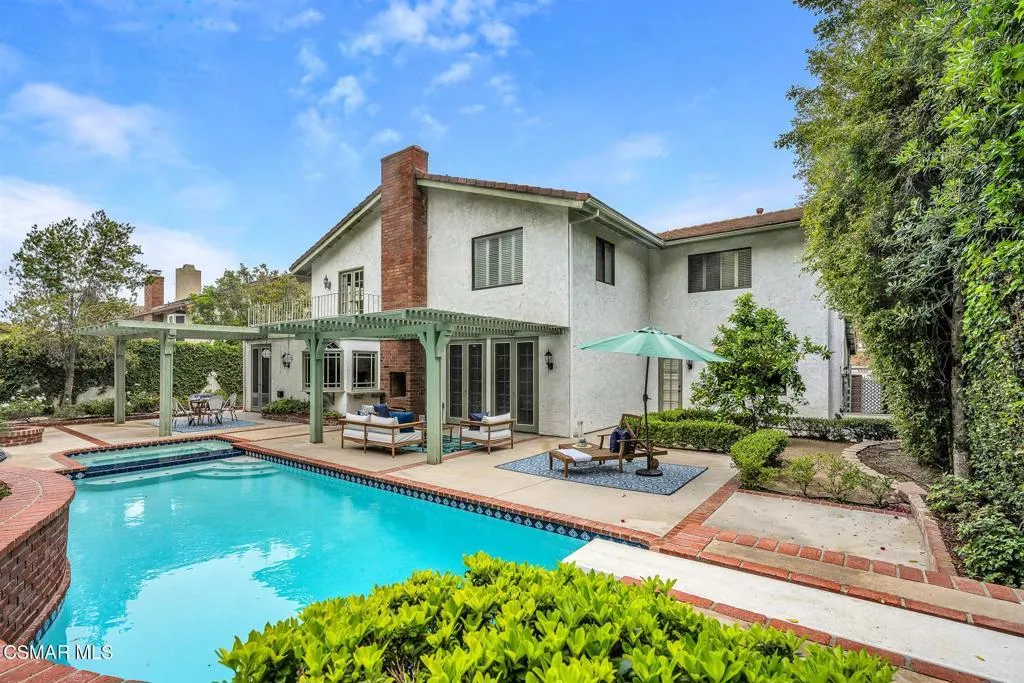 Tucked south of the Boulevard on a quiet cul-de-sac in Woodland Hills, this spacious two-story home offers over 3,700 square feet of well-balanced living space on an expansive lot of more than 13,000 square feet. Thoughtfully maintained over the years, the home reflects a sense of care and continuity that is felt throughout.Inside, the home is defined by soaring vaulted ceilings and beautiful wood detailing that bring warmth and character to the main living spaces. The living room and family room offer an impressive sense of volume, each anchored by its own fireplace, adding both comfort and architectural presence. Natural light filters throughout, creating an inviting and open atmosphere.The home features four bedrooms and four bathrooms, including a highly desirable bedroom and full bathroom on the main level, ideal for guests, extended family, or flexible living arrangements. Wood flooring runs through the main living areas, adding to the home's warmth and flow.The kitchen is equipped with a Wolf double oven, gas range, wine refrigerator, and generous workspace, designed for both everyday living and entertaining.Upstairs, the primary suite offers a private retreat with THREE walk-in closets, a fireplace, and ample space, set apart from the secondary bedrooms. The additional bedrooms are well-sized and thoughtfully positioned, providing versatility for a variety of needs. Dual HVAC systems serve both levels of the home.The backyard offers a peaceful and private setting with a pool and spa, along with plenty of space to relax, entertain, or personalize to your vision. Mature landscaping and the depth of the lot enhance the sense of privacy that is increasingly hard to find.Located near top-rated schools and just minutes from Calabasas Commons, The Village, and Westfield Topanga, and the Rams training facility, this home also offers convenient access to hiking trails and a scenic drive to Malibu. It combines space, architectural character, and location in one of Woodland Hills' most desirable settings.