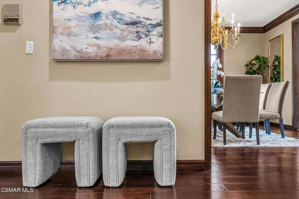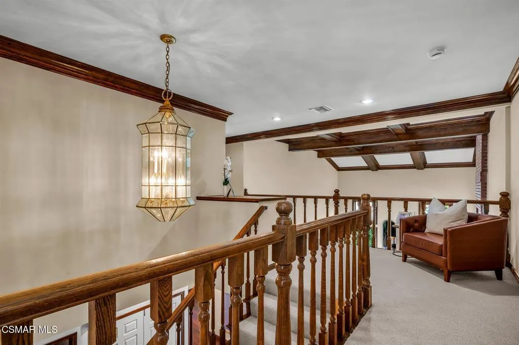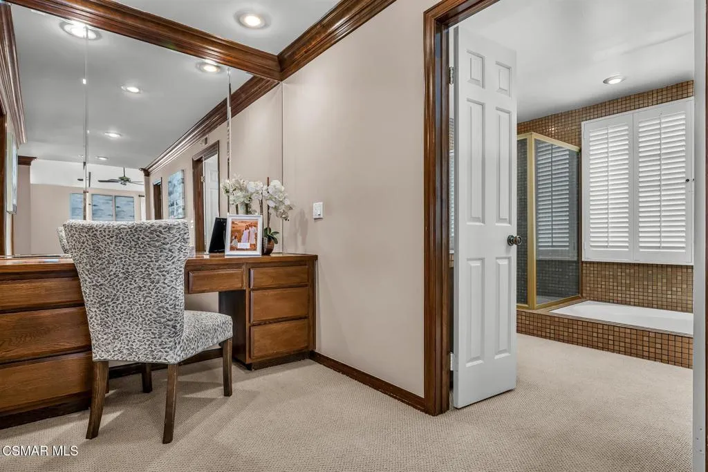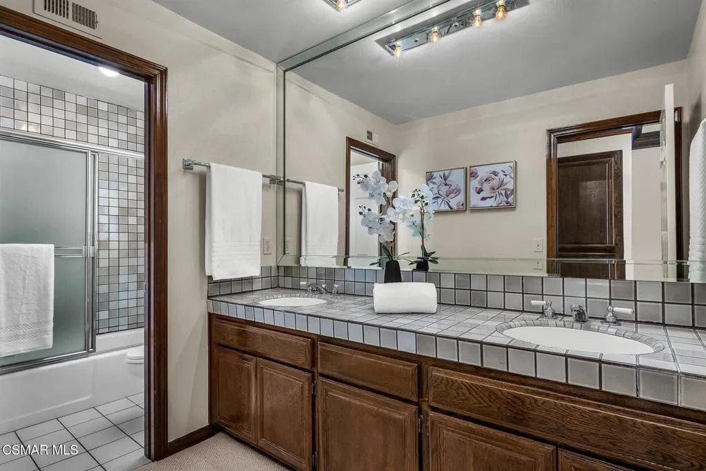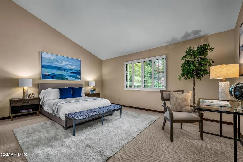 Tucked south of the Boulevard on a quiet cul-de-sac in Woodland Hills, this spacious two-story home offers over 3,700 square feet of well-balanced living space on an expansive lot of more than 13,000 square feet. Thoughtfully maintained over the years, the home reflects a sense of care and continuity that is felt throughout.Inside, the home is defined by soaring vaulted ceilings and beautiful wood detailing that bring warmth and character to the main living spaces. The living room and family room offer an impressive sense of volume, each anchored by its own fireplace, adding both comfort and architectural presence. Natural light filters throughout, creating an inviting and open atmosphere.The home features four bedrooms and four bathrooms, including a highly desirable bedroom and full bathroom on the main level, ideal for guests, extended family, or flexible living arrangements. Wood flooring runs through the main living areas, adding to the home's warmth and flow.The kitchen is equipped with a Wolf double oven, gas range, wine refrigerator, and generous workspace, designed for both everyday living and entertaining.Upstairs, the primary suite offers a private retreat with THREE walk-in closets, a fireplace, and ample space, set apart from the secondary bedrooms. The additional bedrooms are well-sized and thoughtfully positioned, providing versatility for a variety of needs. Dual HVAC systems serve both levels of the home.The backyard offers a peaceful and private setting with a pool and spa, along with plenty of space to relax, entertain, or personalize to your vision. Mature landscaping and the depth of the lot enhance the sense of privacy that is increasingly hard to find.Located near top-rated schools and just minutes from Calabasas Commons, The Village, and Westfield Topanga, and the Rams training facility, this home also offers convenient access to hiking trails and a scenic drive to Malibu. It combines space, architectural character, and location in one of Woodland Hills' most desirable settings.