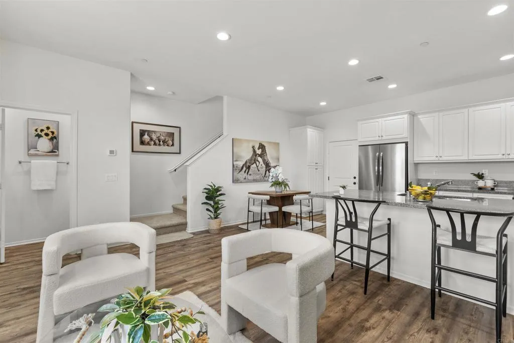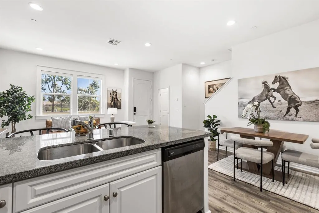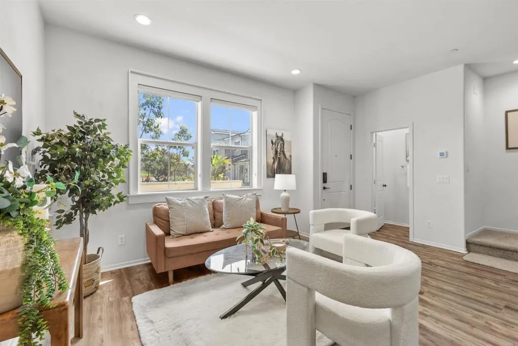 MOVE-IN READY.. Nestled in one of the most desirable communities of Chula Vista, this beautifully designed 3-bedroom, 2.5-bath townhome offers the perfect blend of style, comfort, and convenience. From the moment you arrive, you’ll appreciate the added privacy of having NO NEIGHBORS DIRECTLY IN THE FRONT, allowing for more open views and an abundance of natural sunlight throughout the home, and a welcoming setting. A charming private, exclusive-use patio creates an inviting entrance—ideal for morning coffee or relaxing evenings—before leading you into a bright and airy open-concept living and dining space. Thoughtfully upgraded with custom finishes, this home is perfect for both everyday living and entertaining guests. The functional layout includes a convenient downstairs half bath, while upstairs you’ll find generously sized bedrooms that provide a true sense of retreat and privacy. Brand-new carpet adds a fresh, move-in-ready touch, enhancing the home’s clean and modern feel throughout. Designed for today’s lifestyle, this home also features stainless steel appliances , an upstairs laundry room for added convenience, and an attached two-car garage side by side for easy access and storage. Ideally located within walking distance to highly rated schools and just minutes from shopping, dining, parks, and freeway access, this home offers the perfect balance of tranquility and accessibility. Offered at one of the best prices for a 3-bedroom home in Chula Vista, this is truly an exceptional opportunity you don’t want to miss. Experience comfort, privacy, and value all in one place—welcome home.