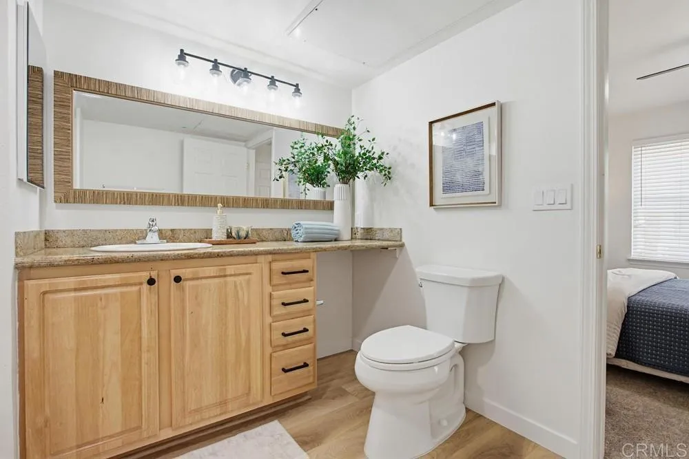 Welcome to this darling 3 bed/2 bath condo in the gated community of La Costa Villa. The home has been tastefully updated with new flooring, paint and lighting. The modern kitchen features granite counter tops, stainless steel appliances and gas stove. The open floor plan seamlessly connects the kitchen to the living and dining spaces. Abundant windows bring in natural light throughout the home enhancing the warm and welcoming atmosphere. Patio off of the dining space offers privacy with the lush landscaping in the complex. In unit laundry with side-by-side washer and dryer and a detached one car garage and 1 assigned parking space add to the homes appeal.