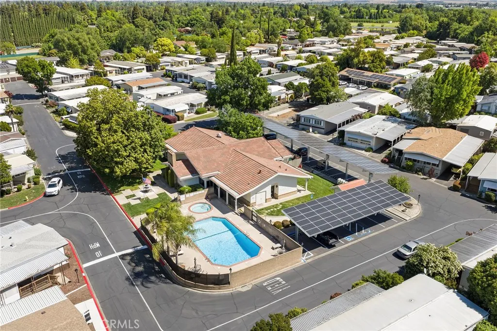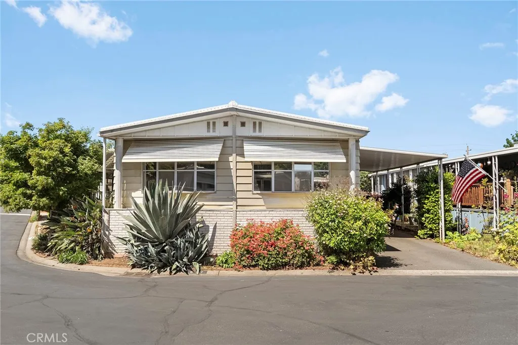 Welcome to the sought after Chico Mobile Country Club! This spacious triple wide home offers 1,680 square feet of recently updated living space with 2 bedrooms and 2 bathrooms, separate living room and family room and it even has a wet bar making this home perfect for hosting friends and family! Waterproof luxury vinyl plank flooring throughout and fresh interior paint that gives this home a bright, updated feel from the moment you walk in. Enjoy a fully enclosed patio, ideal for year around enjoyment. The coveted corner lot location means no neighbors to the south providing extra privacy and a more open feel. Additional highlights include a covered carport, laundry hookups, and a storage shed for all your extras. As a resident of Chico Mobile Country Club, you'll have access to an incredible array of amenities including a sparkling pool, relaxing hot tub, clubhouse open 365 days a year, library, on-site salon, car wash area, storage units, and RV parking. This community truly has it all!