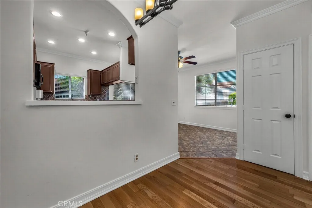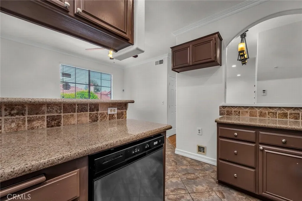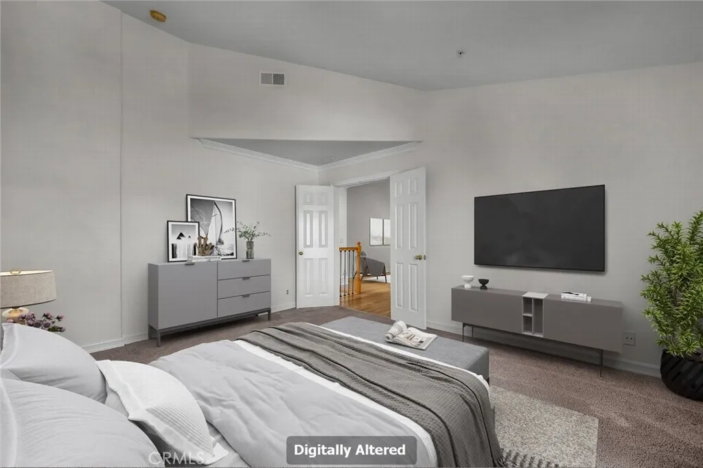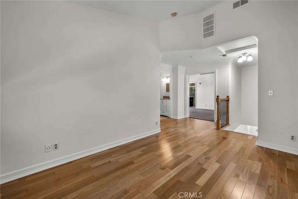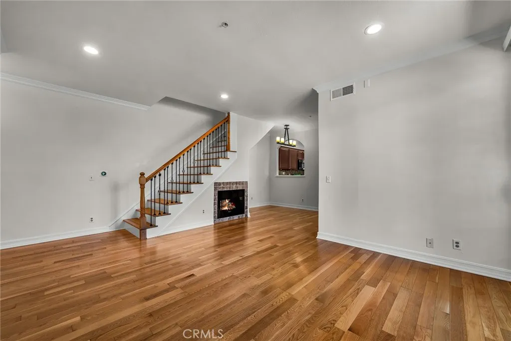 Stop the search—this is the townhome you’ve been waiting for. Beautifully upgraded tri-level residence, quietly tucked at the back of the complex, blending comfort, style, and everyday convenience. Designed for modern living and effortless entertaining, this light-filled home features soaring ceilings, abundant natural light, and an open, airy layout throughout. The main level welcomes you with a spacious living room highlighted by high ceilings, crown molding, recessed lighting, wood-style flooring, and a cozy fireplace. A sliding glass door opens to a large private balcony—perfect for morning coffee or evening relaxation. A convenient guest bathroom completes this level. The updated kitchen showcases warm Carmel-toned cabinetry, granite countertops, stone backsplash, stainless steel appliances, and decorative tile flooring, all opening seamlessly to a generous breakfast area ideal for casual dining. Upstairs, a decorative staircase leads to a versatile bonus area—perfect as a family room, home office, or media space. The expansive primary suite offers a peaceful retreat with a walk-in closet and an updated ensuite bathroom featuring a granite-top vanity and beautifully tiled step-in shower. The spacious secondary bedroom includes a mirrored closet and access to an updated hall bathroom with granite-top vanity and tub/shower combo. Both bedrooms enjoy direct access to a large, tranquil balcony, enhancing the indoor-outdoor flow. Additional highlights include a private two-car garage with washer and dryer, ample storage, and a well-maintained community featuring a pool and spa. Ideally located near shopping, dining, and with easy access to the 101 and 405 freeways, this home offers the perfect balance of comfort, convenience, and lifestyle.