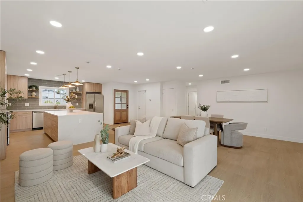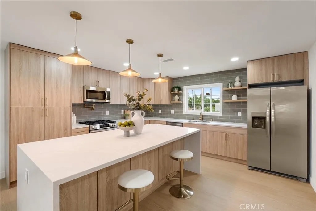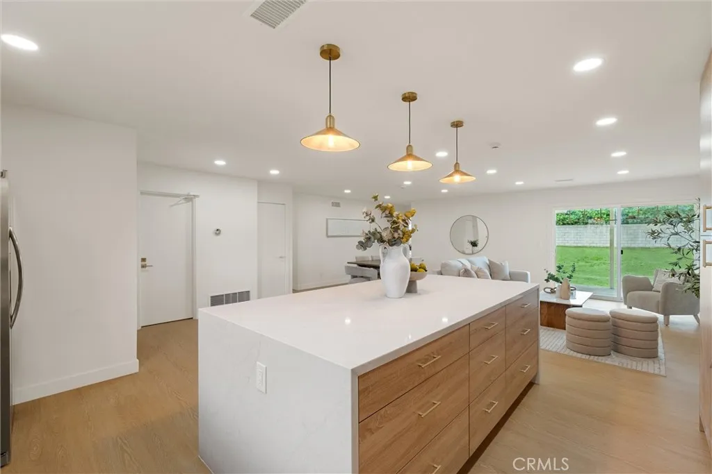 Welcome to this beautifully reimagined home in the heart of Carson, where modern design meets everyday comfort. This turnkey property features an open-concept layout with wide-plank SPC flooring, recessed lighting, and a seamless flow between the living, dining, and kitchen areas, perfect for both entertaining and daily living. The stunning chef’s kitchen is the centerpiece of the home, showcasing custom wood cabinetry, sleek quartz countertops, a large waterfall island with seating, pendant lighting, stainless steel appliances, and a stylish tile backsplash. Unwind in the inviting living room, complete with a contemporary fireplace and abundant natural light from the sliding glass doors leading to the backyard. The spa-inspired bathroom offers a freestanding soaking tub, double shower, modern fixtures, and clean, elegant finishes. Step outside to a spacious backyard filled with incredible potential. Whether you envision building an ADU, adding a pool, creating a garden retreat, or designing the ultimate outdoor entertainment space, the possibilities are truly endless. Additional upgrades include newer windows, updated electrical and plumbing fixtures, and a thoughtfully designed interior with warm, modern touches throughout. The home also features a spacious front yard, attached 2-car garage, and great curb appeal.