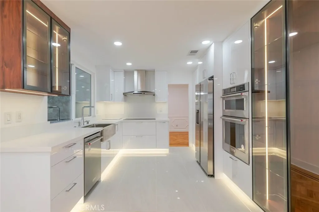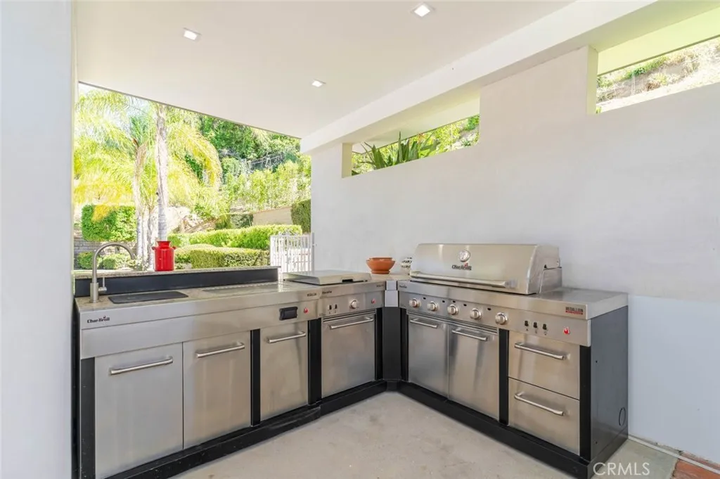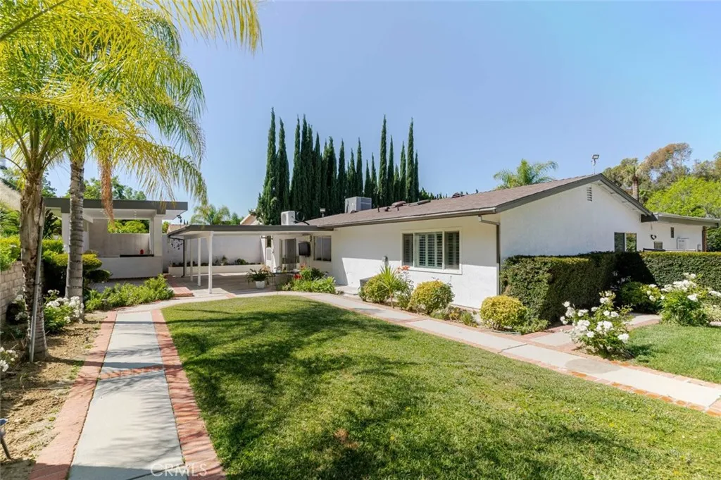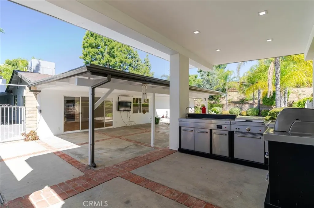 Welcome to this beautifully updated single-story home in the highly desirable Granada Hills neighborhood. Offering approximately 2,048 square feet of living space, this 4-bedroom, 3-bath residence blends timeless character with modern upgrades and exceptional indoor-outdoor living. The inviting interior showcases stunning hardwood flooring, recessed lighting, and a bright, open layout filled with natural light. A spacious living area centers around a sleek fireplace, creating a warm and comfortable setting for everyday living or entertaining. The fully remodeled kitchen is a standout feature, complete with contemporary cabinetry, high-end stainless steel appliances, clean quartz surfaces, and stylish illuminated display accents. The primary suite and additional bedrooms are generously sized, providing flexibility for family, guests, or a home office. Each bathroom has been thoughtfully updated with modern finishes for a polished, cohesive feel throughout. Outdoors, the property truly shines. A covered patio creates an expansive entertainment space, complemented by a built-in outdoor kitchen, perfect for hosting gatherings year-round. The landscaped yard offers privacy and room to relax, garden, or play, all set against a serene hillside backdrop. Additional highlights include an attached 2-car garage, well-maintained grounds, and a prime location near local dining, shopping, and freeway access. A rare opportunity to own a move-in-ready home that delivers style, comfort, and effortless California living.