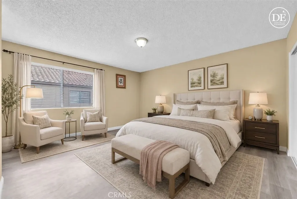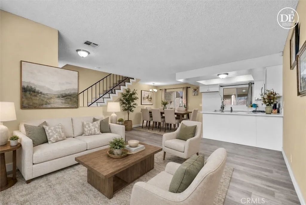 Step into this stunning, turn-key 2 bedrooms and 2 bathrooms REMODELED townhouse where every detail has been meticulously updated for the modern homeowner. Water proof vinyl plank flooring flows through the entire house. The heart of the home is a newly remodeled kitchen featuring brand new white cabinetry, new elegant quartz countertops, oversized sink and stainless steel appliances. The renovation continues into the two bathrooms, which feature sophisticated floor-to-ceiling wall tile, brand-new bathtub and shower, and brand-new sleek sliding glass doors. The layout includes two generous bedrooms, highlighted by a massive primary suite designed for ultimate relaxation. Other features include central air conditioning and heating system, and individual laundry room. Outdoor living is a breeze on the huge private balcony. Equipped with sun-blocking curtains for comfort, it is the ideal spot for summer BBQs and gathering with friends. Complete with a 2-car attached garage with direct access and extra storage space. Ultimate Convenience: Moments away from premier shopping centers, and central access to the 60, 10, 71, 15 and 91 freeways. HOA Monthly Fee is low $326 including Water and Trash Collection.