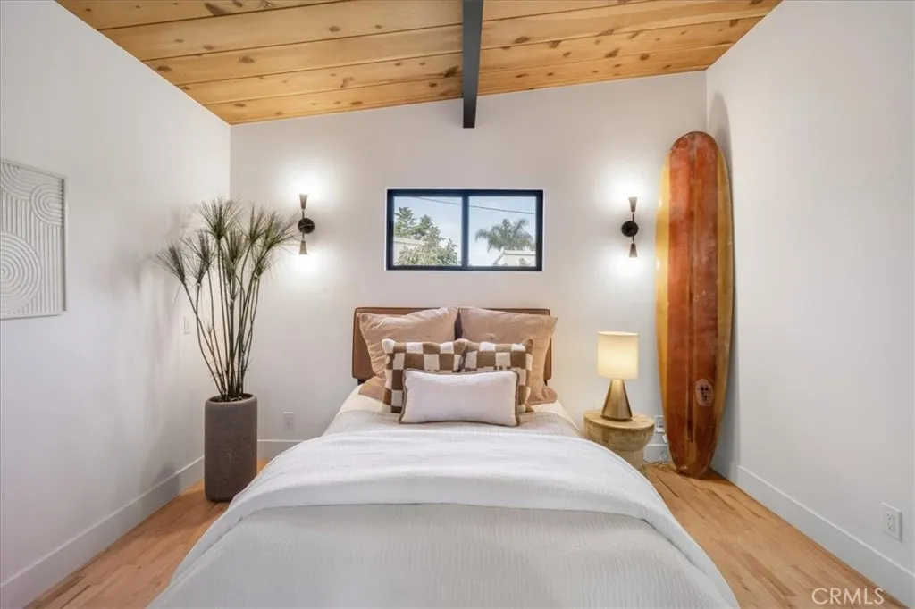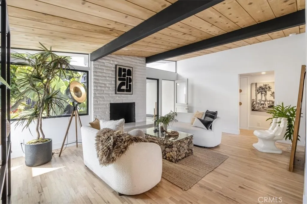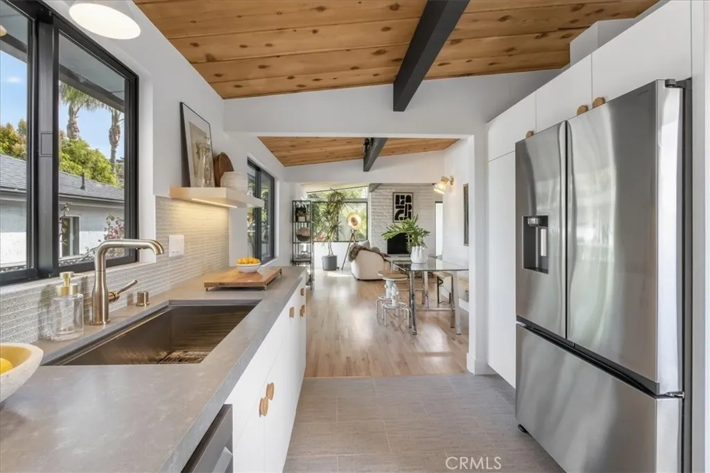 Ultimate Beach Bungalow | Coastal Luxury Meets Modern Living Welcome to 34431 Calle Naranja — a stunning 3 bedroom, 2 bathroom Dana Point beach bungalow where coastal charm and designer craftsmanship create an unparalleled living experience. Tucked just minutes from world-class beaches and with quick freeway access, this home delivers the ultimate Southern California lifestyle. From the moment you pull up, the fresh stucco exterior, brand-new driveway, and majestic palm trees set the tone. The gated front yard offers privacy and curb appeal, while the twilight exterior lighting elevates the home to an entirely new level of sophistication after sunset. Inside, soaring natural wood-beamed ceilings with bold black accents create a warm architectural centerpiece that flows throughout the entire home. Original hardwood floors have been meticulously refinished with a natural finish perfectly suited to the coastal aesthetic. Level 5 smooth walls, new Milgard windows, refined 1¾” kerf interior doors, and designer fixtures and hardware complete the picture of a home where every detail was considered. The chef’s kitchen features custom white cabinetry with warm gold hardware, premium stainless appliances including a gas range, textured tile backsplash, and sleek stone countertops — all beneath those iconic wood ceilings. Custom cabinetry continues into both bathrooms and the linen closet, with spa-inspired finishes throughout. Step outside to your own private tropical retreat. The lush, fully landscaped backyard with new irrigation, dedicated gas line for the BBQ, and a brand-new deck is designed for effortless entertaining. Tropical plantings, a meandering grass lawn, and a relaxed lounge area give this yard a true resort feel. Loaded with smart upgrades: owned solar, new high-efficiency HVAC, 240V EV charging, pre-wiring for whole-home audio and video, a new smart lighting system, and a finished drywalled garage. The new deck off the upper level adds additional outdoor living space with peekaboo neighborhood views. Moments to Dana Point Harbor, Doheny and Salt Creek beaches, the Lantern District, and the 5 freeway — this is the beach bungalow you’ve been waiting for.