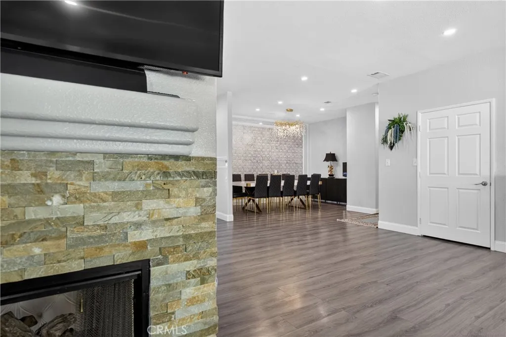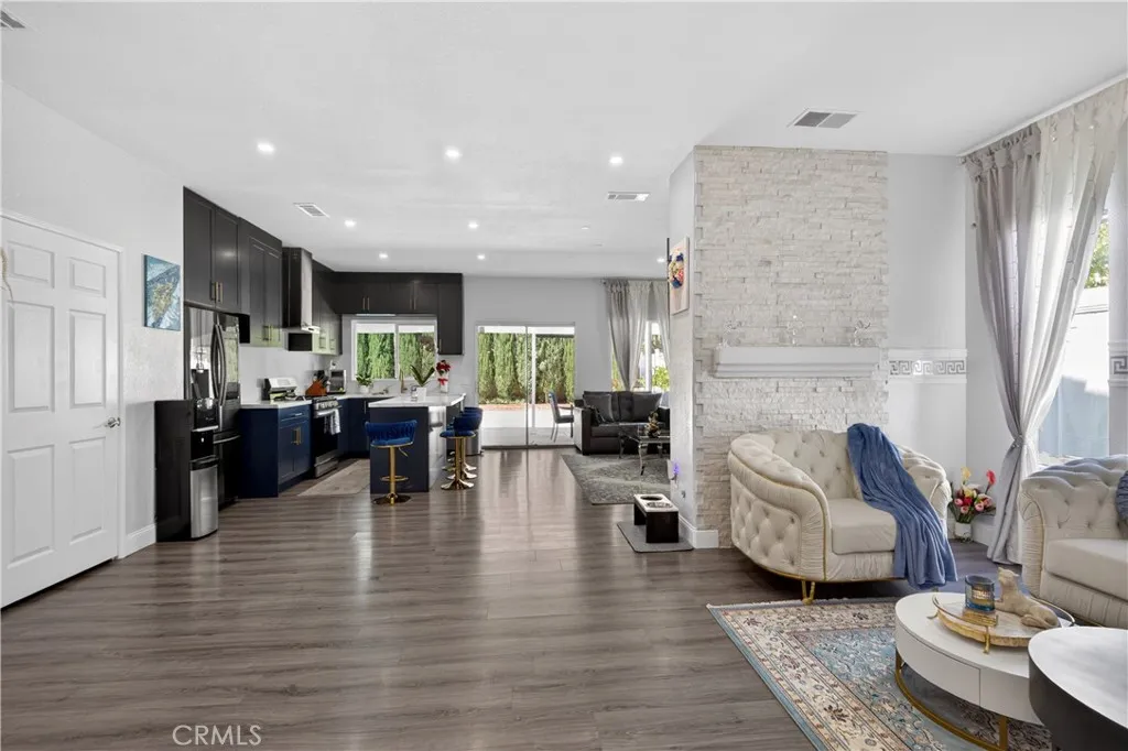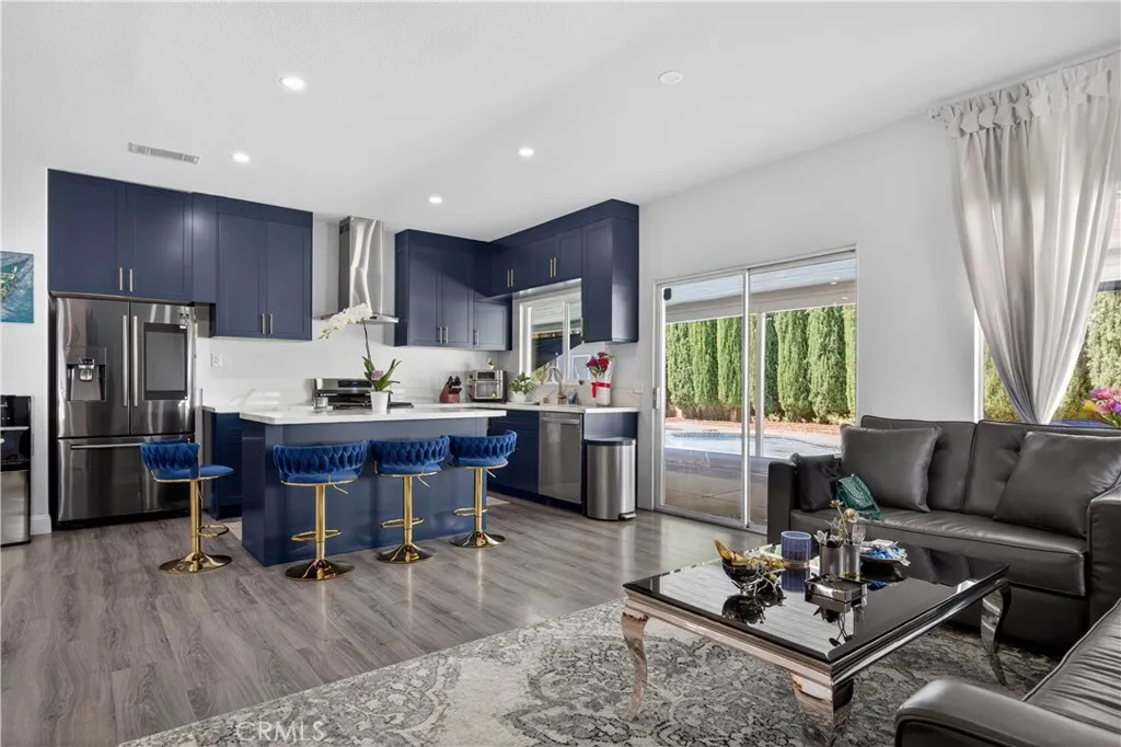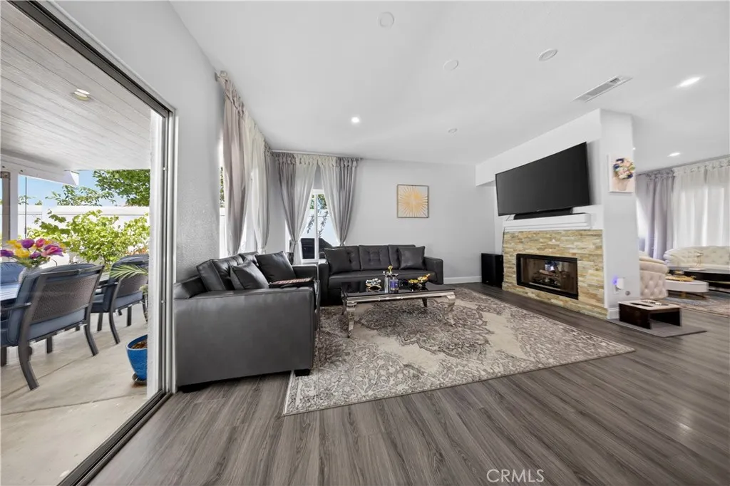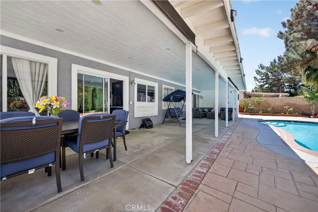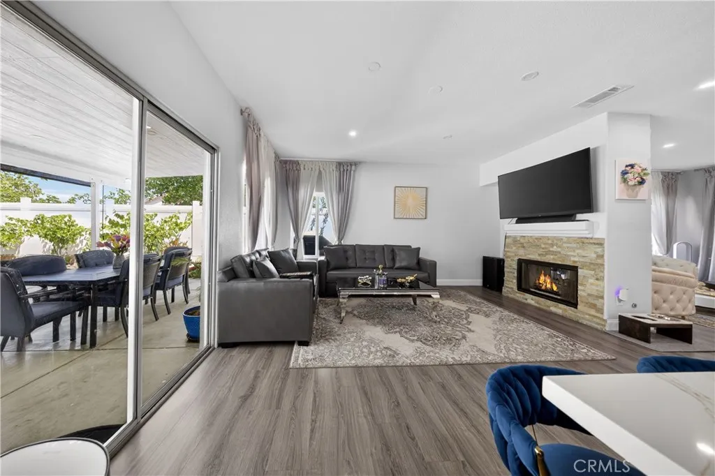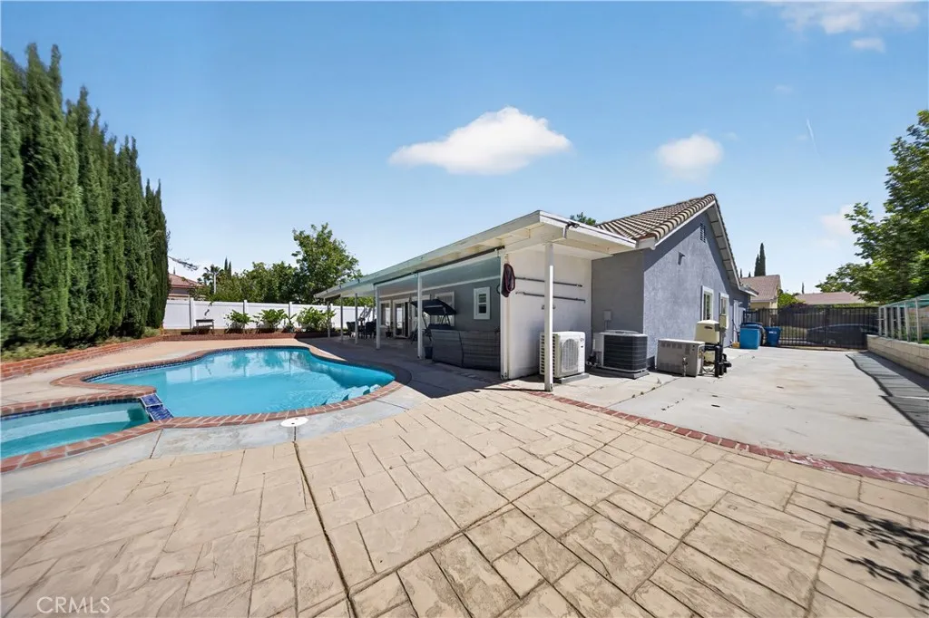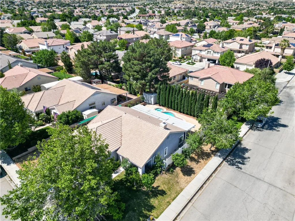 Welcome to this stunning single-story pool home on a desirable corner lot in West Palmdale. With exceptional curb appeal, the property features a beautifully landscaped front yard, RV access, a two-car garage, and a charming front porch. Inside, you’ll find stylish vinyl wood flooring throughout and a striking double-sided fireplace that seamlessly connects the living and family rooms, creating a warm and inviting atmosphere. Recessed lighting extends throughout the home and outdoor patio, adding both comfort and ambiance. The fully remodeled kitchen serves as the heart of the home, showcasing custom cabinetry, upgraded countertops, and a spacious center island—perfect for everyday living and entertaining. Additional highlights include a versatile den ideal for a home office or flex space, a separate laundry room, and a generously sized primary suite. The primary bathroom offers a spa-like feel with marble flooring, dual vanities, and a separate soaking tub and shower. Step outside to your private backyard retreat featuring a sparkling pool and spa, low-maintenance landscaping, a covered patio, and expansive concrete areas—ideal for entertaining or relaxing. Situated on a quiet cul-de-sac in a sought-after West Palmdale neighborhood near Rancho Vista, this home offers convenient access to the 14 Freeway, top-rated schools, parks, and shopping. This home truly has it all—schedule your private showing today!