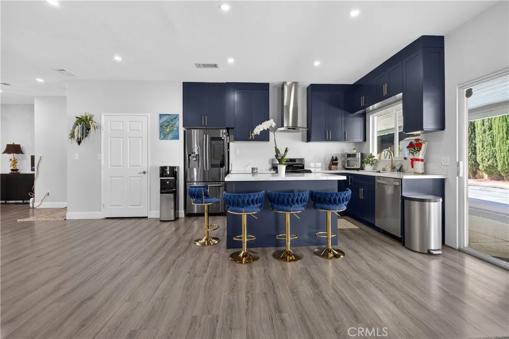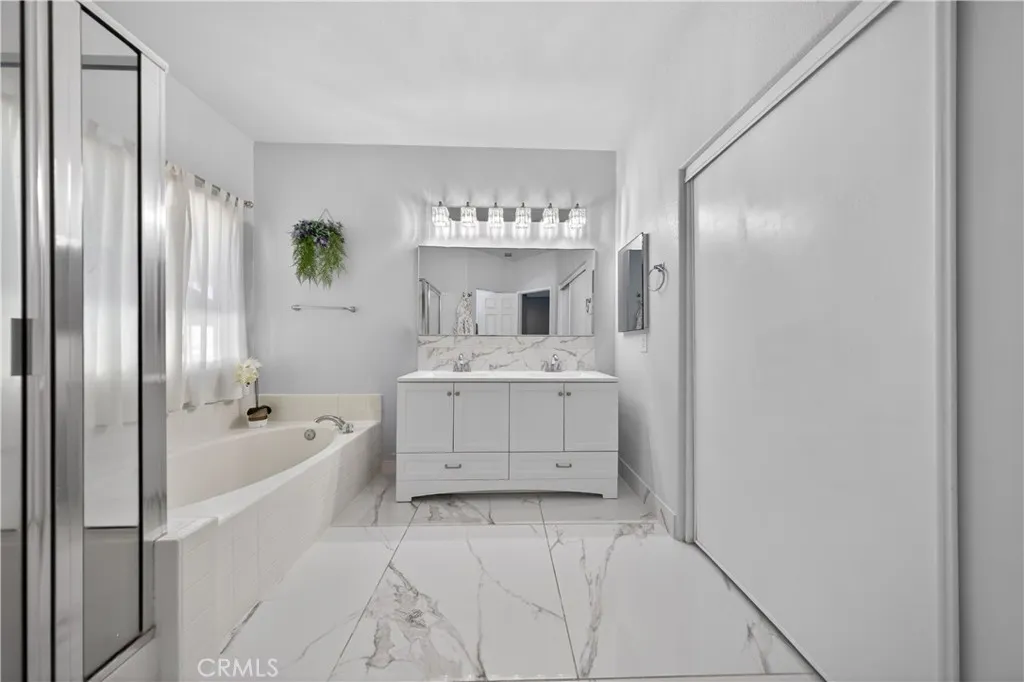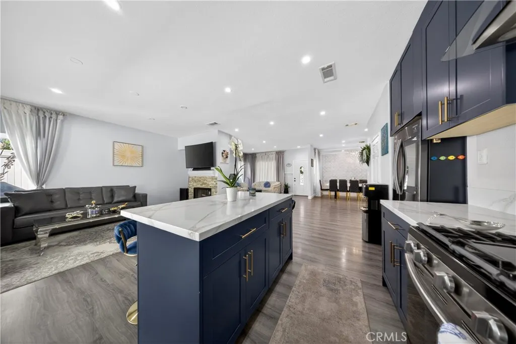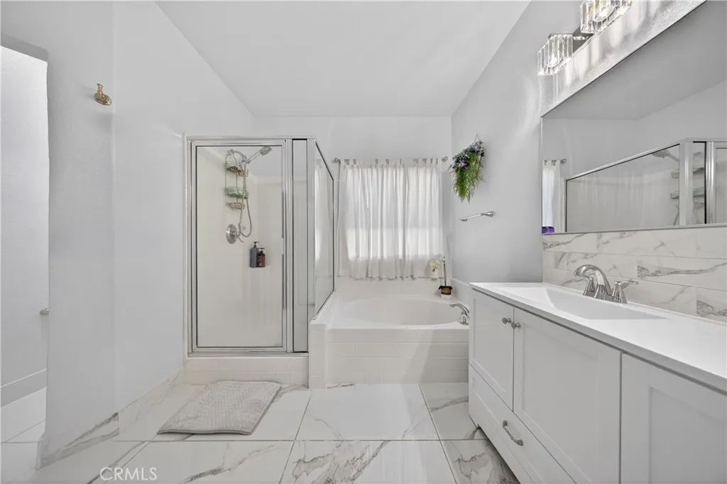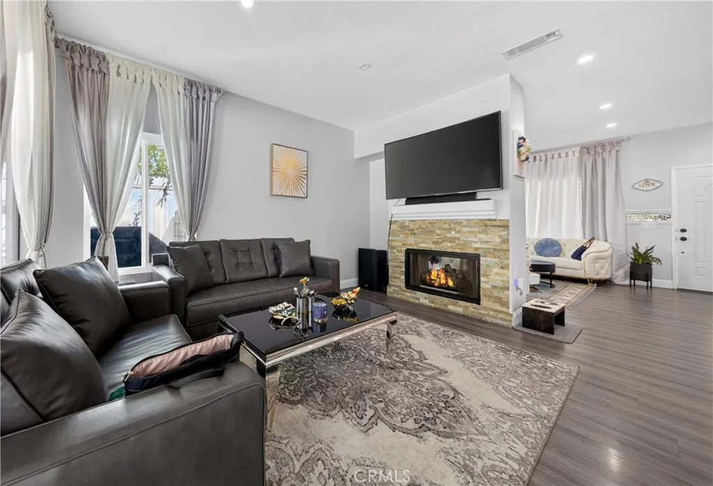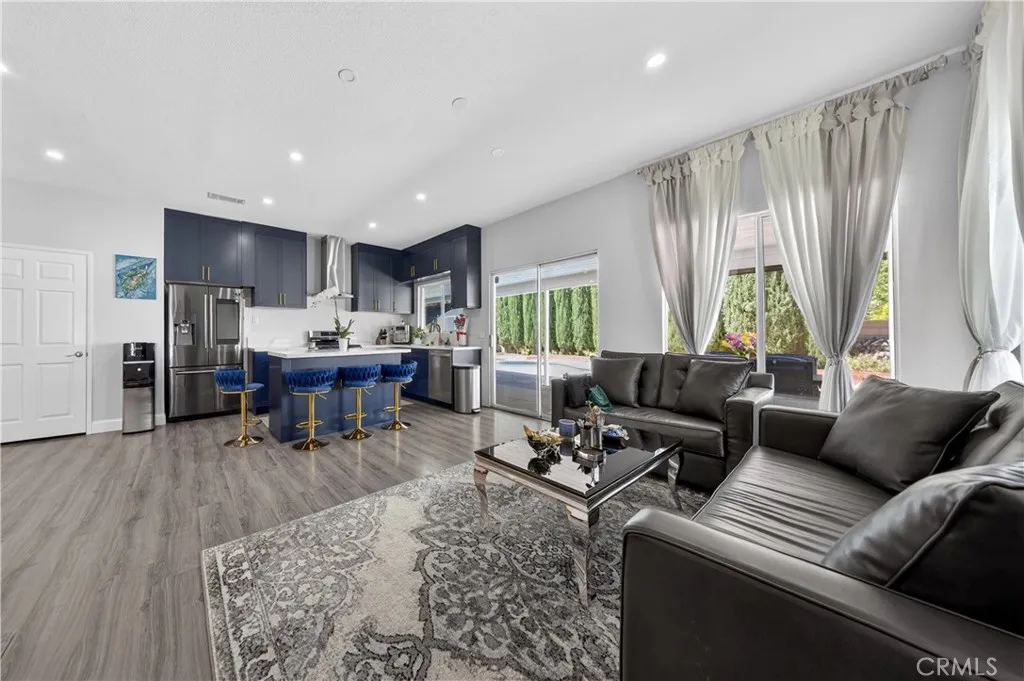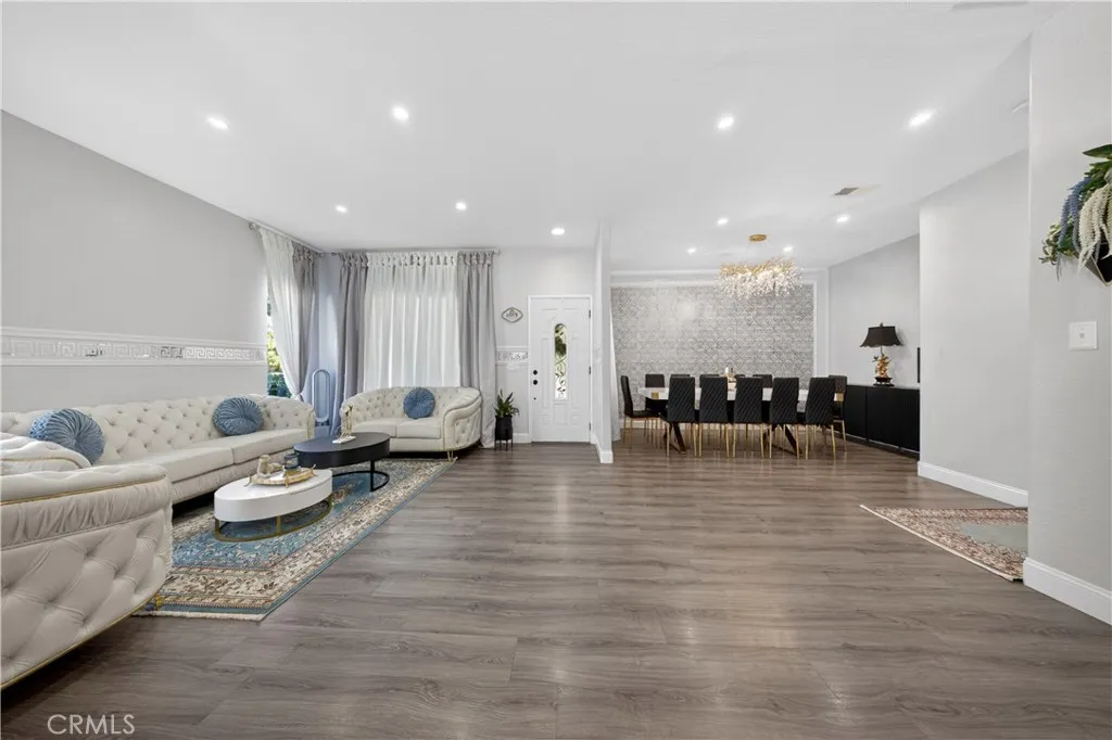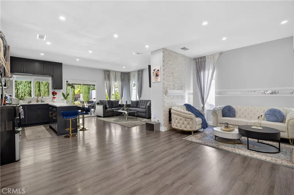 Welcome to this stunning single-story pool home on a desirable corner lot in West Palmdale. With exceptional curb appeal, the property features a beautifully landscaped front yard, RV access, a two-car garage, and a charming front porch. Inside, you’ll find stylish vinyl wood flooring throughout and a striking double-sided fireplace that seamlessly connects the living and family rooms, creating a warm and inviting atmosphere. Recessed lighting extends throughout the home and outdoor patio, adding both comfort and ambiance. The fully remodeled kitchen serves as the heart of the home, showcasing custom cabinetry, upgraded countertops, and a spacious center island—perfect for everyday living and entertaining. Additional highlights include a versatile den ideal for a home office or flex space, a separate laundry room, and a generously sized primary suite. The primary bathroom offers a spa-like feel with marble flooring, dual vanities, and a separate soaking tub and shower. Step outside to your private backyard retreat featuring a sparkling pool and spa, low-maintenance landscaping, a covered patio, and expansive concrete areas—ideal for entertaining or relaxing. Situated on a quiet cul-de-sac in a sought-after West Palmdale neighborhood near Rancho Vista, this home offers convenient access to the 14 Freeway, top-rated schools, parks, and shopping. This home truly has it all—schedule your private showing today!