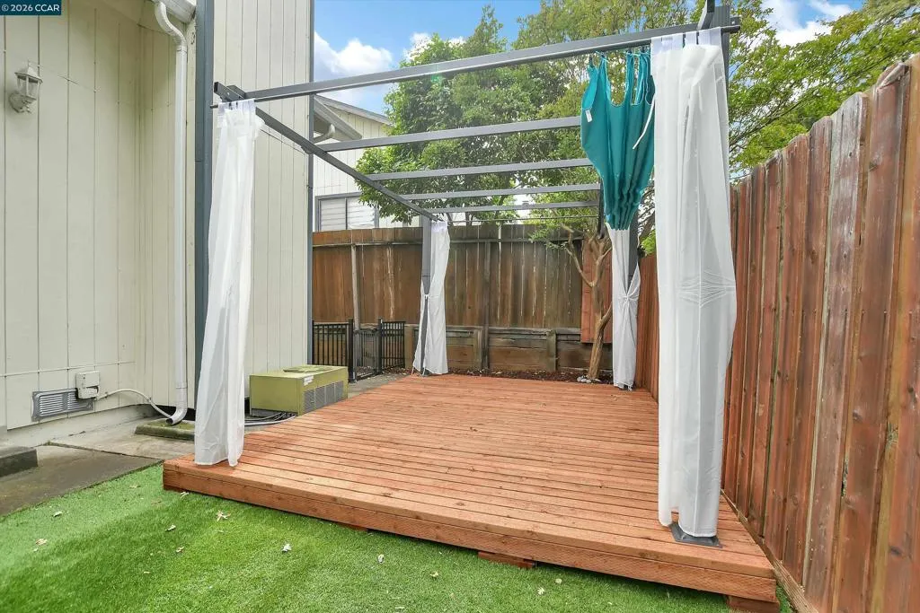Rarely available, beautifully updated townhome with a 2-car garage! Highly desirable corner unit in a peaceful, tree-lined community filled with natural light. Freshly painted inside and out, this home offers both style and comfort. The spacious living room features vaulted ceilings, wood laminate flooring, and an updated electric fireplace with a built-in entertainment center. The modern kitchen includes granite countertops and newer stainless steel appliances. The oversized primary bedroom showcases crown molding and a custom built-in closet system. Additional upgrades include dual-pane windows and patio doors, along with elegant white plantation shutters throughout. Enjoy seamless indoor-outdoor living with a large living area that opens to a private fenced backyard perfect for relaxing or entertaining. Both front and back yards feature low-maintenance artificial turf for water conservation. Ideally located near downtown Concord with quick access to freeways and BART. Low HOA dues. Move-in ready!
