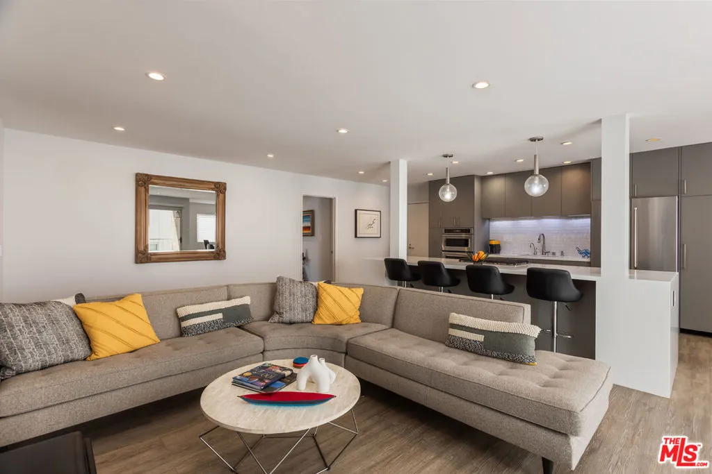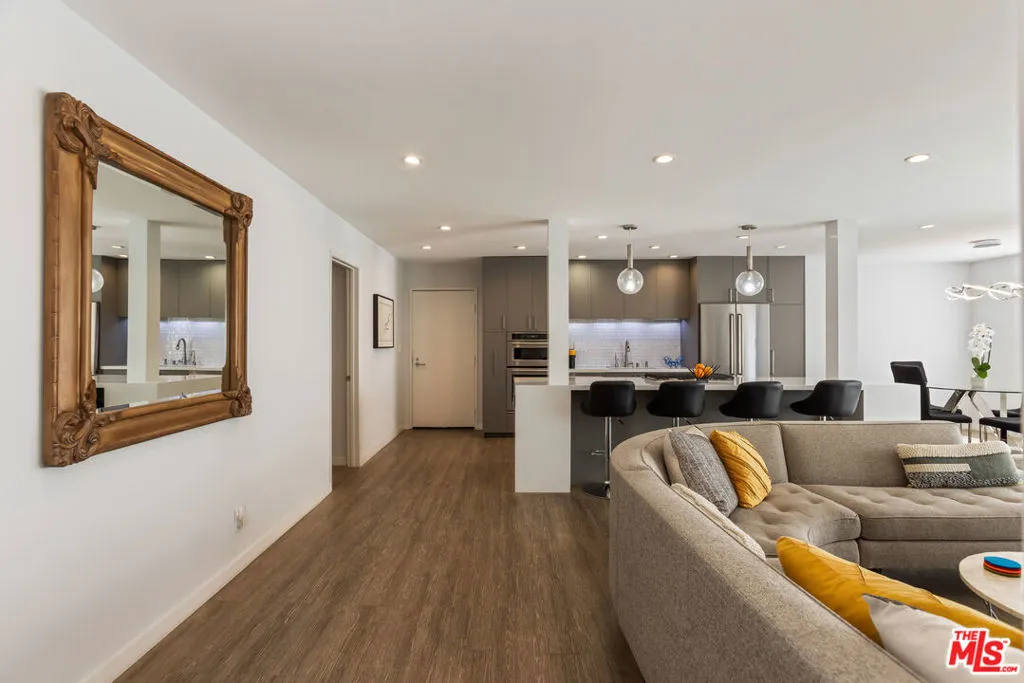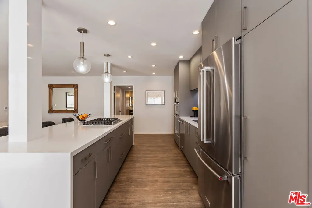 Chic, updated, single-level, top floor, private, corner unit condo with serene treetop views. The Westwood Bentley is an intimate 14-unit building on a charming tree lined street. This "done" light filled, 3 bedroom, 3 bath bright residence offers a rare opportunity to own a perfectly designed layout with a calm, zen-like feeling with no neighbors on either side. The beautifully renovated kitchen is a focal point and a cooks dream, featuring a striking waterfall island, soft close cabinetry with pull outs, Legrand pop up outlets and a premium KitchenAid appliance suite. The open concept flows seamlessly into the living and dining area ideal for both entertaining and everyday living-while a private balcony provides the perfect spot for a morning cup of ambition. Additional highlights include, recessed lighting, Hunter Douglas Silhouette coverings, vinyl plank flooring in the main living areas, dual pane windows, Central HVAC system, ample closet space, a gas fireplace and carpeting in the bedrooms. All bathrooms and kitchen were remodeled in 2021. The first bedroom offers privacy with its own en suite with full bath and separate entry, perfect for guests or extended family. Down the hall, a spacious second bedroom (currently used as a home office with built in dual desks) sits adjacent to another bath. The Primary suite is tucked in the rear and features a walk in closet and a beautifully updated full bath. The building is ADA compliant, has controlled access gated garage parking and a convenient storage closet located on the same floor as the unit. Enjoy an unbeatable location with a high walk score just minutes away from shopping and dining nearby. A short drive to UCLA, Sawtelle, Westfield Century City, Westwood and Brentwood Village, Bristol Farms, Trader Joe's and the Beach with easy freeway access. This is Westside living at it's best.