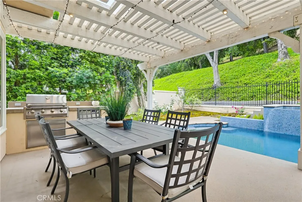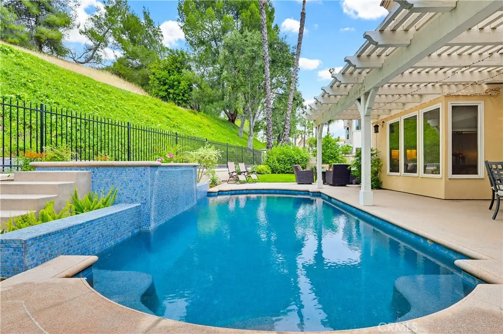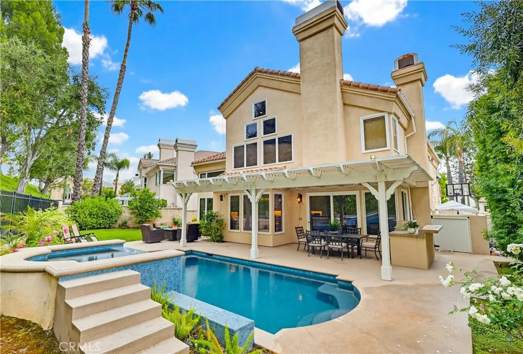 Tucked away on a quiet cul-de-sac within the prestigious, guard-gated Bellagio community of Calabasas, this beautiful, light-filled home offers an exceptional blend of elegance, comfort, and thoughtful design. Spanning over 3,200 square feet, the home is well suited for both everyday living and memorable entertaining. From the moment you step inside, the dramatic two-story entry and living room set the tone with a striking sense of space and openness. The inviting layout is designed for both functionality and flow, featuring a formal living room, elegant dining room, and a warm family room that opens seamlessly to the backyard. The well-appointed kitchen connects effortlessly to the living spaces and features a 6-burner Viking range, built-in refrigerator, and a breakfast nook with views of the backyard. A private downstairs bedroom with its own en-suite bathroom provides an ideal retreat for guests or extended family, while a separate powder room serves the main living areas. Upstairs, you’ll find three generously sized bedrooms, each with its own en-suite bathroom, along with a versatile bonus room that offers endless possibilities—ideal as a home office, playroom, gym, or potential fifth bedroom. The expansive primary suite is a true sanctuary, featuring a generously sized bathroom with dual vanities, a soaking tub, oversized shower, and a large walk-in closet, plus an additional substantial closet within the bedroom. Set on an expansive nearly 10,000 square foot lot, the backyard is a private oasis. Enjoy a sparkling pool and spa with a tranquil waterfall, along with a large grassy area perfect for relaxation, play, or hosting. Additional highlights include a 3-car garage and a dedicated laundry room, offering both convenience and practicality. Ideally located just moments from Calabasas Lake and The Commons at Calabasas, with easy access to dining, shopping, and the highly acclaimed Las Virgenes Unified School District, this home offers an exceptional opportunity to own in one of the area’s most sought-after communities, featuring beautifully maintained grounds and a sense of privacy. This is more than just a home—it’s where comfort, space, and lifestyle come together beautifully.