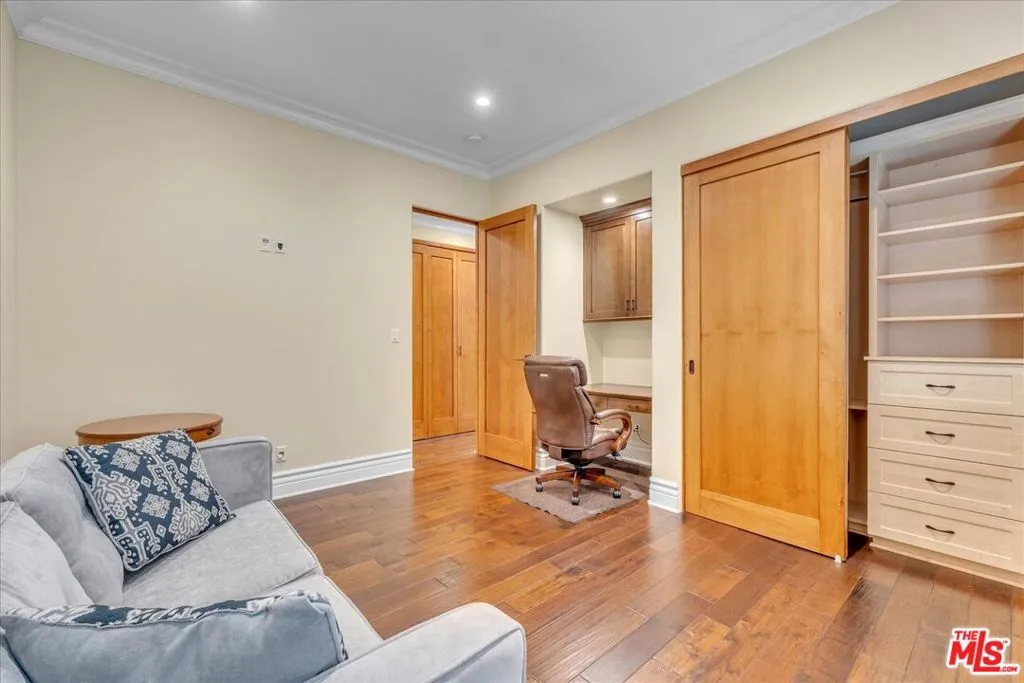 BREATHTAKING 18,000+ sq. ft. GATED LOT! Sensational immaculate and like-new 3 + 3.5 stunning home with 10' ceilings and wood floors thru-out. Absolutely drop-dead gorgeous and fully (yet sparsely) furnished. Perfect for an artist/ writer/ creative / work-from-home person. Sparse and clean - ready to move in tomorrow. See photos - everything is top notch. Soaring ceiling formal entry foyer. Large Liv Rm/Great Rm w/FP and Entertainment Center. Designer kitchen with high counters, KitchenAid appliances and a sunny front-facing BK. Primary suite with huge walk-in closet and french doors to yard and patio. Guest bedroom is en suite and 3rd bedroom is set up as an office w/ loveseat. Powder 1/2 bath off entry. Built-in speakers/surround-sound in LR, baths, primary and outdoors. Patio is replete with patio furniture and gas heater for parties. Brand new BBQ provided. The yard is turf, not real grass, and the landscape is on a drip system. Washer & Dryer in hall closet - full size newer machines. New tankless water heater. Detached 2-car Garage is clean with storage cabinets & ladder for tenant to use. Exterior security cameras. Owner shall retain the Guest House for storage and to stay in if he visits the area. The Owner put his heart and soul into this house and it shows. Bring your fussiest clients - you can eat off the floor in this house! Close to Houses of Worship, pre-schools and religious institutions, as well as a quick jump onto Coldwater Cyn for Westside access.