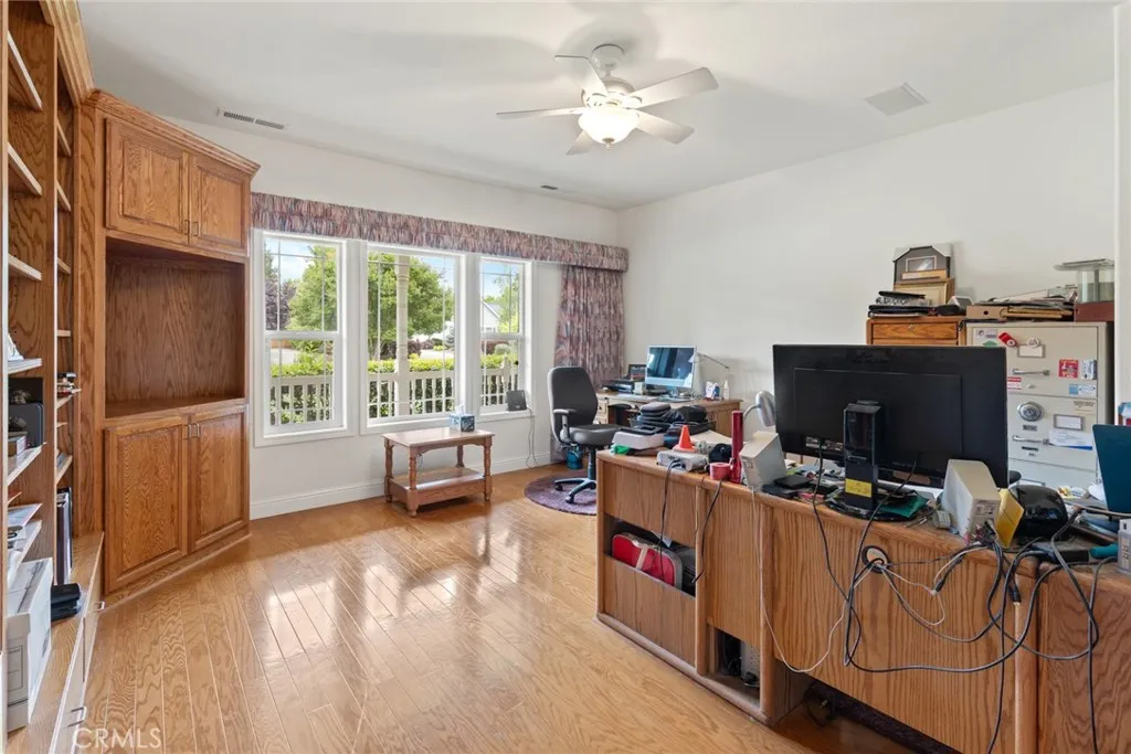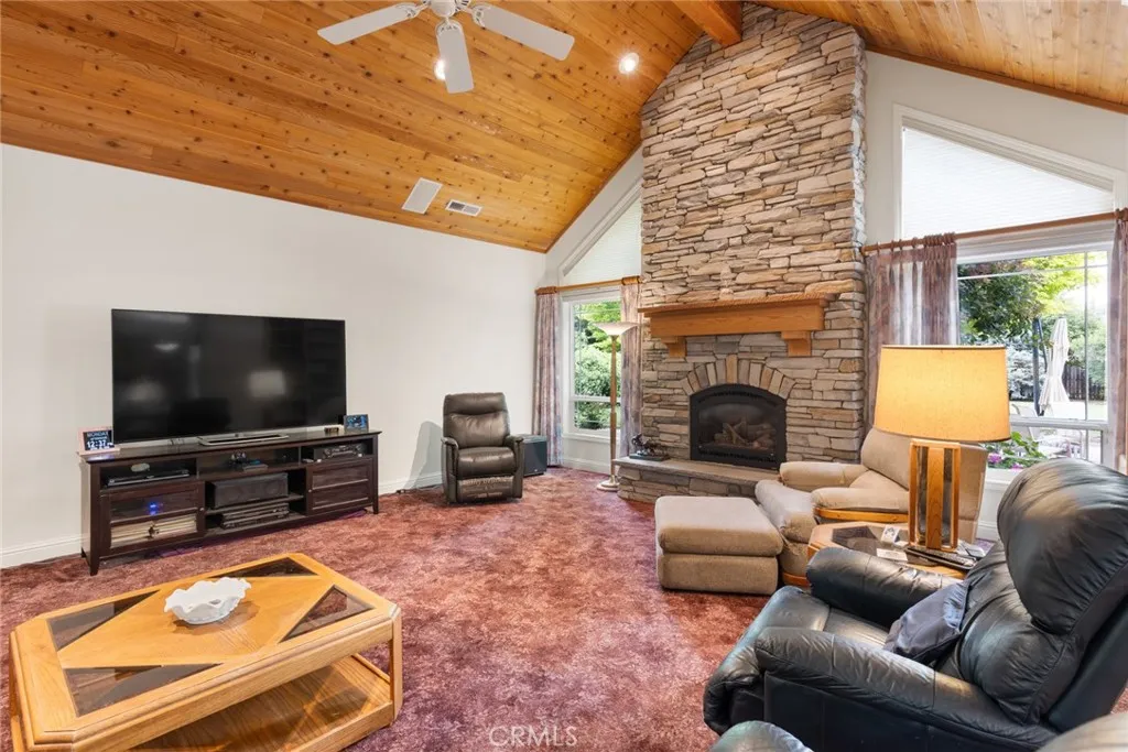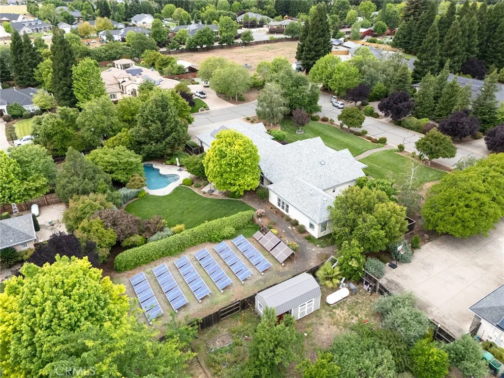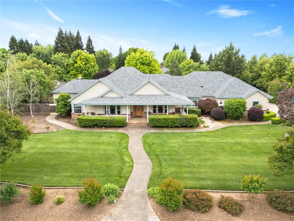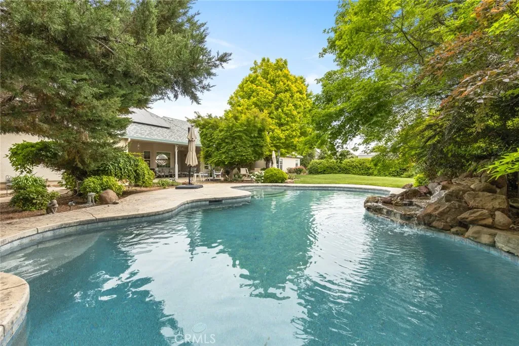 From the moment you arrive at this majestic corner lot north of town, the quality of this Schuster-built estate is unmistakable. Spanning nearly an acre, the property is framed by tasteful, mature landscaping that creates a private sanctuary of peace and prestige. This is a home that balances grand proportions with a genuine sense of warmth, offering a sprawling 3,268 square feet of living space that includes 4 spacious bedrooms and 3 full baths. You can move in with total peace of mind knowing the home features a BRAND NEW ROOF and the incredible financial advantage of fully OWNED solar energy, ensuring exceptional efficiency for years to come. The interior is defined by a sense of openness and grace, where rich hardwood floors lead you through wide hallways into an expansive open floor plan designed for effortless living. The heart of the home is a kitchen built for connection, boasting elegant Corian countertops, a massive walk-in pantry, and an abundance of cupboard space that ensures a place for everything. Whether you are hosting large holiday gatherings in the dining room or enjoying a quiet morning at the kitchen bar or kitchenette, the flow of this home feels natural and inviting. The primary suite serves as the ultimate retreat, anchored by a cozy fireplace that adds a layer of intimacy, while the en-suite bath invites you to relax in the deep soaking tub. Storage and workspace are a hallmark of this property, starting with the oversized 3-car garage that offers extra room for projects and loads of built-in storage, supplemented by pull-down stairs for easy attic access. Outside, the living space is elevated to a resort-like experience. The backyard is centered around a lovely salt water pool, where the calming sound of a cascading waterfall provides a serene backdrop for summer afternoons. Located in a highly desirable and impeccably maintained neighborhood, this gorgeous residence represents a spectacular opportunity to own a home that truly provides both the space you need and the luxury you deserve.