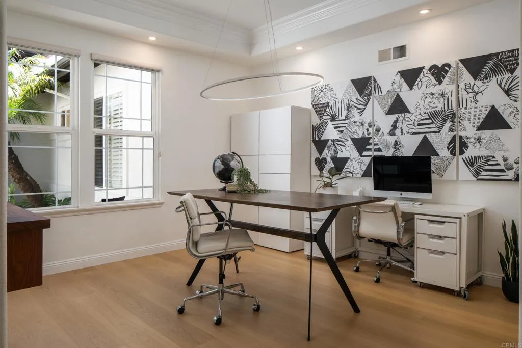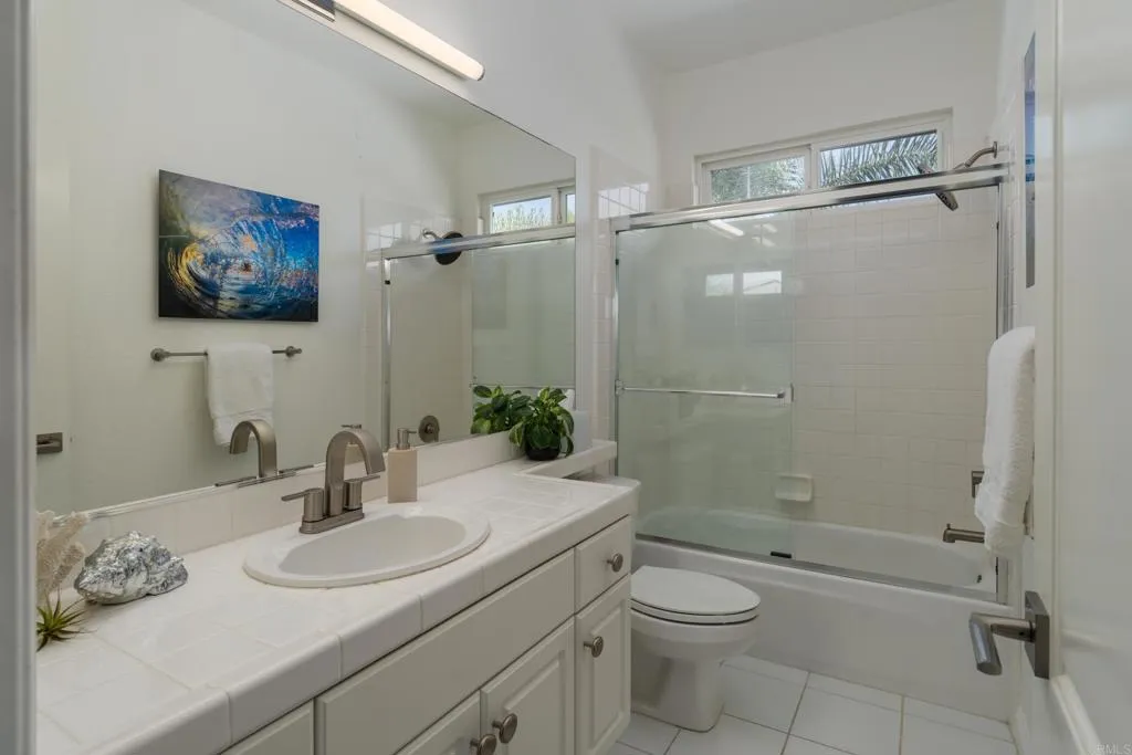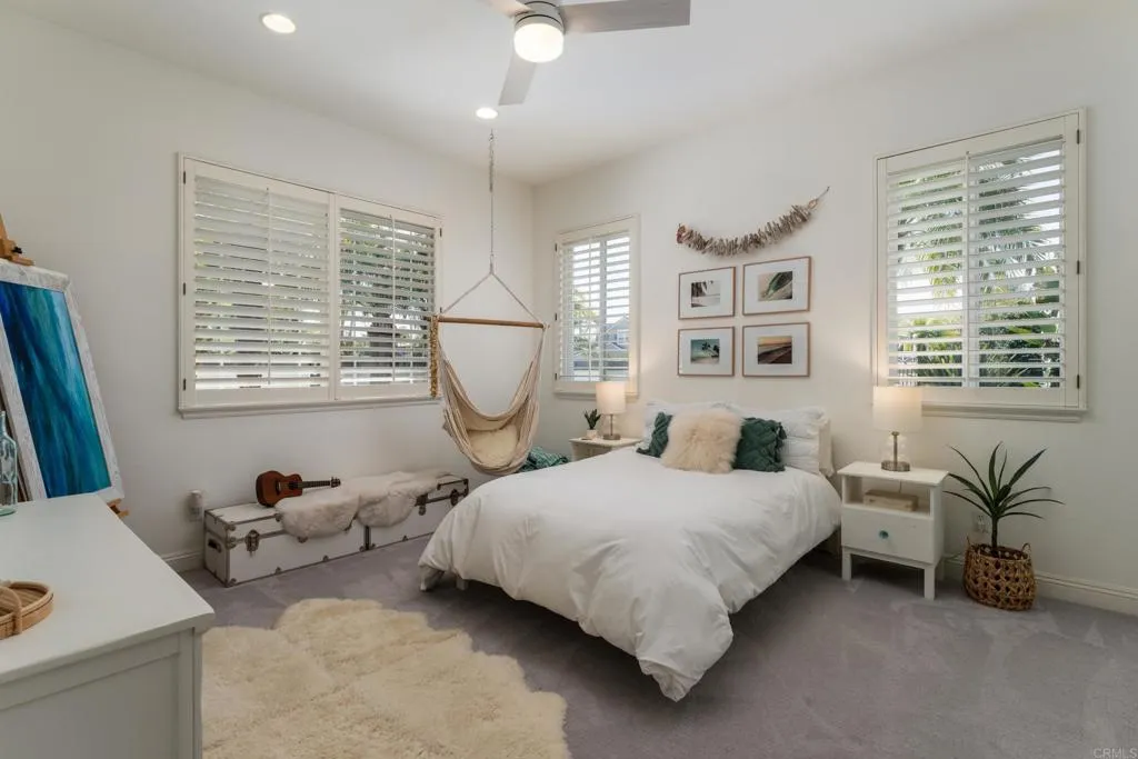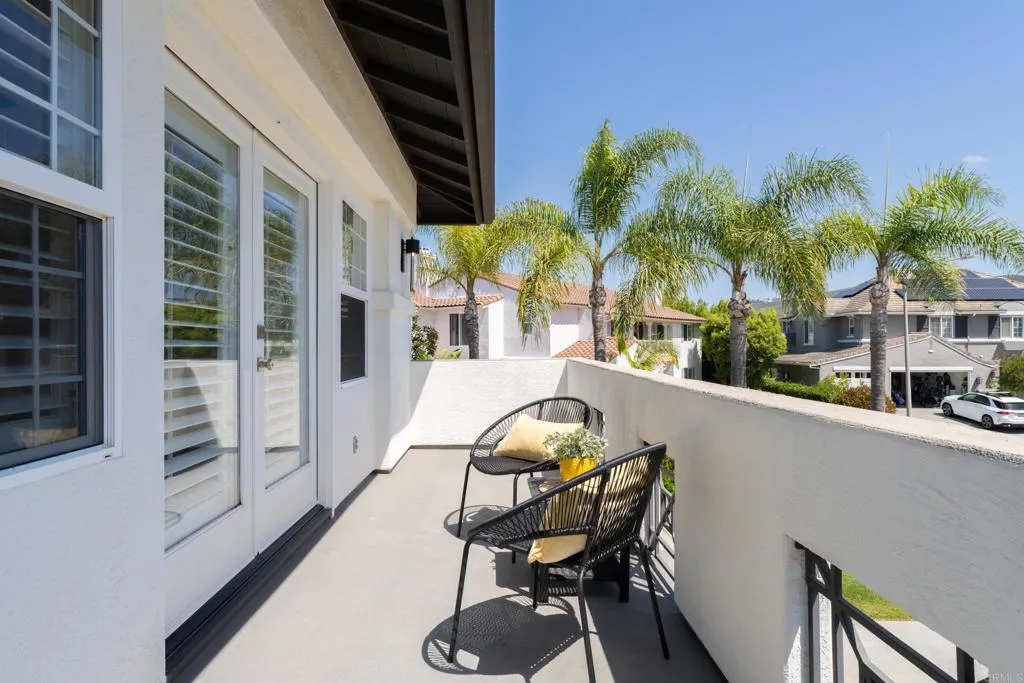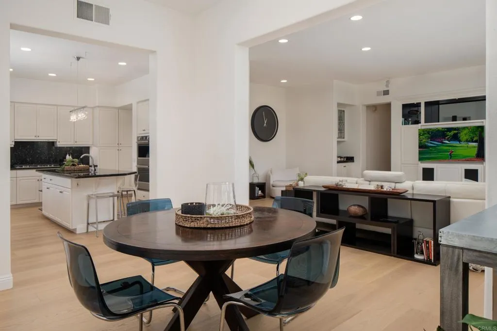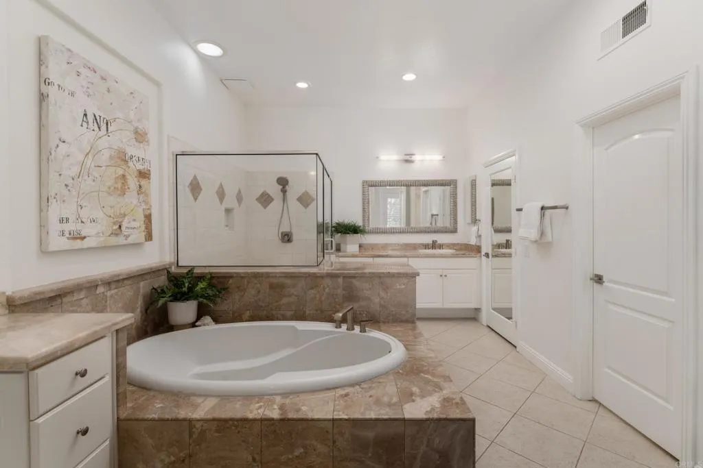 RARELY does a property come to market that TRULY HAS IT ALL: a great neighborhood, large private parcel, gorgeous grounds, west-facing backyard & a flexible floorplan. Located on a quiet cul-de-sac in THE RANCH, an enclave between Olivenhain & La Costa, this exceptional estate offers PRIVACY, scale & COASTAL ELEGANCE. Set on the “developer’s own” PRIME .61 ACRE LOT, it feels like an elevated tropical island with ONLY ONE adjacent neighbor. A private courtyard leads to custom glass entry doors with HANDCRAFTED WALNUT live-edge handles. Inside, nearly 5,000 sq ft of thoughtfully designed space offers STYLE & FLEXIBILITY. The formal living room, currently styled as a spacious dining area, features a WALL OF WINDOWS framing a CASCADING WATERFALL, POOL & PALMS. The formal dining room has been thoughtfully repurposed as a stylish family office. At the HEART OF THE HOME, the inviting family room centers around a STONE FIREPLACE with expansive windows. The ISLAND KITCHEN opens to a breakfast area with French doors to the backyard. A large RECREATION ROOM serves as the ACTIVITY HUB, with space for a pool table, gym, lounge & putting practice. LIVES LIKE A SINGLE STORY with a primary suite & 2 additional bedrooms on the main level. While upstairs there are 2 more bedrooms & a living room with deck, ideal for guests, office, bonus space or MULTIGENERATIONAL LIVING. The primary retreat features French doors to the yard, a SPA-LIKE bath & custom dream closet. The backyard is a private resort PRIVATE RESORT with a dramatic waterfall, freeform pool & spa, outdoor kitchen & lush tropical landscaping and a custom designed outdoor shower. Located in the highly regarded Encinitas School District and just minutes from beaches, shopping, and dining.