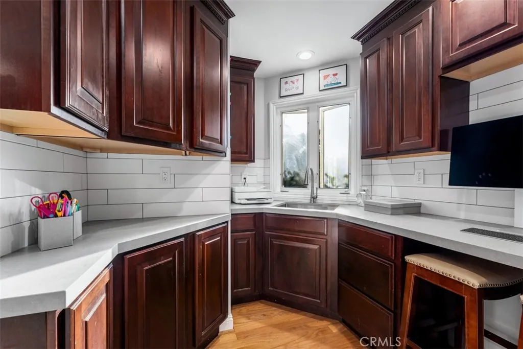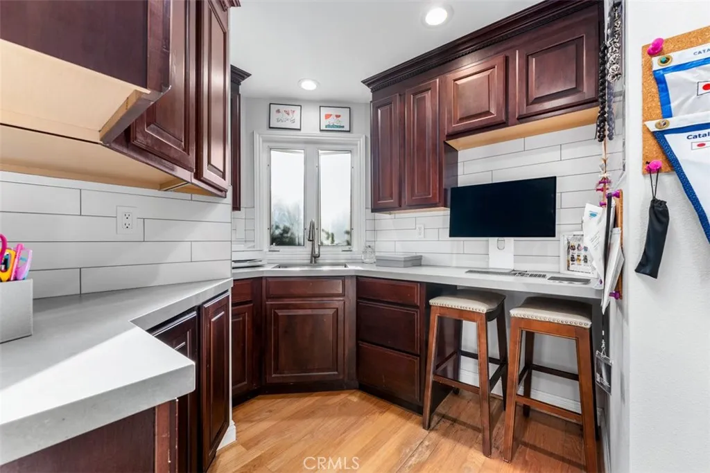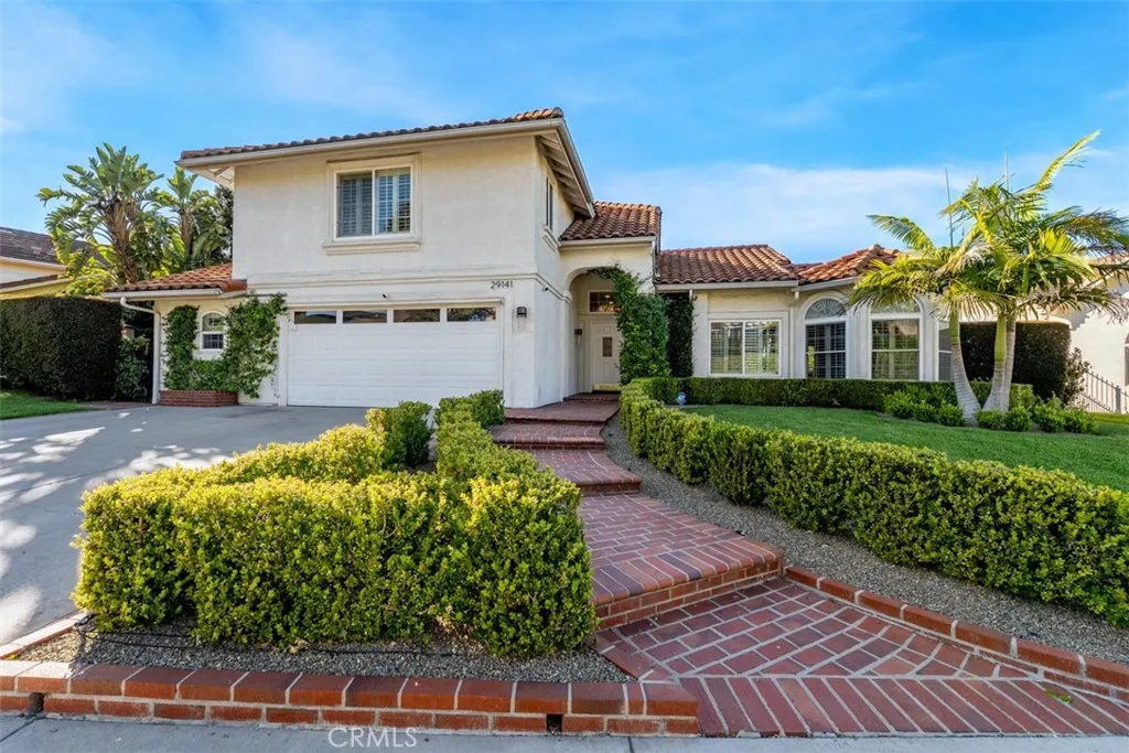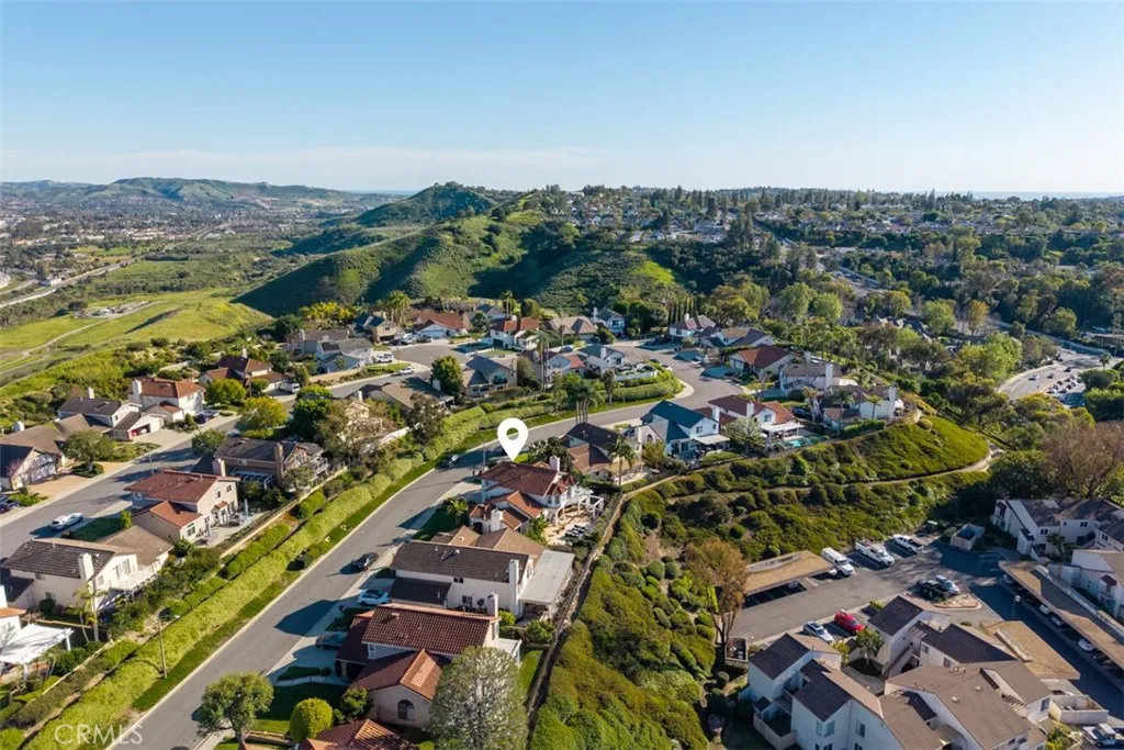 Discover this beautifully upgraded home located on a single-loaded street in the desirable Westridge community of Laguna Niguel. Offering approximately 3000 square feet on a 7,000 sq ft lot, this spacious residence blends thoughtful custom details, modern upgrades, and comfortable indoor-outdoor living. The home features two living rooms, four bathrooms (3 full, 1 half), and generously sized bedrooms, each designed with custom alcoves and double closets for added charm and functionality. Two of the rear bedrooms share a connecting porch, while the primary suite includes his-and-hers closets. The downstairs features durable epoxy flooring, while the upstairs showcases engineered hardwood flooring. The front living room offers custom built-ins with floating shelves, and the home is enhanced with recessed lighting, upgraded fixtures, and modern dimmer and touch switches throughout. Additional features include updated windows and sliders in the front living room, custom shutters upstairs, and a custom barn door accent. The updated kitchen includes Samsung smart appliances with WiFi connectivity, a stove with air-fry capability, upgraded cabinetry, and a pantry with an upgraded door. The home also includes a dedicated office space with custom countertops and sink. Enjoy two fireplaces, one gas and one electric, adding warmth and ambiance to the living areas. Bathrooms have been thoughtfully upgraded, including a remodeled powder room and toilets with bidet features. The outdoor space is designed for both relaxation and recreation with upgraded landscaping and hardscaping, new irrigation, and turf featuring a 4-hole putting green. The backyard also includes a pool area with permits approved and paid through the HOA and city, providing a great opportunity for future installation. Additional highlights include energy-efficient windows, smart thermostats, a security camera system, EV charger with upgraded electrical panel, and a garage with smart lock access. Residents enjoy a private Westridge trailhead, a highly walkable neighborhood, and convenient proximity to shops, restaurants, parks, and easy access to the 5 and 73 freeways. Ocaso Elementary and Crown Valley Academy are nearby, with the Laguna Niguel Community Center just minutes away. Take in beautiful sunset and mountain views from this welcoming home in a friendly neighborhood where community and outdoor living truly shine.