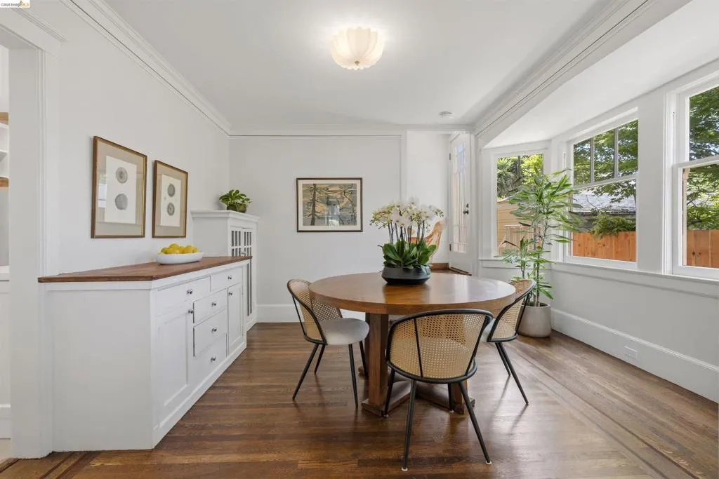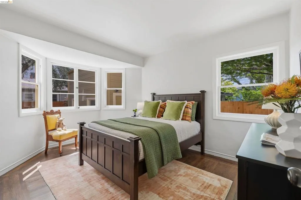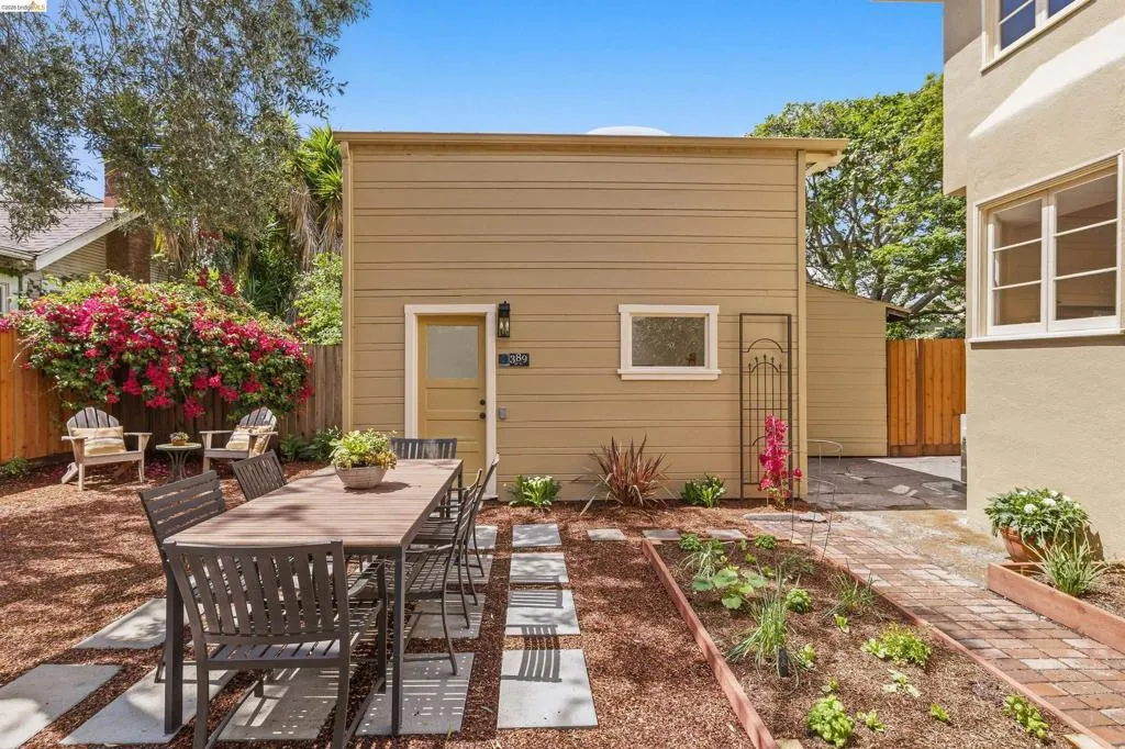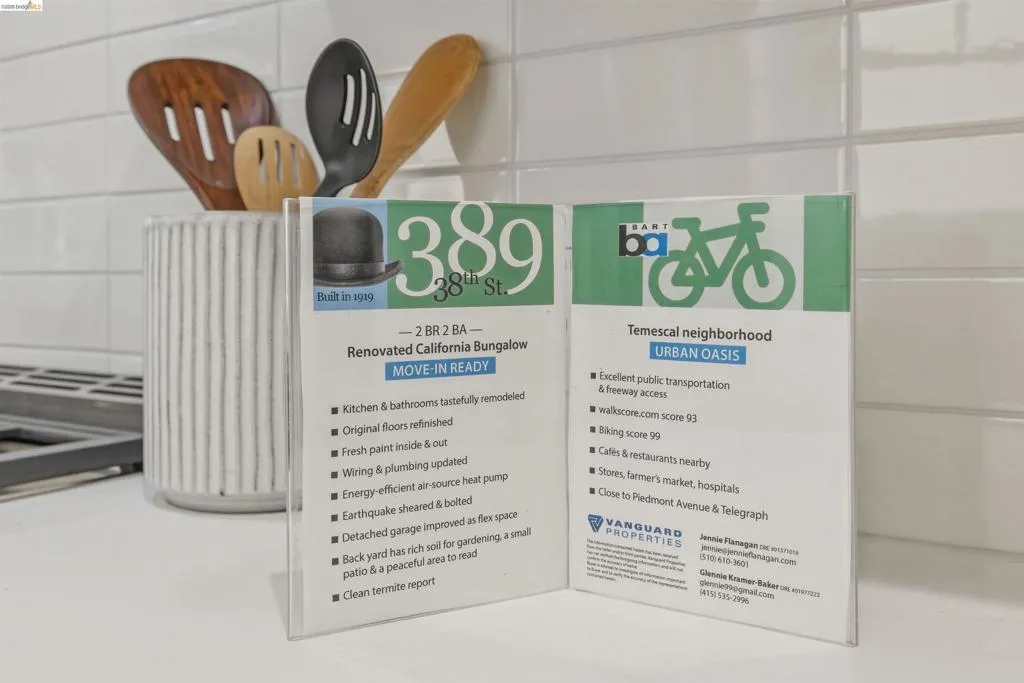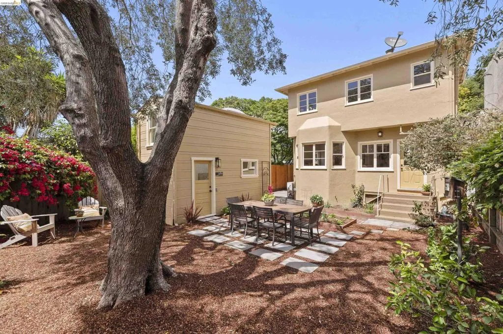 Newly Renovated California Bungalow on a charming tree-lined street in the sought-after Temescal neighborhood. One block from popular restaurants, cafés & shops on 40th St, plus Piedmont Avenue & Telegraph nearby. Walk Score 93, Bike Score 99. Easy access to buses & BART. Truly move-in ready with all new systems- electrical, plumbing & central air/heat pump, earthquake retrofitting, sewer lateral & sidewalk compliant. The original character and hardwood flooring are beautifully preserved. The main level features formal spaces with a classic Bungalow fireplace, built-ins, woodwork and bonus office space. The newly renovated eat-in kitchen features Shaker cabinets, Fireclay Tile, open shelving, stainless steel appliances, quartz countertops, built-in banquette seating and eco-friendly Marmoleum flooring that flows into the spacious laundry area. Additionally downstairs, you’ll find a sunny bedroom & spa-inspired bathroom. Head upstairs to your spacious sun-filled primary suite complete with adjoining bath & walk-in closet. Outside, the detached garage is finished & wired with tall ceilings and a loft space. Make this dual purpose space your art studio, home office or home gym. The backyard oasis has designated areas for gardening, a patio for dining al fresco and private relaxation. Fenced back yard features a mature olive tree, dwarf lemon & lime trees and pineapple guavas. Don’t miss this rare opportunity to make this sweet home yours!