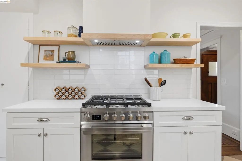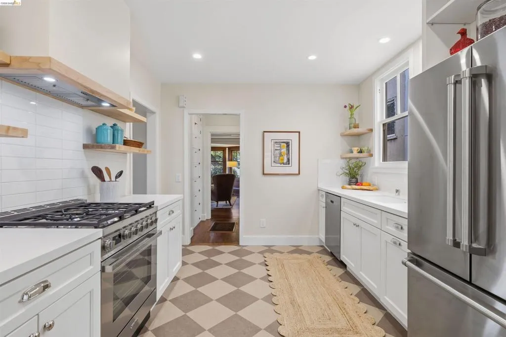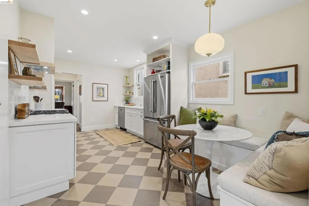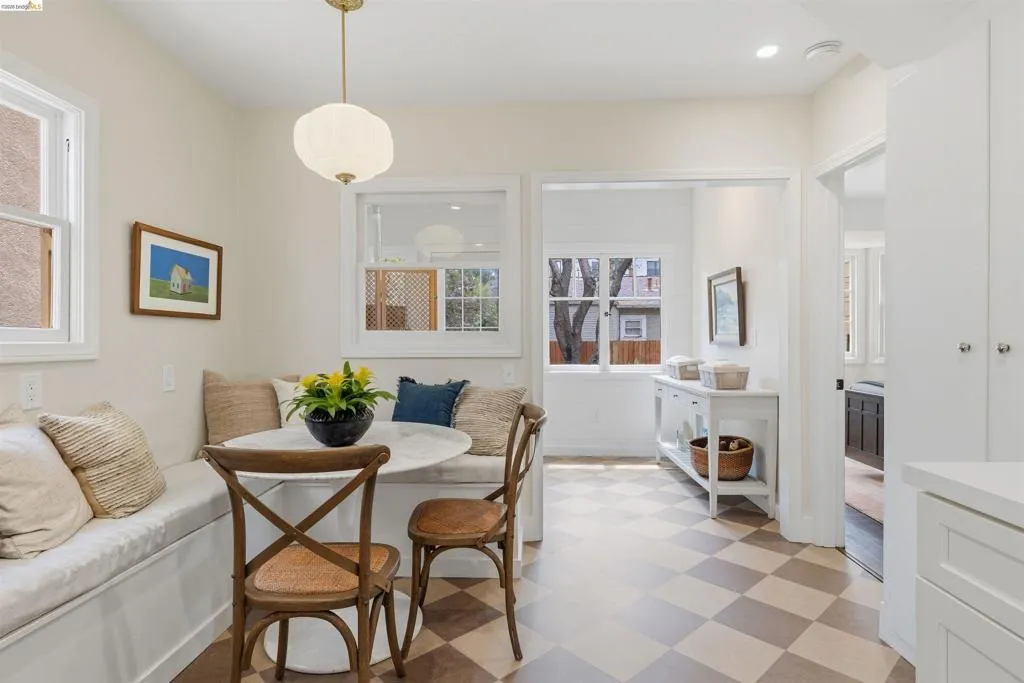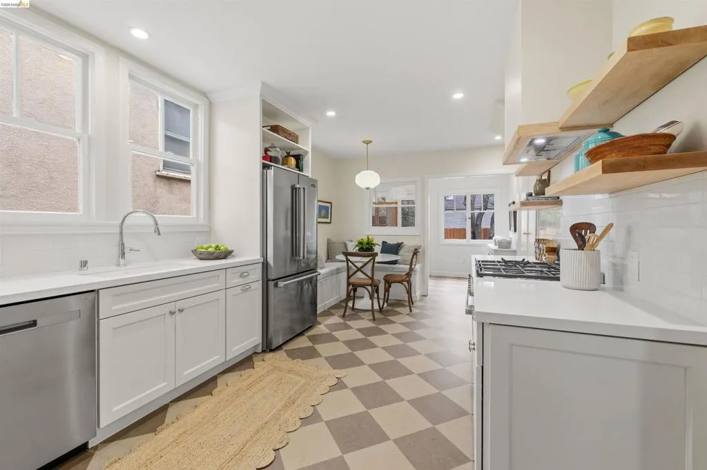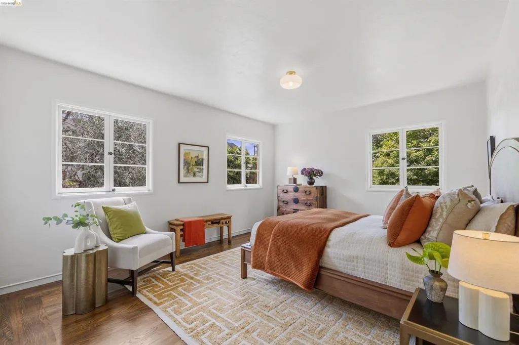 Newly Renovated California Bungalow on a charming tree-lined street in the sought-after Temescal neighborhood. One block from popular restaurants, cafés & shops on 40th St, plus Piedmont Avenue & Telegraph nearby. Walk Score 93, Bike Score 99. Easy access to buses & BART. Truly move-in ready with all new systems- electrical, plumbing & central air/heat pump, earthquake retrofitting, sewer lateral & sidewalk compliant. The original character and hardwood flooring are beautifully preserved. The main level features formal spaces with a classic Bungalow fireplace, built-ins, woodwork and bonus office space. The newly renovated eat-in kitchen features Shaker cabinets, Fireclay Tile, open shelving, stainless steel appliances, quartz countertops, built-in banquette seating and eco-friendly Marmoleum flooring that flows into the spacious laundry area. Additionally downstairs, you’ll find a sunny bedroom & spa-inspired bathroom. Head upstairs to your spacious sun-filled primary suite complete with adjoining bath & walk-in closet. Outside, the detached garage is finished & wired with tall ceilings and a loft space. Make this dual purpose space your art studio, home office or home gym. The backyard oasis has designated areas for gardening, a patio for dining al fresco and private relaxation. Fenced back yard features a mature olive tree, dwarf lemon & lime trees and pineapple guavas. Don’t miss this rare opportunity to make this sweet home yours!