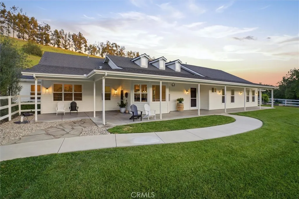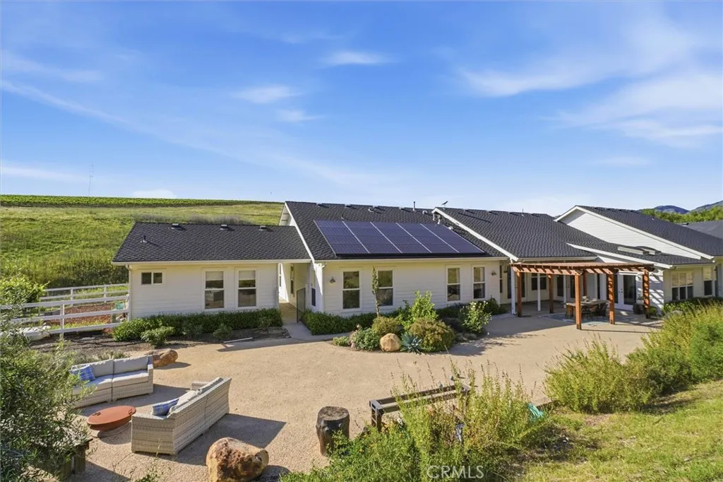 Welcome to a private retreat within the gated community of Edna Ranch, where refined living meets the natural beauty of Edna Valley. Set on a highly usable 1.14 acre parcel surrounded by vineyards, rolling hills, and preserved open space, this single level estate offers an exceptional blend of comfort, functionality, and timeless appeal. Edna Ranch is one of the Central Coast’s most special communities, encompassing over 1,600 acres of protected land with only a limited number of homes thoughtfully positioned to capture the landscape while preserving a true sense of privacy and tranquility. The estate features a 5 bedroom, plus office, 4 bath nearly 3,900 sf single level home with a detached 400 sf 1 bedroom guest suite. The residence features an open floor plan with 10 foot ceilings and an abundance of natural light. The great room anchors the home with a fireplace and built-in cabinetry, flowing seamlessly into the chef’s kitchen with a large island, walk-in pantry, and sunny breakfast nook. A formal dining room and sunroom provide versatility for a variety of lifestyles. The primary suite is a private sanctuary, complete with its own fireplace, dual walk-in closets, and a spa-inspired bath with soaking tub and dual-head shower. Additional bedrooms are generously sized, including one with an en suite bath, while a secondary bathroom offers a large three-sink vanity, soaking tub, and walk-in shower. A hallway storage room and a spacious bonus room above the three car garage add even more flexibility. The detached guest suite includes a kitchenette, bath and laundry, making it perfect for out of town guests. Outdoor living is just as inviting with a large covered front patio, manicured lawn, and multiple areas to relax or entertain while taking in vineyard and mountain views. The backyard is perfect for entertaining with custom pergola, outdoor seating areas, raised garden beds, fenced in orchard space, and an outdoor shower and tub. This is more than a home. It is a rare opportunity to experience the peaceful, vineyard-centric lifestyle that defines Edna Ranch just minutes from world class wineries, downtown San Luis Obispo, the Village of Arroyo Grande, the SLO County Airport, and the coastlines of Pismo and Avila Beach.