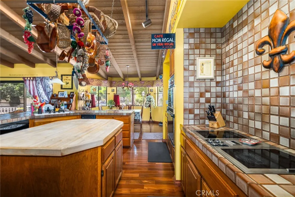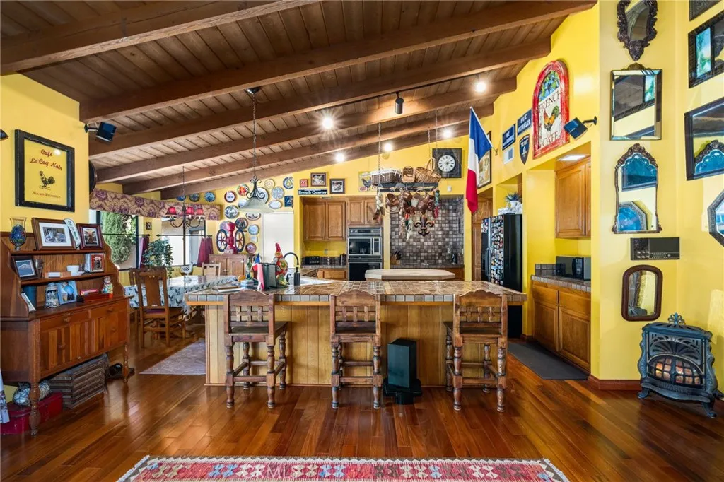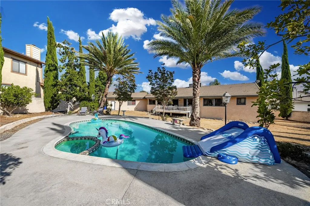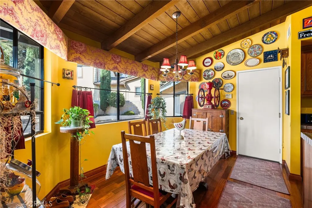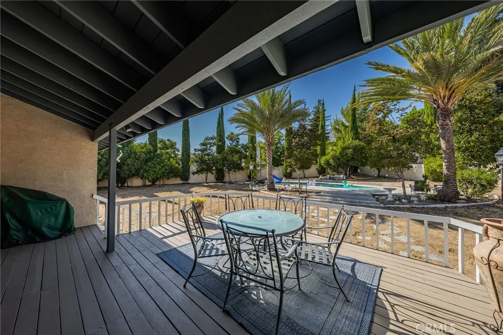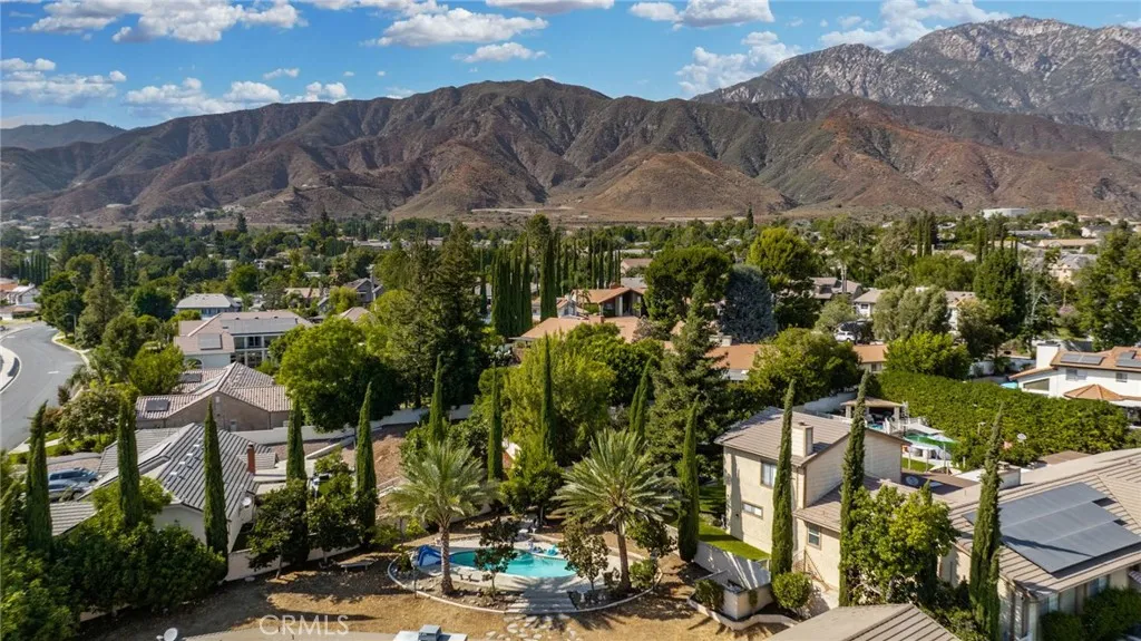 Discover this exclusive San Antonio Heights gem, a single-story home boasting 2,800 square feet of stylish living space on a sprawling 18,774 square-foot lot. The property offers breathtaking panoramic views of the mountains, making it the perfect setting for an ADU addition—ideal for those seeking guest quarters or providing a place for parents to live with privacy while at the same time, being able to participate in family living and staying connected. Step through the double-door entry into a home adorned with exquisite hardwood flooring throughout. The formal living room seamlessly flows into a generously sized formal dining room, featuring coffered ceilings that create a space well suited for entertaining friends and family—perfect with the holidays approaching. The dining room provides direct access to the kitchen, a true chef's delight. This expansive kitchen opens to the family room and includes a breakfast counter bar, a center island, an abundance of cabinetry, and a cozy breakfast nook. The earthy wood beam ceilings and the warmth of the stone fireplace with a raised hearth in the family room make it an inviting space for relaxation. The home features three bedrooms, including a romantic primary en suite. Unwind in the luxurious soaking tub or enjoy the shower. The additional two bedrooms are well-sized, with a secondary bath offering double sinks and a tub-over-shower. The backyard is your private oasis, accessible through sliding glass doors in the family room. A covered view deck provides a perfect vantage point to soak in the stunning mountain views. The expansive backyard also includes a pool and spa, with ample land available for building an ADU or realizing your own dreamy outdoor space. An abundance of fruit trees will amaze you. Additional amenities include a three-car attached garage, surround sound in the family, living, and outdoor spaces, plantation shutters, and so much more. This home combines simplicity with sophistication, offering a warm and inviting atmosphere with a unique artistic flair. You will absolutely love coming home to this beautiful property! Make it yours today!