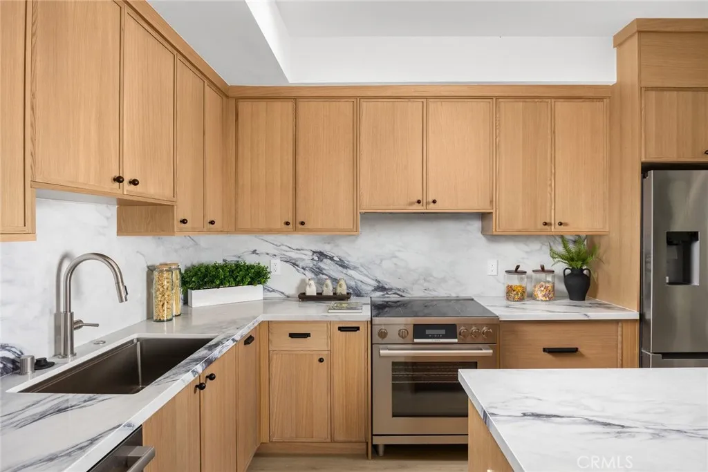 Stunning brand-new 8-unit luxury complex with modern design in the highly desirable Arcadia, located within the award-winning Arcadia Unified School District and developed by Rodeo Development. Conveniently situated near Westfield Santa Anita, Santa Anita Park, the Los Angeles County Arboretum and Botanic Garden, Santa Anita Golf Course, and USC Arcadia Hospital, with easy access to Interstate 210. This property features a 4-unit duplex-style building, with each residence shares only one wall and has three sides exposed to natural light, providing excellent brightness and cross-ventilation. Each unit offers approximately 1,660 sq. ft. of living space with 3 bedrooms and 3 bathrooms. The open and functional floor plan showcases European-style windows, luxury vinyl plank floors, and designer finishes throughout. The second level features a spacious great room, dining area, and a gourmet kitchen equipped with quartz countertops, Bosch appliances, and custom cabinetry, seamlessly connected for both everyday living and entertaining. One en-suite bedroom is also conveniently located on this level. The third level is dedicated to the primary suite, complete with a designer bathroom, along with an additional well-appointed en-suite bedroom.This all-electric home features a heat pump A/C system, electric water heater, stove, washer, and dryer (no gas service). Each unit includes a fully paid 6-panel solar system, a private outdoor space, and a dedicated laundry area. The attached 2-car garage is equipped with a Level 2 EV charger for each unit. Located near Hugo Reid Elementary School and Foothill Middle School, this property is just minutes from shopping, dining, parks, and popular markets including H Mart and 99 Ranch Market.