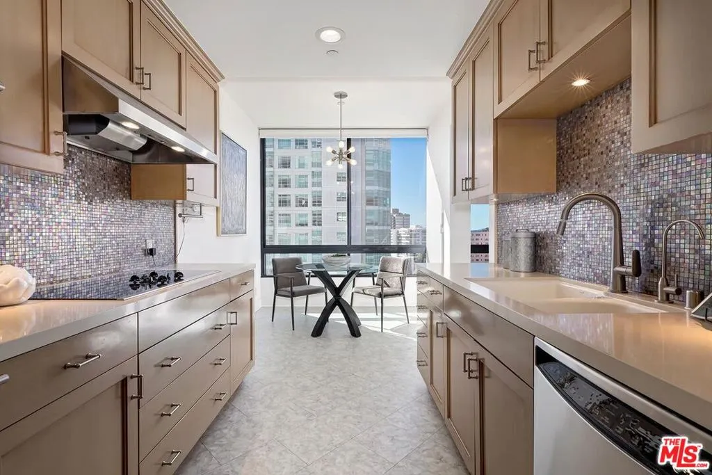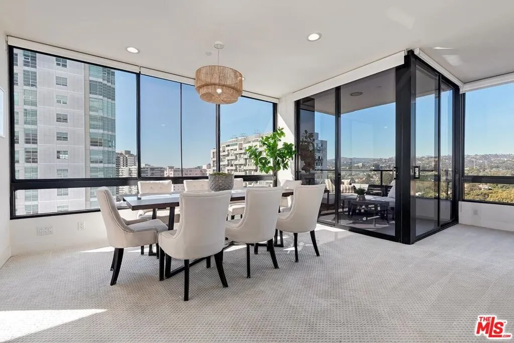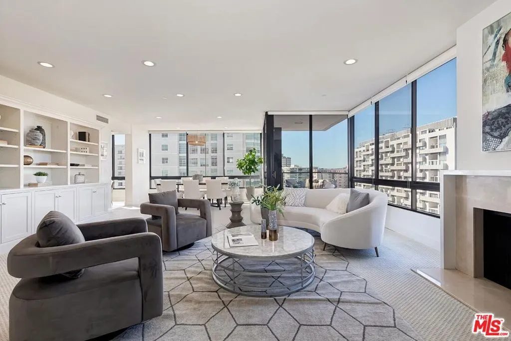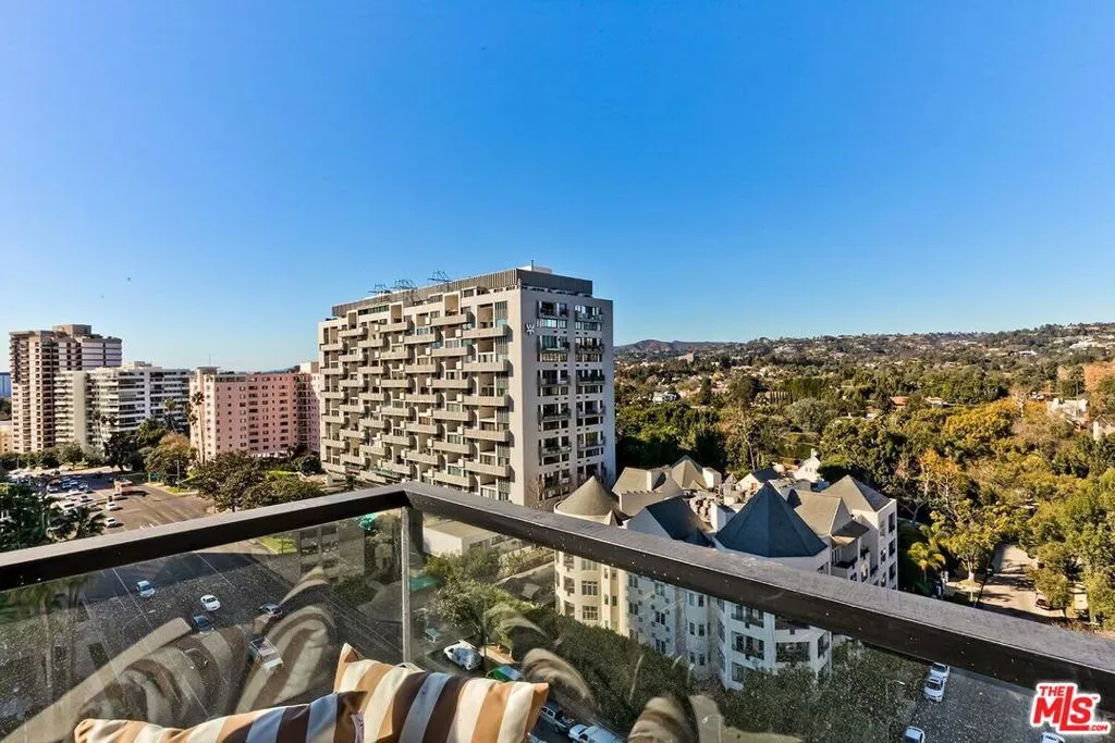 Perched high above Los Angeles, with sweeping panoramic vistas, this exceptional corner residence offers a rare sense of calm above the city. Located in The Diplomat along the coveted Wilshire Corridor, the home strikes a refined balance between privacy, scale, and uninterrupted outlooks. Expansive walls of glass frame a striking backdrop of skyline and mountains, evolving from soft morning light to dramatic evening glow. The interiors unfold with effortless flow, designed for both elevated entertaining and everyday ease. A warm, fireplace-centered living area anchors the home, offering an inviting yet sophisticated focal point. A generous covered terrace extends the experience outdoors perfect for sunrise coffee, sunset gatherings, or quiet moments above it all. The primary suite is thoughtfully positioned as a private retreat, while the secondary bedroom offers flexibility as a guest suite, office, or intimate lounge. Life at The Diplomat is defined by full-service comfort, with amenities including a resort-style pool and spa, saunas, fitness center, and curated common areas. With 24-hour valet and concierge services, and HOA coverage that includes earthquake insurance, water, cable, and internet, the residence delivers a seamless, lock-and-leave lifestyle.