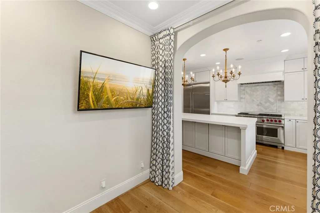 So spectacular it feels straight out of Architectural Digest, this absolutely breathtaking, fully reimagined 3-story townhome in the exclusive gated Waterfront Community is quite simply one of the most exquisitely upgraded residences to ever hit the market. No expense was spared in its complete transformation, showcasing the finest materials, appliances, fixtures, and craftsmanship throughout. Located steps to the sand, behind the Hilton & Hyatt Resorts, this home offers a true resort lifestyle in one of Huntington Beach’s most coveted coastal enclaves. This stunning residence features 2 ensuite bedrooms (one on ground level), a versatile flex room perfect for office, guest retreat, or bunk room, 2.5 beautifully appointed baths, an inside laundry room w/added cabinetry for optimal functionality, and an oversized 2-car epoxy-finished garage w/built-in storage. Enjoy seamless indoor-outdoor living with a ground-level interlocking paver patio and an upper-level balcony, both enhanced w/retractable screens to capture the ocean breezes. The lower level offers a private bedroom w/French doors to patio, porcelain wood-grain tile in a sophisticated chevron pattern, while the rest of the home boasts wide-plank wire-brushed French oak flooring, handcrafted staircase railings, Milgard windows, solid wood interior doors, plantation shutters, LED recessed lighting, crown molding, and designer Restoration Hardware fixtures that elevate every space. The second level is an entertainer’s dream, featuring a show-stopping chef’s kitchen with quartz countertops, an expanded center island w/seating, built-in desk, custom Omega soft-close cabinetry & Emtek hardware. Top-tier appliances include a Sub-Zero refrigerator and a 48-inch double-oven Wolf range. Adjacent to the kitchen is a sophisticated living room with fireplace, surround sound, and a custom-built quartz wine bar w/marble mosaic backsplash & glass display cabinetry. An intimate dining area w/exquisite chandelier completes this level, along with the versatile flex space/home office. The entire third level is dedicated to a luxurious penthouse-style primary suite that feels like a private five-star resort. This serene escape features a retreat, enormous walk-in closet, and spa-inspired bathroom w/dual vanities, Carrara marble shower, quartz countertops, and freestanding soaking tub. Experience the ultimate year-round vacation lifestyle in this exceptional coastal residence. This is truly paradise living at its finest.