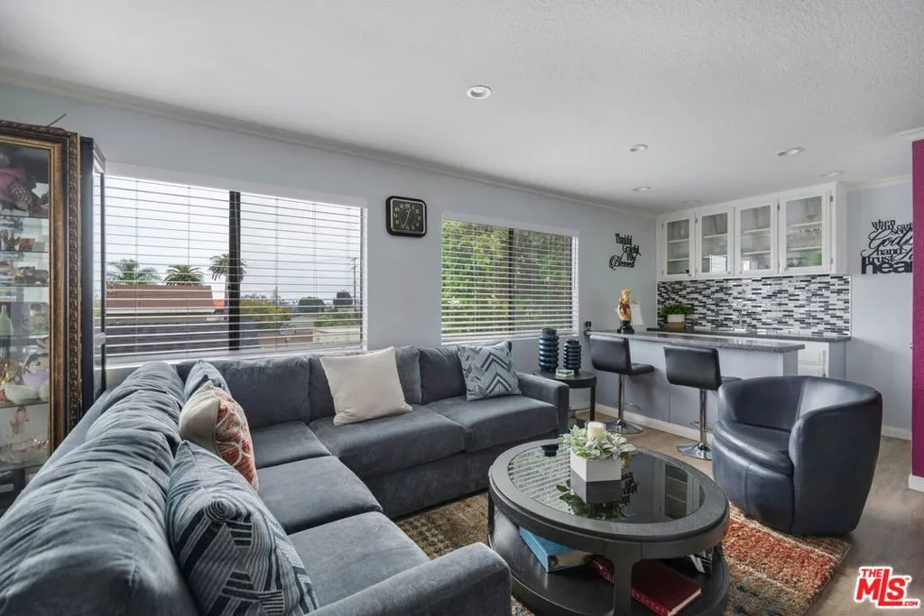 Refined, upgraded, and exceptionally cared for, this expansive multi-level home at 845 W 19th St presents 3 bedrooms, 2 bathrooms, generous living spaces, and stunning views of the neighborhood, harbor, and city lights. Designed with an emphasis on livability and modern appeal, the residence features an open-concept layout filled with natural light, a private balcony, and thoughtfully selected finishes throughout. The main level is perfectly suited for both daily living and entertaining, featuring a large living room anchored by a striking fireplace, an elegant dining area, and a fully renovated kitchen. The kitchen is appointed with contemporary countertops, custom cabinetry, stainless steel appliances, a stylish backsplash, and an oversized breakfast bar ideal for casual meals or hosting. Recessed lighting, updated flooring, and a seamless connection between the kitchen, dining, and living areas create a cohesive and inviting atmosphere. Upstairs, the primary suite offers a private retreat, complete with its own balcony, expansive views, a sitting area with fireplace and built-ins, a spacious walk-in closet, and a tastefully remodeled en-suite bath. Two additional bedrooms provide flexibility for guests, family, or workspace needs. Secondary bathrooms have been updated with care, while a dedicated laundry space and ample pantry storage enhance everyday functionality. From its Spanish-style exterior to its bright, view-oriented interior spaces, this home delivers a compelling combination of charm and practicality. Multiple areas for entertaining, seamless indoor-outdoor flow, and picturesque harbor and skyline views make this property a standout offering in a sought-after setting.