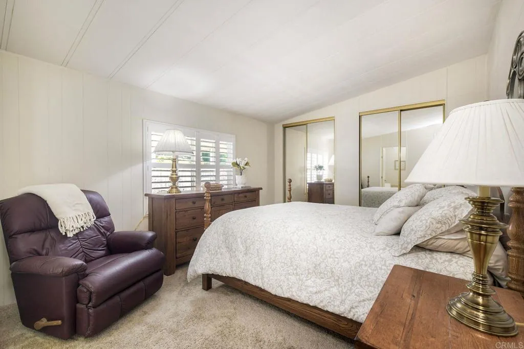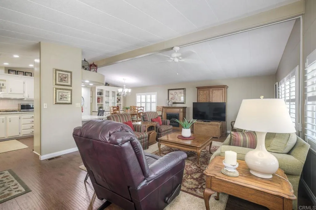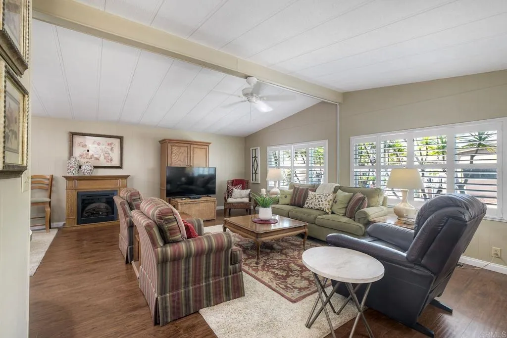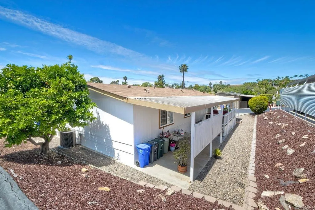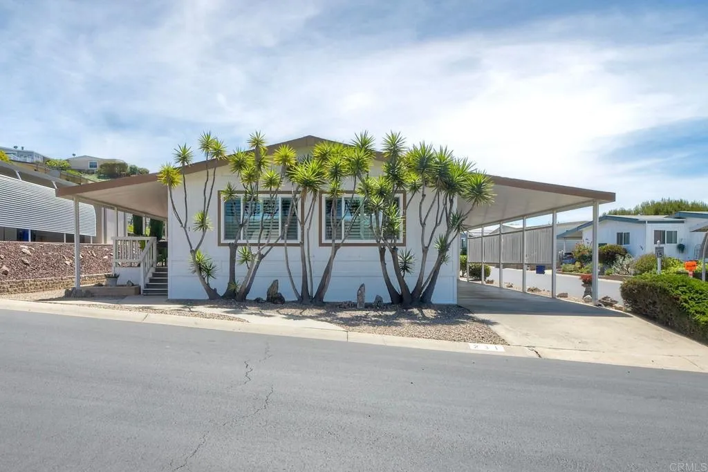 Welcome Home!!! Palomar Estates West, spc. 231. Beautiful 5-star Resort Living, Rent Controlled 55+ Community. This wonderful home is bright, great quality laminate flooring through-out, except carpet in both bedrooms. Double pane windows, shutters, central air/heating, gas stove & oven, gas washer/ dryer. All appliances convey. Enjoy the wonderful ocean breeze on the over-sized covered porch/patio. Spacious shed w/electricity & built-in shelving. Low maintenance yard w/orange tree. Community amenities include -heated pool year-round, spa, sauna, billiard rm, card rm, library, clubhouse, shuffleboard, bocce ball, table tennis, darts, gym, pickleball, tennis, putting green, dog park, carwash & laundry mat. Land Lease - $739.95 Mo. Verify S/F COE. Park Approval Required.