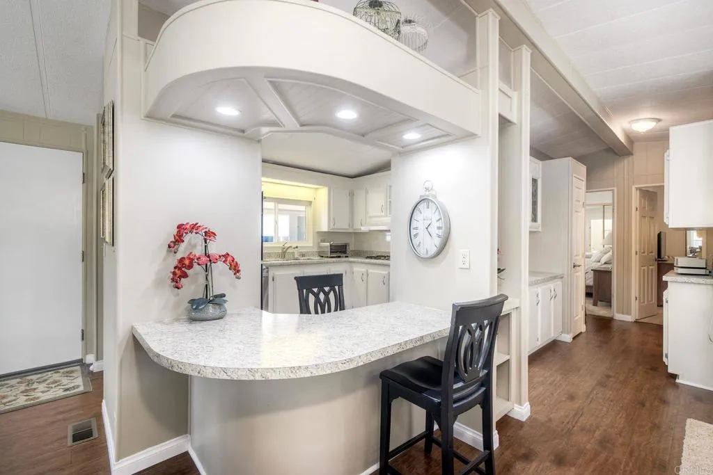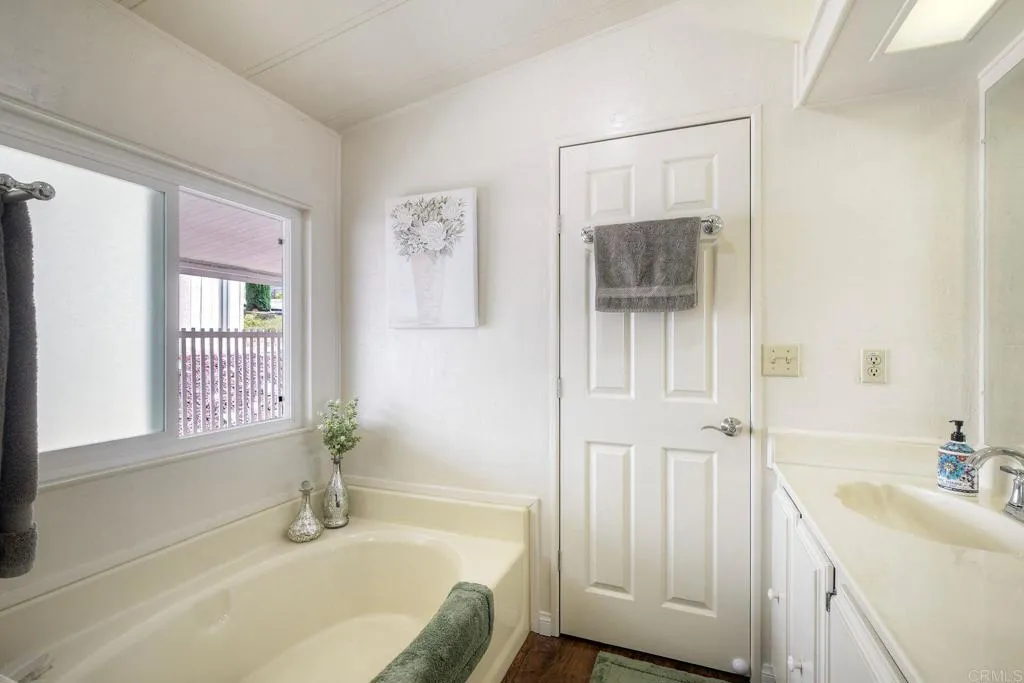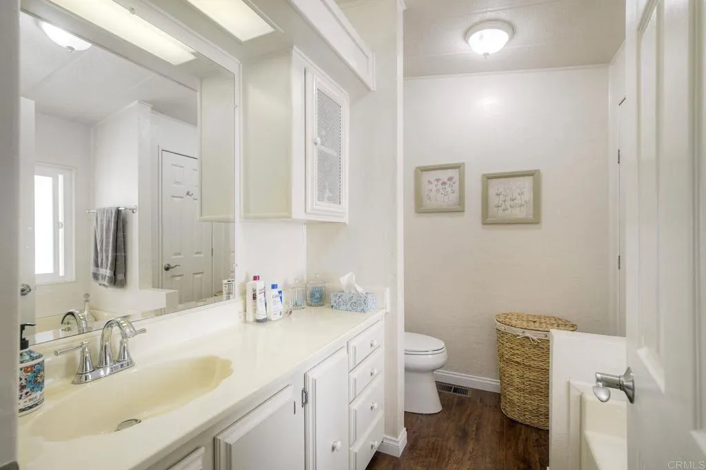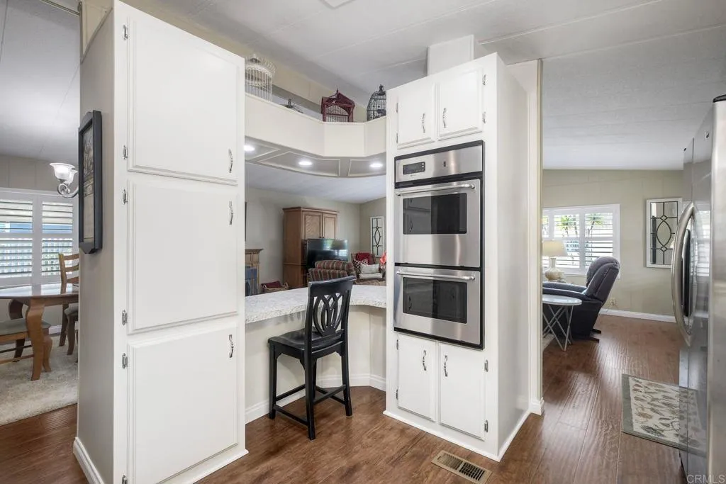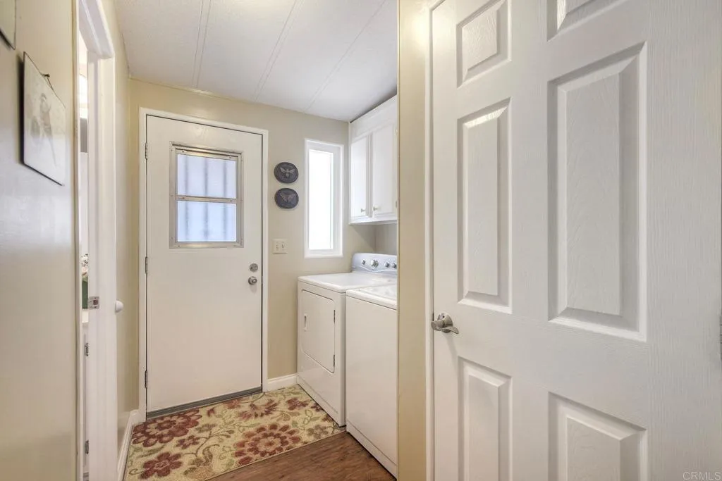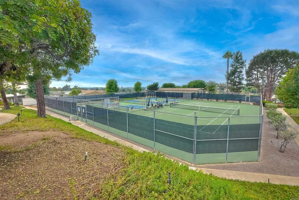 Welcome Home!!! Palomar Estates West, spc. 231. Beautiful 5-star Resort Living, Rent Controlled 55+ Community. This wonderful home is bright, great quality laminate flooring through-out, except carpet in both bedrooms. Double pane windows, shutters, central air/heating, gas stove & oven, gas washer/ dryer. All appliances convey. Enjoy the wonderful ocean breeze on the over-sized covered porch/patio. Spacious shed w/electricity & built-in shelving. Low maintenance yard w/orange tree. Community amenities include -heated pool year-round, spa, sauna, billiard rm, card rm, library, clubhouse, shuffleboard, bocce ball, table tennis, darts, gym, pickleball, tennis, putting green, dog park, carwash & laundry mat. Land Lease - $739.95 Mo. Verify S/F COE. Park Approval Required.