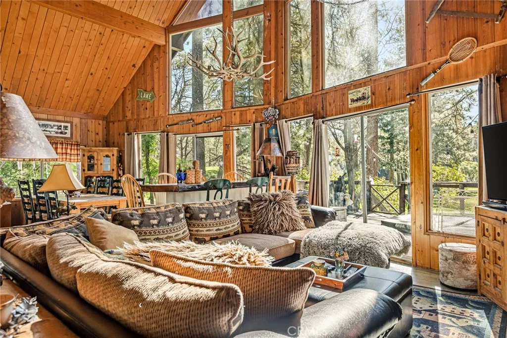 Set along the golf course with beautiful lake views, this 4-bedroom, 3-bath mountain home offers a rare chance to own a truly special retreat. Held and loved by the same family for over 25 years, this is a home filled with heart, history, and unforgettable moments. Enter the great room and you are immediately drawn to the breathtaking view, where walls of glass and prow-style architecture bring the outdoors in and make the scenery the true centerpiece of the home. Dramatic wood floors add warmth and character, while the privately located 4th bedroom, connected by a breezeway, offers flexibility and privacy for guests, extended family, or a home office. Evenings here are something special, whether soaking in the spa on the deck under a sky full of stars or simply taking in the peaceful setting. Complete with golf course frontage, a 2-car garage, golf cart garage, and additional parking, this is a rare opportunity in a location that is hard to match.