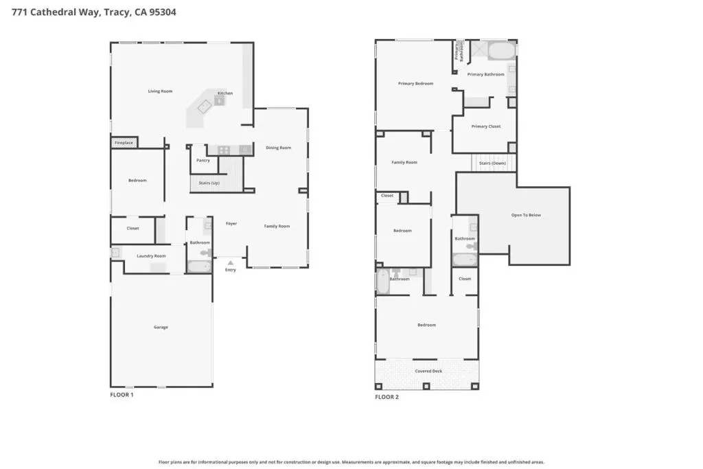 Stunning North- East Facing Former Model Home with Dual Primary Suites! Welcome to this beautiful spacious 5-bedroom, 2.5-bath former model home offering over 3,100 sq ft of comfortable living in one of Tracy's desirable neighborhoods! Perfectly positioned with park views and no direct rear neighbors, this home combines privacy, space, and functionality. Step inside to a bright and open floor plan featuring separate living, dining, and family rooms ideal for both everyday living and entertaining. The heart of the home is the expansive kitchen with granite countertops, ample cabinetry, and plenty of space for gatherings. Upstairs, you'll find a rare and highly sought-after feature: two primary suites, perfect for multi-generational living or added flexibility. One suite includes a private balcony overlooking the park, creating the perfect spot to relax and unwind. Cozy family room with fireplace, Indoor laundry room with sink and storage, Central heating & A/C + ceiling fans and 2-car attached garage, Spacious backyard with open views Located near parks, schools, and commuter routes, this home offers the perfect blend of comfort, convenience, and lifestyle.