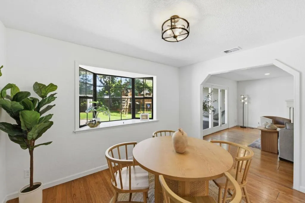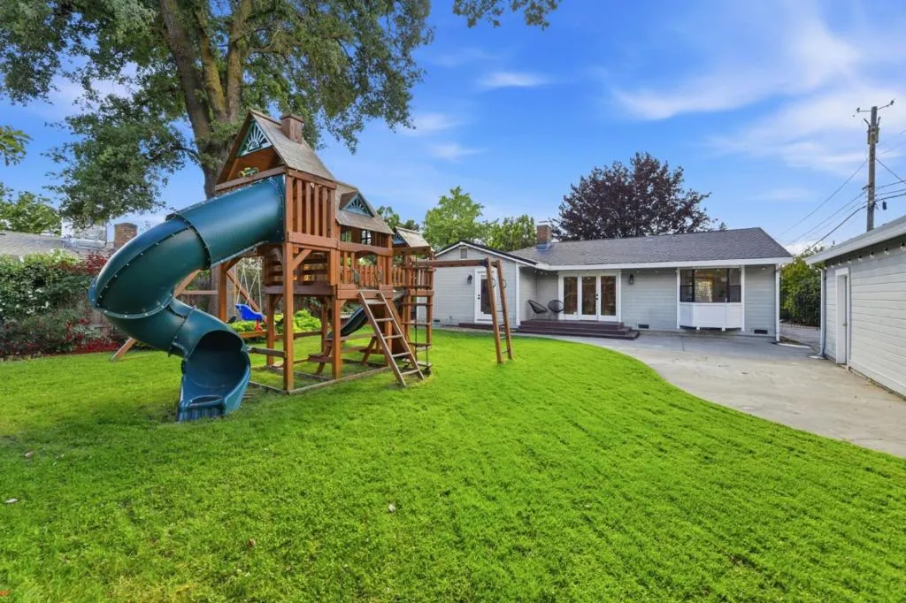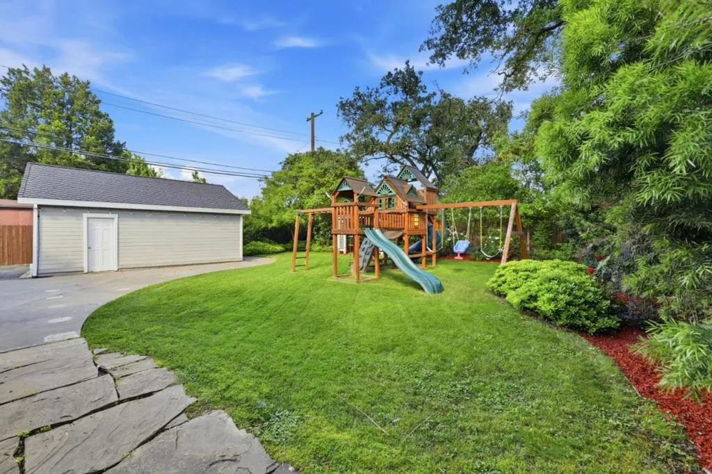 Welcome Home! This inviting 3-bedroom, 2-bathroom home located in the sought after Arden Oaks neighborhood has beautiful curb appeal and an inviting front porch. The property offers a comfortable and functional layout for any lifestyle. The kitchen is a highlight, featuring elegant stone countertops that provide both style and durability for your culinary pursuits where you'll find convenient laundry facilities, ensuring ease and efficiency in your daily routines. Enjoy gatherings in the formal dining room, perfect for hosting meals with family and friends. The living space is cozy with a gas fireplace, adding warmth and charm to the ambiance with French door leading out to the well-manicured rear yard perfect for entertaining. With a large grass area and play structure, the yard is perfect for a growing family. The home boasts central forced air heating and central AC, offering comfort throughout all seasons. The property includes a two-car garage, providing ample parking and storage. Located within the San Juan Unified School District, this home is ideally situated for families seeking educational opportunities in the area. A delightful residence in Sacramento awaits your visit!