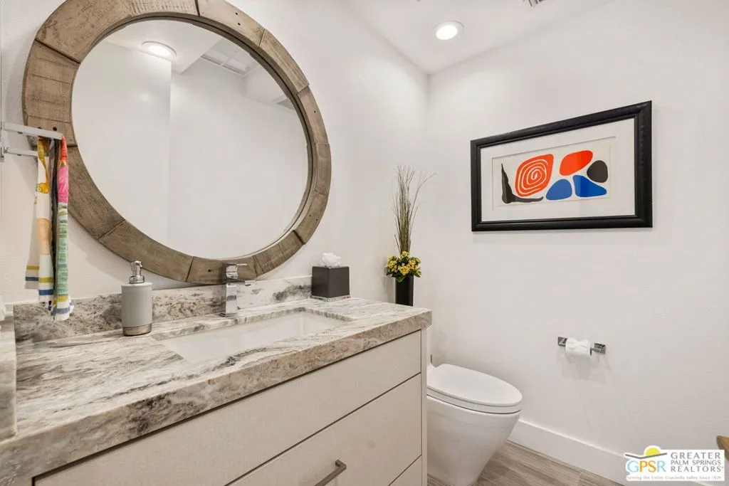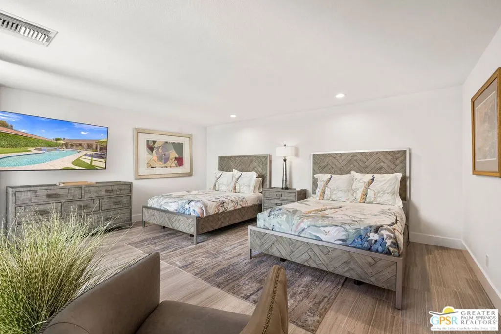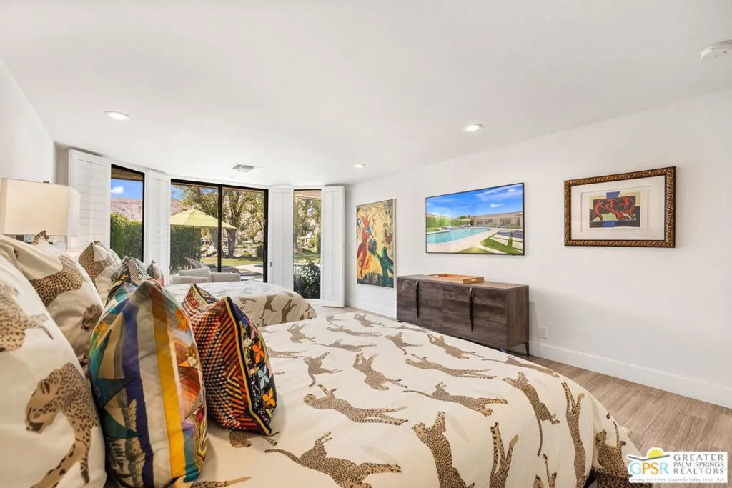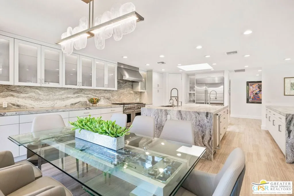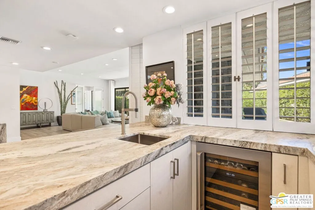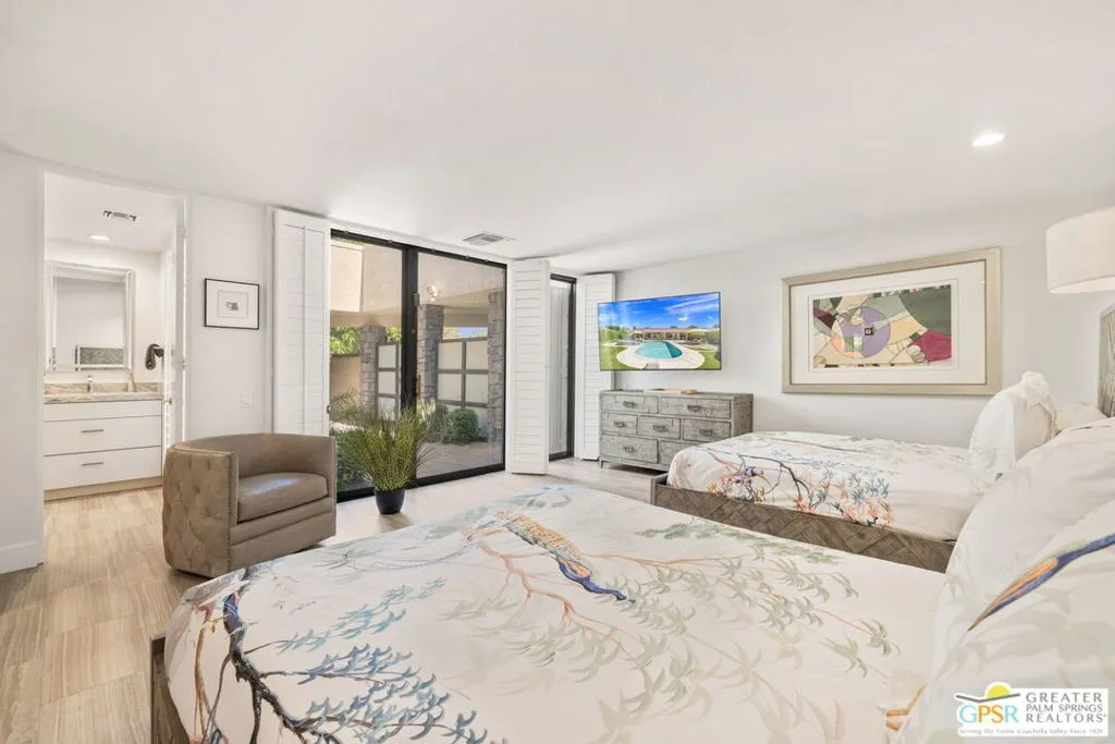 Perfectly positioned on a premier south-facing lot at The Club at Morningside, this extensively renovated Oakmont III residence captures sweeping views of the lake, fountains, waterfalls, and surrounding mountains creating a true resort-style setting in the heart of Rancho Mirage. A private courtyard with custom gates and dual entry doors sets up a refined tone, leading to a formal entry and light-filled open floor plan designed for both everyday living and elevated entertaining. Walls of glass frame the views and create seamless indoor/outdoor flow to the spectacular backyard anchored by a saline pool and spa. At the center of the home, the gourmet kitchen delivers both form and function with premium cabinetry, stone countertops, and a top-tier appliance suite including Wolf range, Sub-Zero refrigeration, and Viking ice maker - opening to dining and living areas that connect effortlessly to the outdoors. A wet bar with wine and beverage refrigeration enhances the home's entertaining appeal. The south-facing living room with fireplace opens to the backyard, complemented by a private office with inspiring views. The Primary Suite is a true retreat with outdoor access, stunning views, and the rare luxury of DUAL private ensuite baths. Junior Ensuites Two and Three are thoughtfully separated, each with private baths and outdoor access. Completely renovated in 2021, the home showcases new porcelain tile flooring, updated cabinetry and countertops throughout, redesigned baths with new tile showers, upgraded lighting, new air ducts, and modernized systems. Outdoor improvements include a saltwater pool conversion with new tile and PebbleTec, added spa with Pentair system, expanded hardscape, synthetic turf, and cool deck surfaces. Additional upgrades include owned solar (2022), a new roof (2025), and new HVAC systems (2025)delivering both efficiency and peace of mind. A two-car garage plus golf cart garage with epoxy flooring and upgraded systems completes the offering. A rare combination of premier lot, south-facing orientation, extensive renovation, and timeless design - this is elevated desert living at its finest.