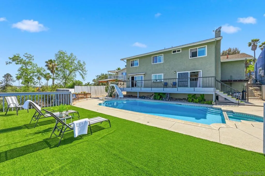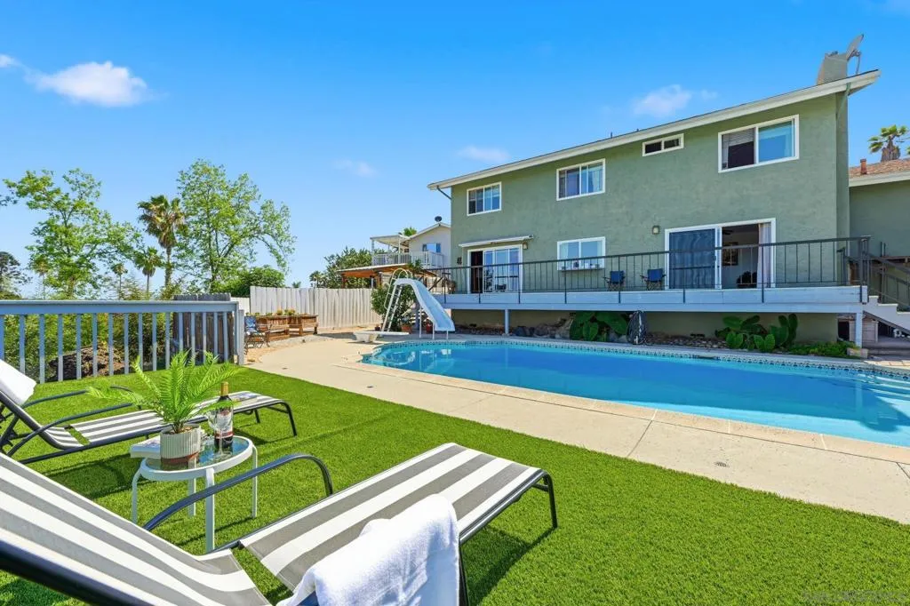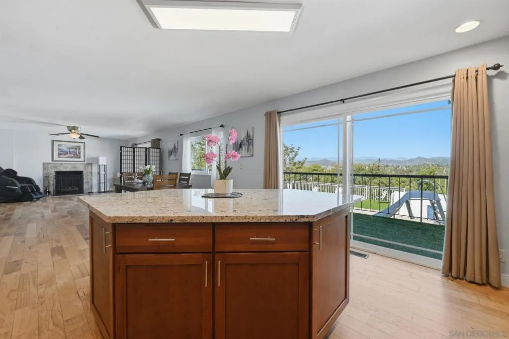 Discover a truly stunning, beautifully remodeled home nestled in the heart of Escondido where comfort, style, and breathtaking views come together in perfect harmony! This inviting home features 4 bedrooms and 2 full baths, designed for both everyday living and effortless entertaining. The fully remodeled primary suite is conveniently located on the first level, offering a serene private retreat complete with an elegant ensuite bath and a generous walk-in closet. Step inside and feel the excitement of fresh, modern upgrades throughout! Brand-new laminate flooring elevates every bedroom, while rich hardwood floors flow seamlessly from the living room into the kitchen and dining area. The open-concept layout creates an airy, welcoming space that feels both expansive and cozy perfect for gathering, relaxing, and making memories. At the heart of the home, the kitchen truly shines! A gorgeous granite island takes center stage, complemented by a sleek new backsplash, stainless steel appliances, and fresh paint, an entertainer’s dream and the perfect place to enjoy everything from casual breakfasts to festive dinners. Step outside to your own private oasis! The sparkling pool invites you to soak up the sunshine, host unforgettable get-togethers, or simply unwind while taking in sweeping city views framed by distant mountain silhouettes. As evening falls, the balcony becomes your personal sanctuary ideal for sipping a glass of wine or tea while enjoying the tranquil glow of city lights. Centrally located and close to I-15. Come and see this gorgeous homes and make it yours! Plus, with fully paid-off solar, you can stay cool all summer long while keeping energy costs low. No HOA and low-maintenance rock landscaping add even more convenience to this exceptional property. This home truly has it all—style, comfort, efficiency, and unforgettable views. Experience it for yourself and imagine the incredible lifestyle waiting for you here!