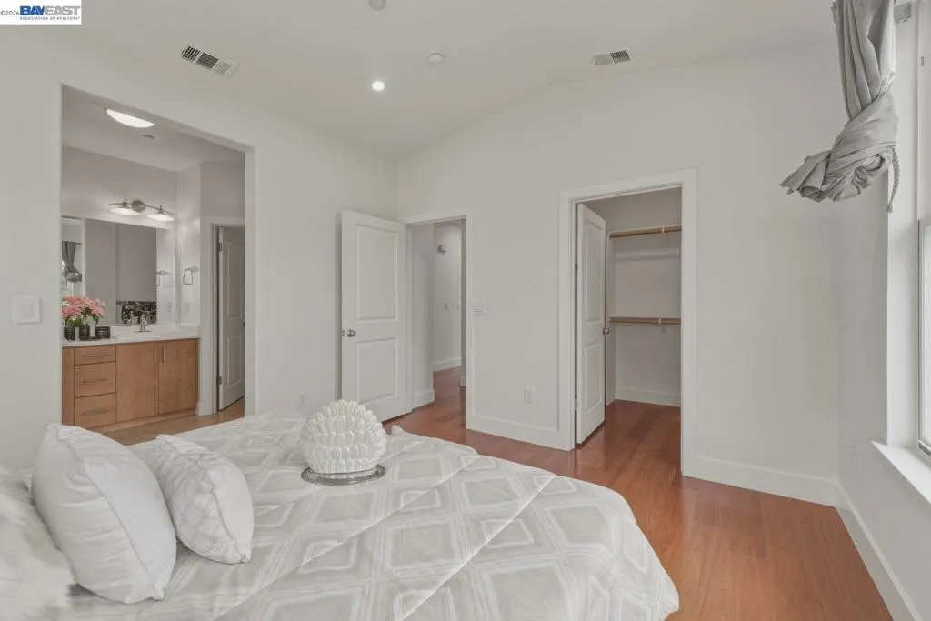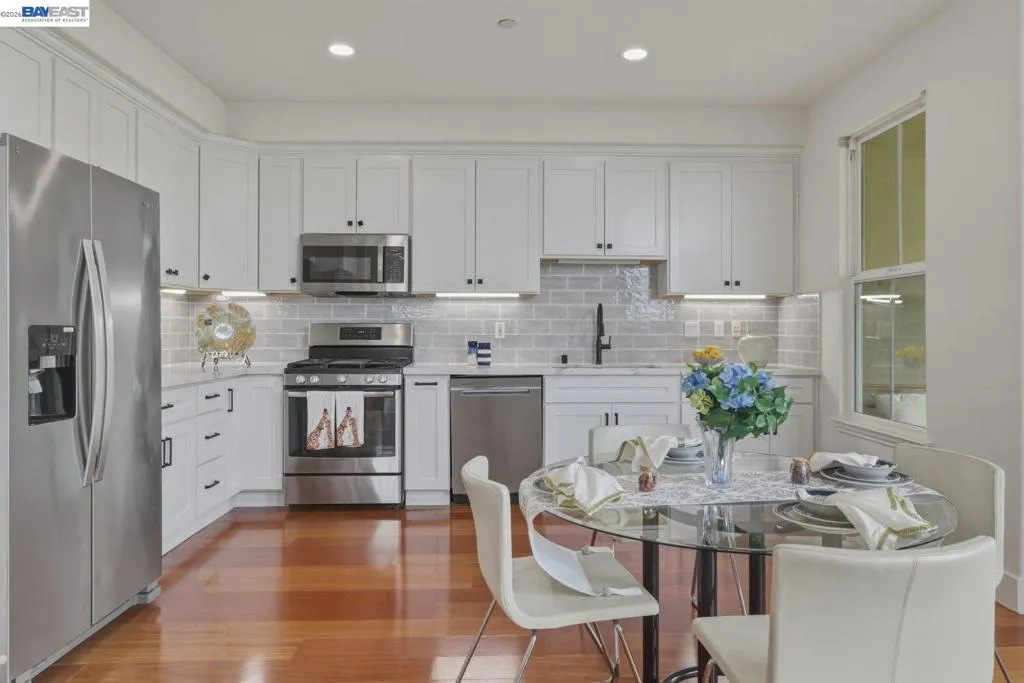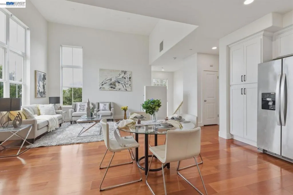 Bright, southeast-facing, meticulously maintained home filled with abundant natural light and beautiful mountain views from the front patio. The spacious living room features a vaulted ceiling and dramatic floor-to-ceiling windows. Recently refreshed with new interior and exterior paint. The remodeled kitchen offers a welcoming kitchen/dining area with laminate flooring, stainless steel appliances, and a pantry. The home features two bedrooms, including a spacious primary bedroom with a large walk-in closet and a full bath with separate tub and shower. Additional highlights include central heating and air conditioning and a two-car garage with generous storage space. The community offers expansive greenbelts and is conveniently located near BART, shopping, parks, the library, and top-tier medical facilities. A highly desirable property.