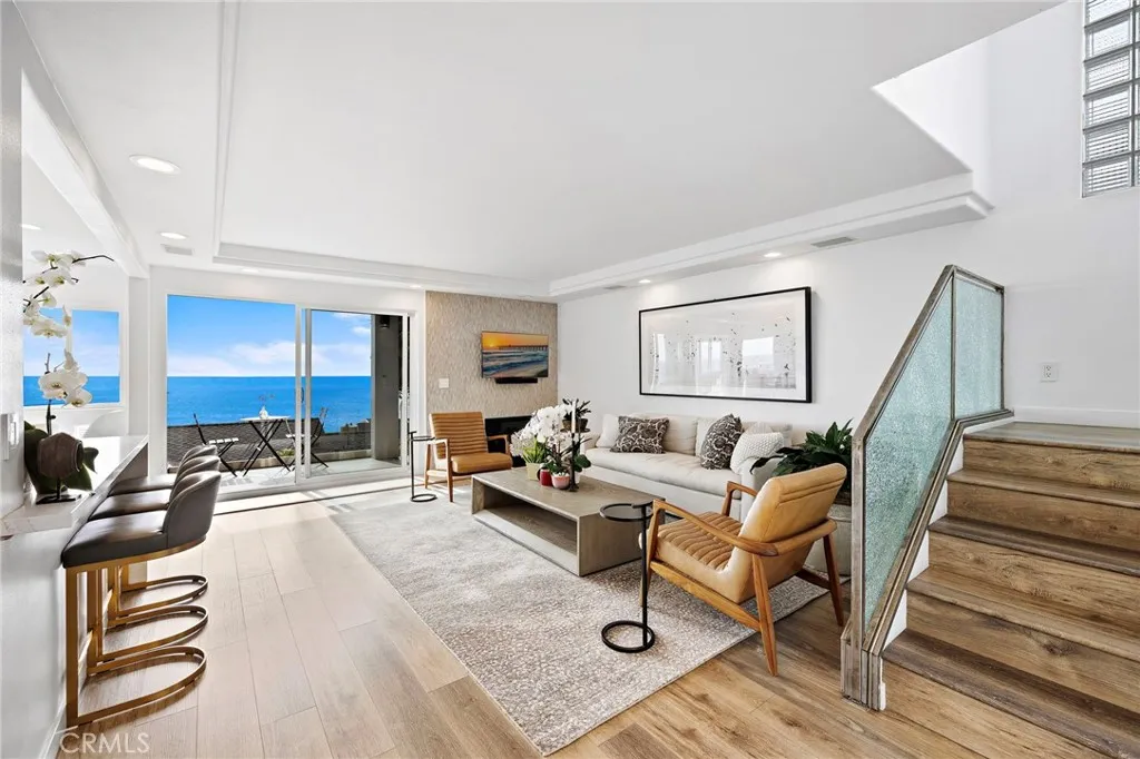 Perched on the ocean side of PCH in coveted Laguna Beach, this beautifully updated coastal residence captures sweeping ocean, coastline, Catalina Island, and sunset views from the main entertaining level and the primary suite. Light filled and inviting, the main level is designed for effortless living and entertaining, featuring a bright living room with fireplace, a remodeled kitchen with counter seating, and a dining area all opening to a stunning ocean view deck that stretches north toward Palos Verdes. The home offers multiple levels of flexible living, including additional guest quarters and a private retreat space, each thoughtfully positioned for comfort and privacy. Every level enjoys its own outdoor area, creating seamless indoor outdoor living. A lower level lounge with kitchenette adds versatility, while just below, a beautifully designed outdoor setting with a fire pit and dining area for eight provides the perfect backdrop for coastal evenings. Additional highlights include a two car garage and a premier location just a short walk to beach access, the Montage, and an array of restaurants, shops, and cafés. This is quintessential Laguna Beach living, refined, relaxed, and surrounded by beautiful ocean views.