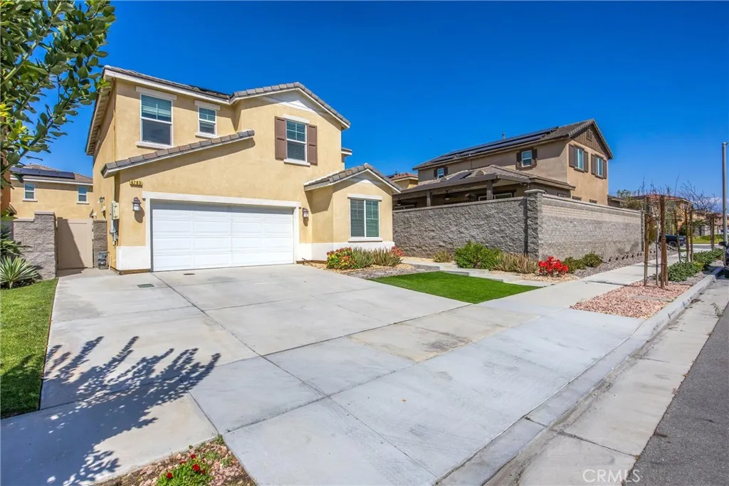 Best priced home in the area! This spacious two story home features 4 bedrooms and 3 full bathrooms, including a highly desirable downstairs bedroom with a full bath conveniently located just outside the door, perfect for guests or multi generational living. The main level offers an open concept layout where the living room, dining area, and kitchen flow seamlessly together, filled with abundant natural light. The kitchen is a chef’s dream, featuring ample storage, generous counter space, and a large pantry. Upstairs, you’ll find a spacious primary suite complete with a soaking tub, separate shower, and an oversized walk in closet. The second floor also includes two additional bedrooms, a full bathroom, a versatile sitting area, and a separate laundry room for added convenience. The exterior is designed for low maintenance, with a fully concreted backyard and an irrigated, barked front yard, just waiting for your personal touch. Solar panels are also in place to help keep utility costs down.