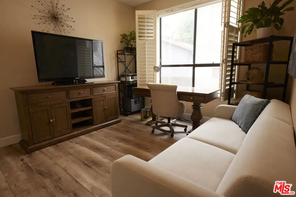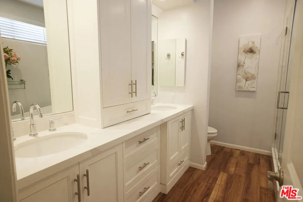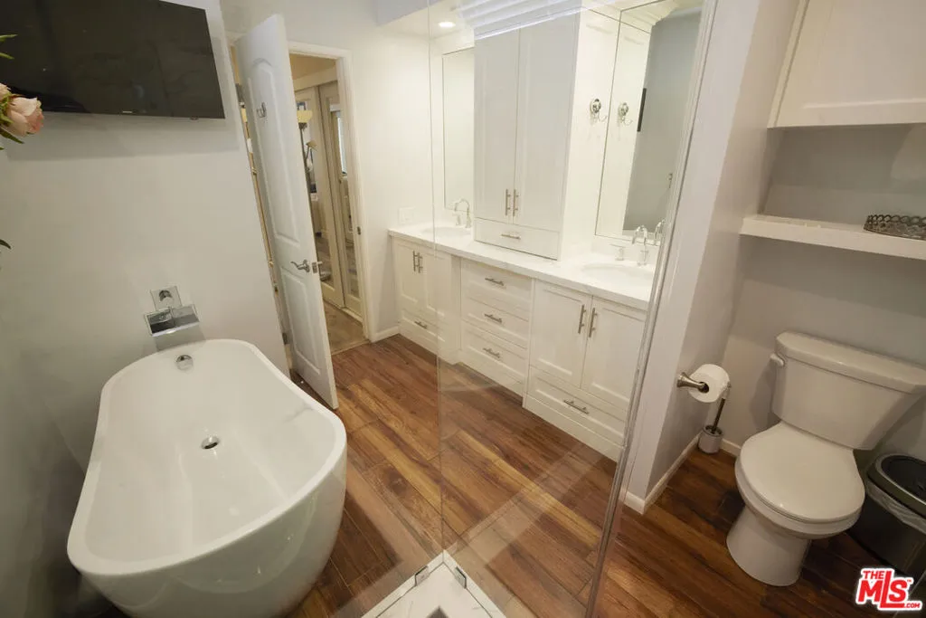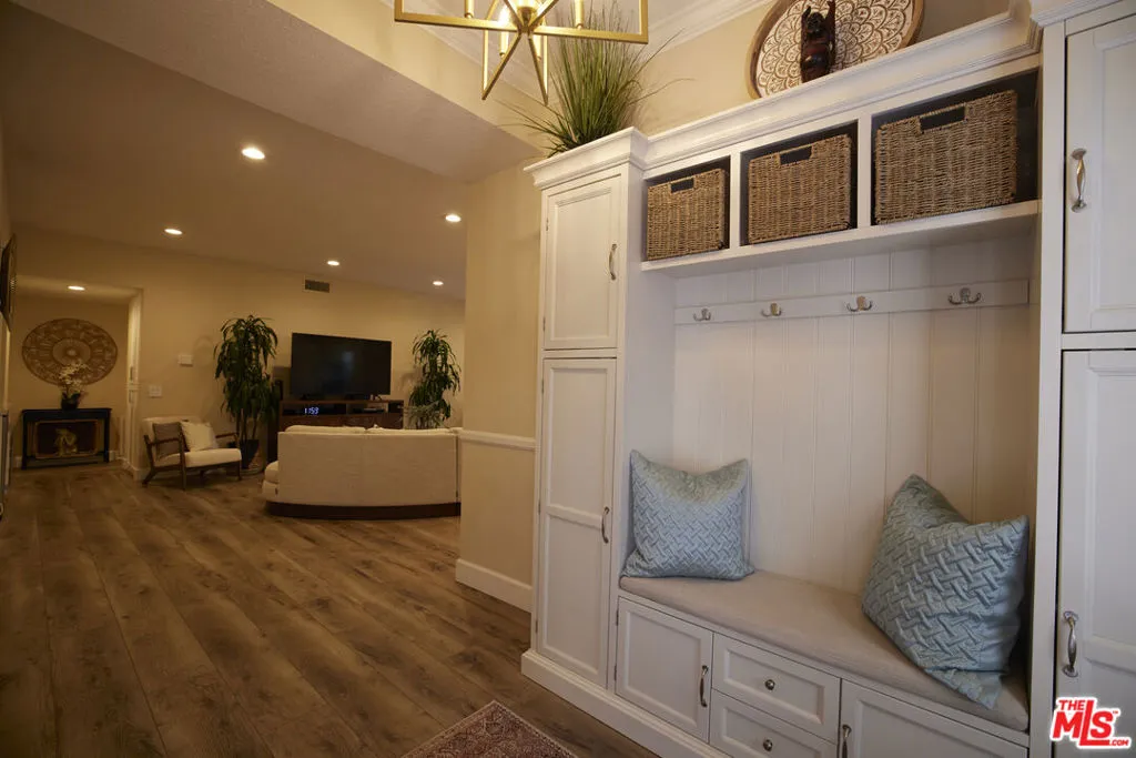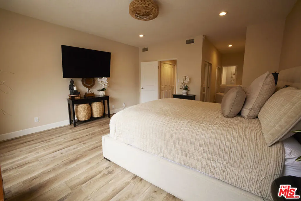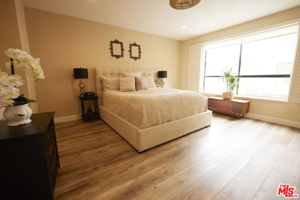 Experience a masterclass in modern design and sophisticated functionality in this meticulously upgraded residence. Fully reimagined and stripped to the studs, every square foot has been curated to create an elevated, move-in-ready sanctuary. The open-concept living and dining areas serve as the heart of the home, anchored by all-new wide-plank flooring, crisp baseboards, and designer recessed lighting. A bespoke entertainer's bar serves as a focal point, featuring premium quartz countertops, a dedicated sink, and integrated cabinetry. High-end finishes extend throughout, including new doors, custom shutters, and privacy shades. The chef-inspired kitchen is a fusion of professional performance and smart technology, boasting custom cabinetry paired with a full-slab quartz backsplash. The premium Caf appliance suite includes a double oven range, built-in oven/microwave combo, and a French door refrigerator, all complemented by a high-performance Bosch dishwasher. Modern lifestyle essentials are seamlessly integrated, from the Insta Hot water dispenser and advanced filtration system to the Caf Smart Hub for app-controlled home convenience. Both bathrooms have been fully renovated with designer tile, Moen fixtures, and custom quartz counters. The primary sanctuary offers a peaceful retreat with custom built-ins and mirrored closets, leading to a spa-like ensuite featuring a freestanding soaking tub with a waterfall faucet and a dual vanity with a dedicated storage tower. Total peace of mind is ensured by an entirely new infrastructure, including a full HVAC system, updated plumbing and electrical, a new fuse panel, and a high-capacity washer and dryer. The HOA delivers exceptional value and a resort-style lifestyle, providing access to a private pool, spa, gym, and sauna. The residence is fully optimized for the modern professional with Spectrum Internet Ultra (600 Mbps) and a comprehensive streaming suite featuring Max, Disney+, Hulu, ESPN, Paramount+, and Peacock. With no scheduled assessments, this is a rare opportunity to own a fully modernized home with world-class amenities in a premier location.