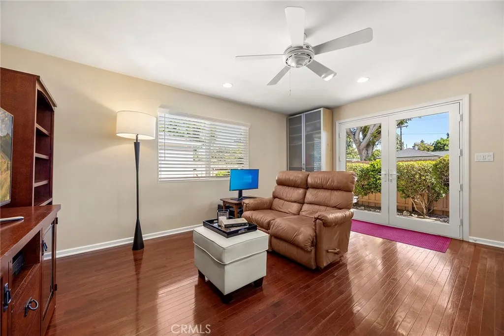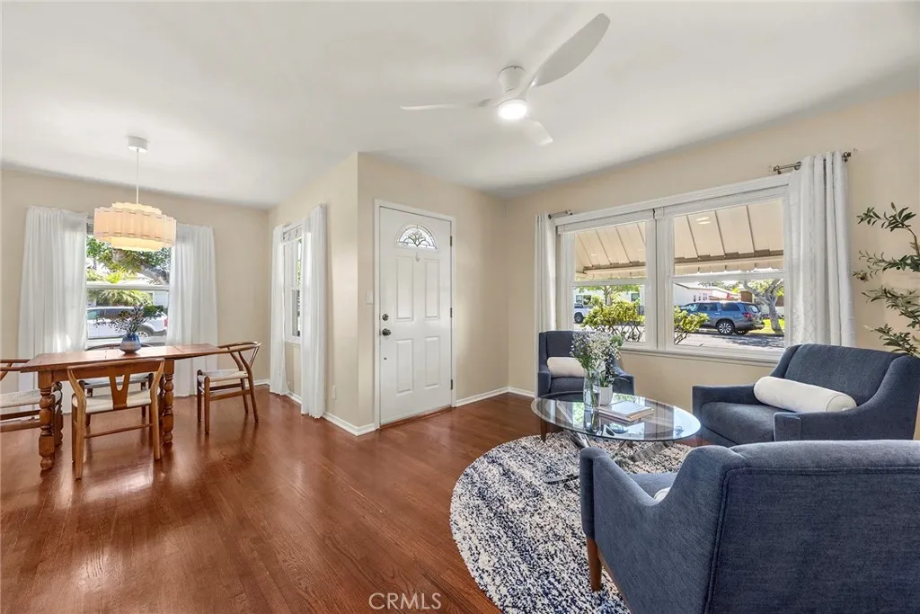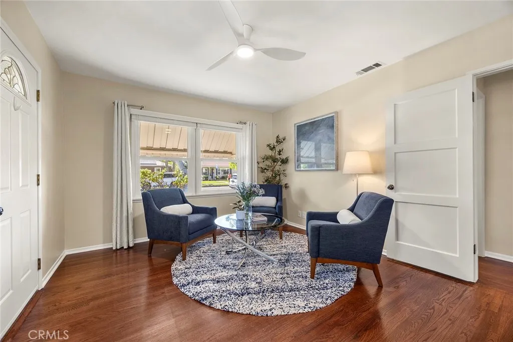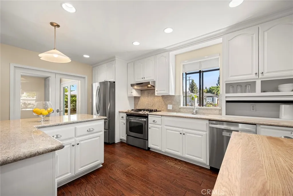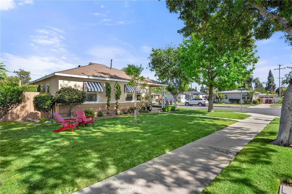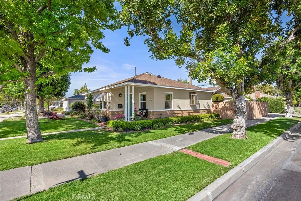 The epitome of charm and 1950’s nostalgia, featuring a welcoming front porch, charming sunshades on the windows and a manicured landscape, you’ll immediately be enamored by 300 N. Wayne Avenue ideally situated in the coveted ‘Lower Muck’ neighborhood of Fullerton and within the highly regarded Parks Jr. and Sunny Hills High school districts. Expanded and beautifully remodeled by its long-term owners, this quality home checks so many boxes. Stepping inside original hardwood floors are found throughout the living and dining areas, hallway and in each of the bedrooms. The open concept kitchen was fully remodeled and now features granite counters, S.S. appliances including a gas range, dishwasher and quality custom cabinets. A breakfast bar and convenient coffee bar area are added highlights of the kitchen and a charming south facing garden window and recessed lighting together brighten the space. Off the kitchen double glass French doors lead to the family room, part of a permitted addition to the home. A comfortable space with wood flooring and French doors that lead to the backyard. The secondary bedrooms each feature ideal closet space and ceilings fans and have easy access to the beautifully remodeled and classically appointed hall bathroom; complete with grey marble tile flooring and custom white marble shower enclosure with frameless glass door, dual shower fixtures including a rainfall shower head. Custom wainscotting and a pedestal sink add to the charm. A rare find in this age of home, a full-size laundry room with side-by-side washer/dryer hookups plus additional cabinetry and sink is found off the hallway. The primary suite is a true retreat with cozy sitting alcove and an amazing walk-in closet with custom organizers and a beautiful reeded glass pocket door, ideally matched to the door leading to the amazing en-suite bathroom. Truly spa like, the bathroom features a dual sink vanity, Kohler bathtub with custom tile and niches in addition to a separate marble tile shower. Outside in the backyard the manicured landscaping continues and is complimented by a peaceful patio area, fruit trees and a sunny sitting area in front of a trellis with climbing roses. The 2-car detached garage is just steps from the back porch. Other quality improvements include water heater and newer main water supply line (2023), newer whole house softener (2021) and main sewer pipe re-lining to city main (2023). Enjoy this enviable location within a short walk of Adlena Park.