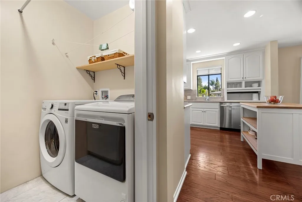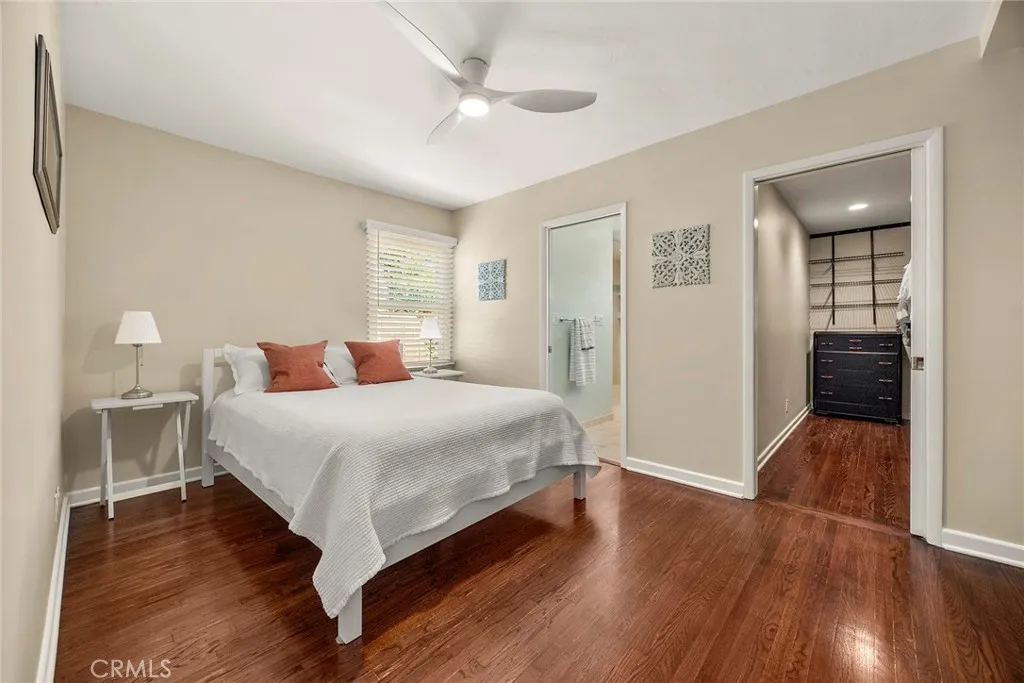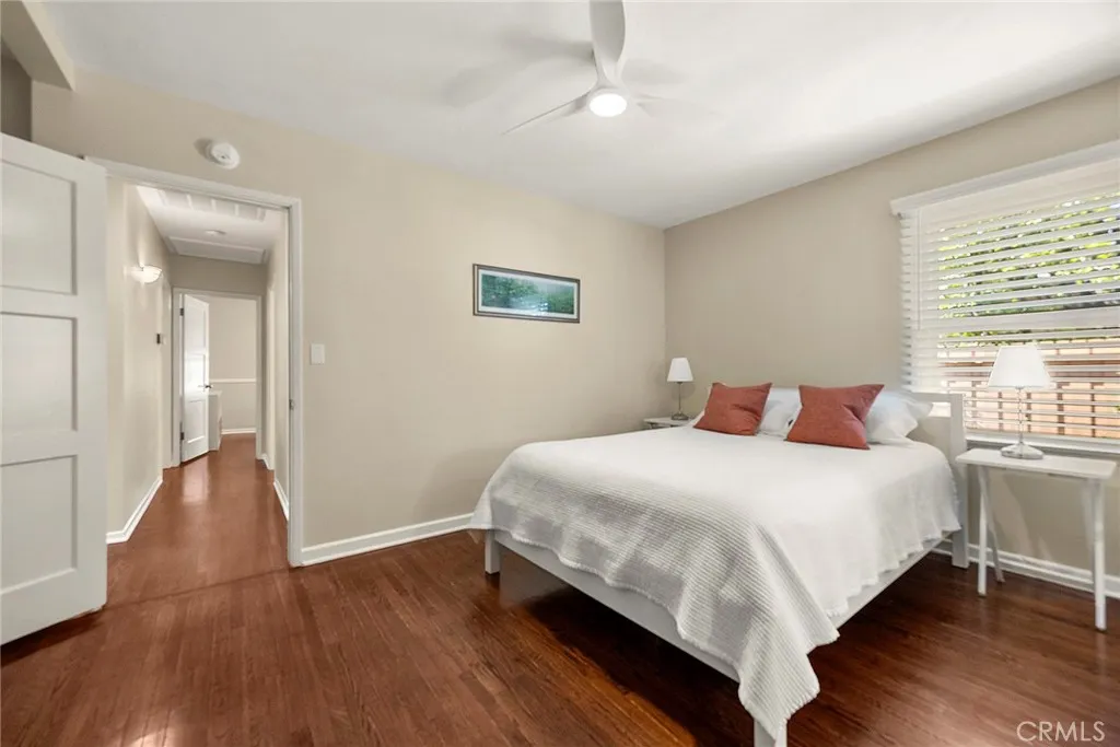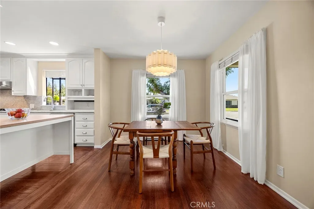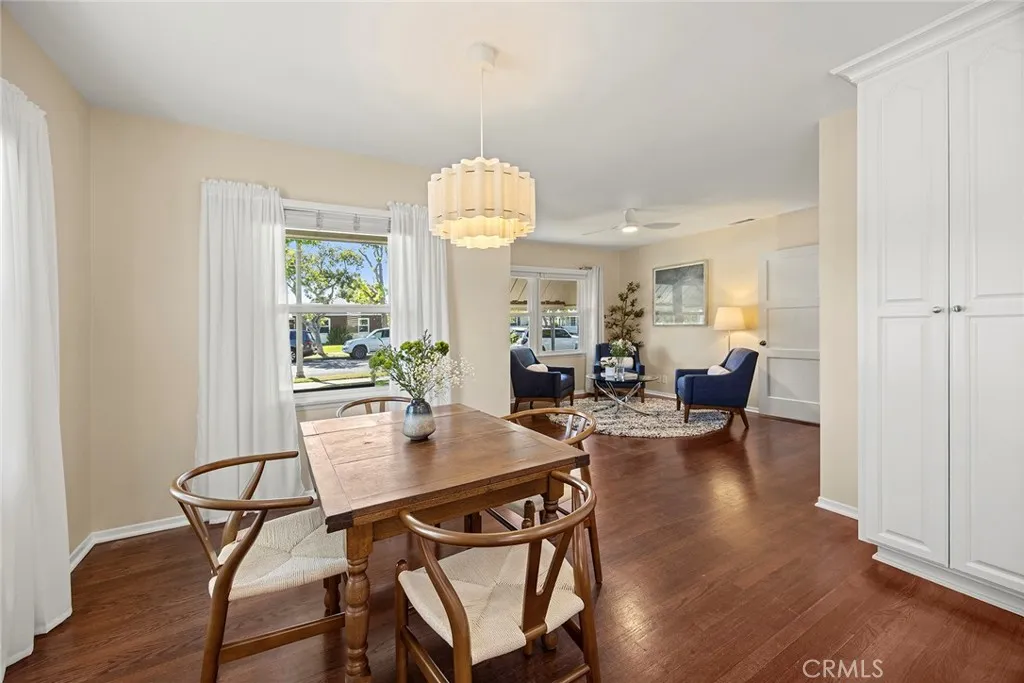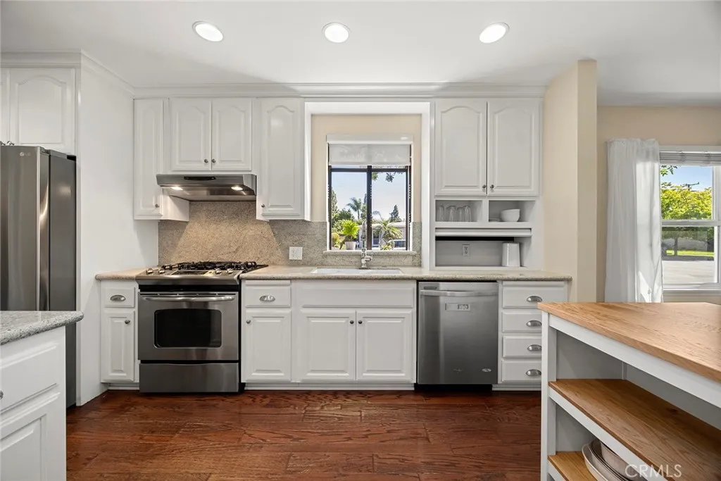 The epitome of charm and 1950’s nostalgia, featuring a welcoming front porch, charming sunshades on the windows and a manicured landscape, you’ll immediately be enamored by 300 N. Wayne Avenue ideally situated in the coveted ‘Lower Muck’ neighborhood of Fullerton and within the highly regarded Parks Jr. and Sunny Hills High school districts. Expanded and beautifully remodeled by its long-term owners, this quality home checks so many boxes. Stepping inside original hardwood floors are found throughout the living and dining areas, hallway and in each of the bedrooms. The open concept kitchen was fully remodeled and now features granite counters, S.S. appliances including a gas range, dishwasher and quality custom cabinets. A breakfast bar and convenient coffee bar area are added highlights of the kitchen and a charming south facing garden window and recessed lighting together brighten the space. Off the kitchen double glass French doors lead to the family room, part of a permitted addition to the home. A comfortable space with wood flooring and French doors that lead to the backyard. The secondary bedrooms each feature ideal closet space and ceilings fans and have easy access to the beautifully remodeled and classically appointed hall bathroom; complete with grey marble tile flooring and custom white marble shower enclosure with frameless glass door, dual shower fixtures including a rainfall shower head. Custom wainscotting and a pedestal sink add to the charm. A rare find in this age of home, a full-size laundry room with side-by-side washer/dryer hookups plus additional cabinetry and sink is found off the hallway. The primary suite is a true retreat with cozy sitting alcove and an amazing walk-in closet with custom organizers and a beautiful reeded glass pocket door, ideally matched to the door leading to the amazing en-suite bathroom. Truly spa like, the bathroom features a dual sink vanity, Kohler bathtub with custom tile and niches in addition to a separate marble tile shower. Outside in the backyard the manicured landscaping continues and is complimented by a peaceful patio area, fruit trees and a sunny sitting area in front of a trellis with climbing roses. The 2-car detached garage is just steps from the back porch. Other quality improvements include water heater and newer main water supply line (2023), newer whole house softener (2021) and main sewer pipe re-lining to city main (2023). Enjoy this enviable location within a short walk of Adlena Park.