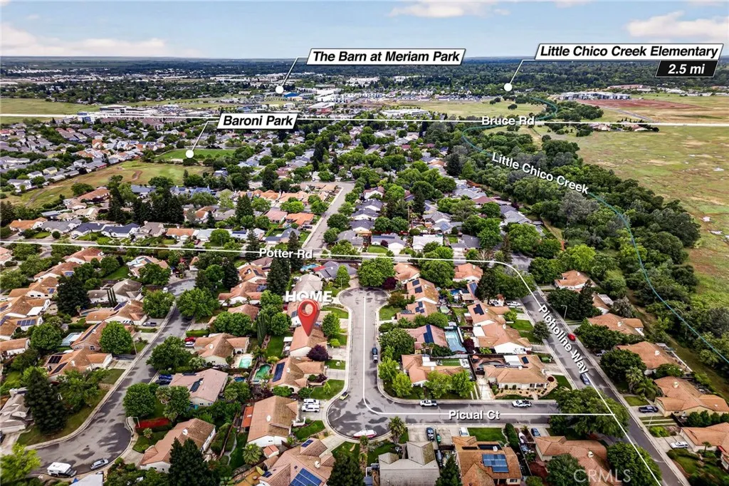 Tucked away on a quiet cul-de-sac in Little Chico Creek Estates, this 3-bedroom, 2-bath home offers a comfortable and functional layout designed for everyday living. With 1,673 square feet, the floor plan provides a sense of space while maintaining a warm, approachable feel. The living room features a temperature-controlled gas fireplace and connects easily to the rest of the home, creating a natural gathering space. The kitchen offers generous counter space and beautiful countertops, making it practical for both daily use and hosting. The primary suite is thoughtfully positioned on the opposite side of the home from the additional bedrooms and bathroom, offering added privacy. Step outside to a beautifully manicured backyard designed for low maintenance, complete with mature trees, open lawn space, and two patio covers for year-round use. Located just around the corner from Baroni Park and within a block of Little Chico Creek trails, this home also places you less than half a mile from Meriam Park’s dining, coffee, and recreation options.