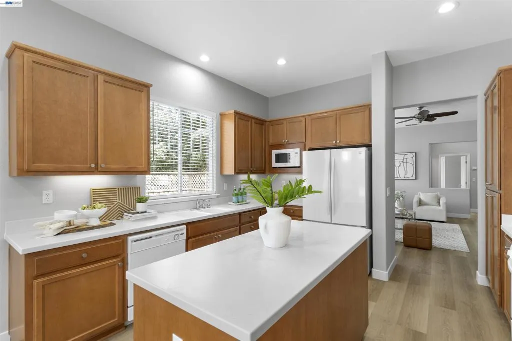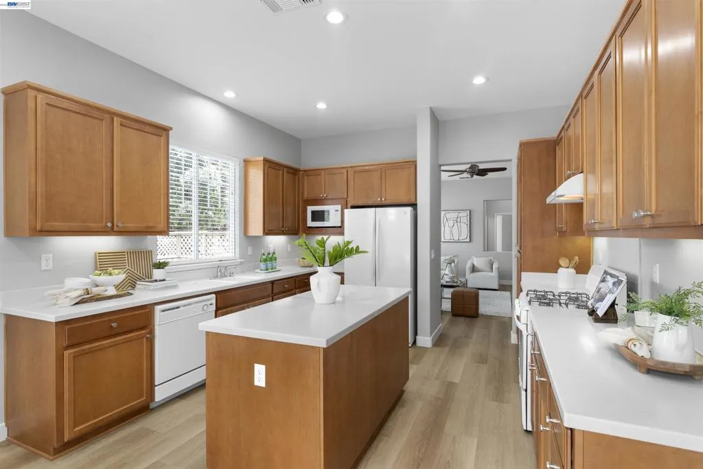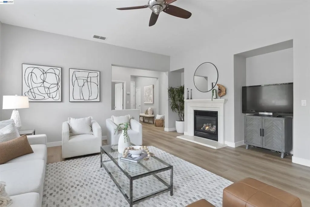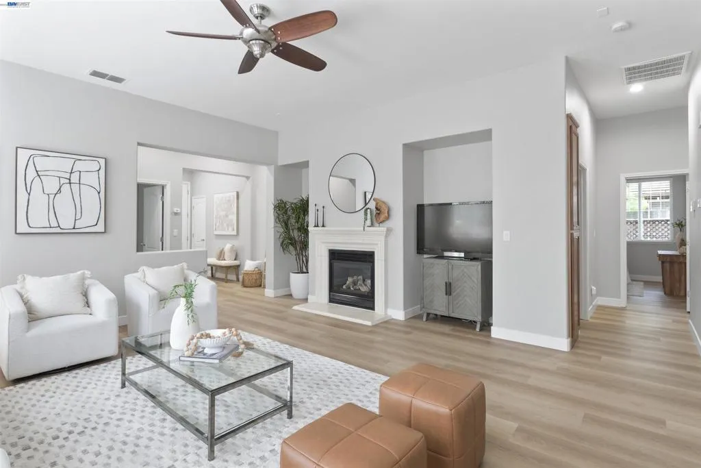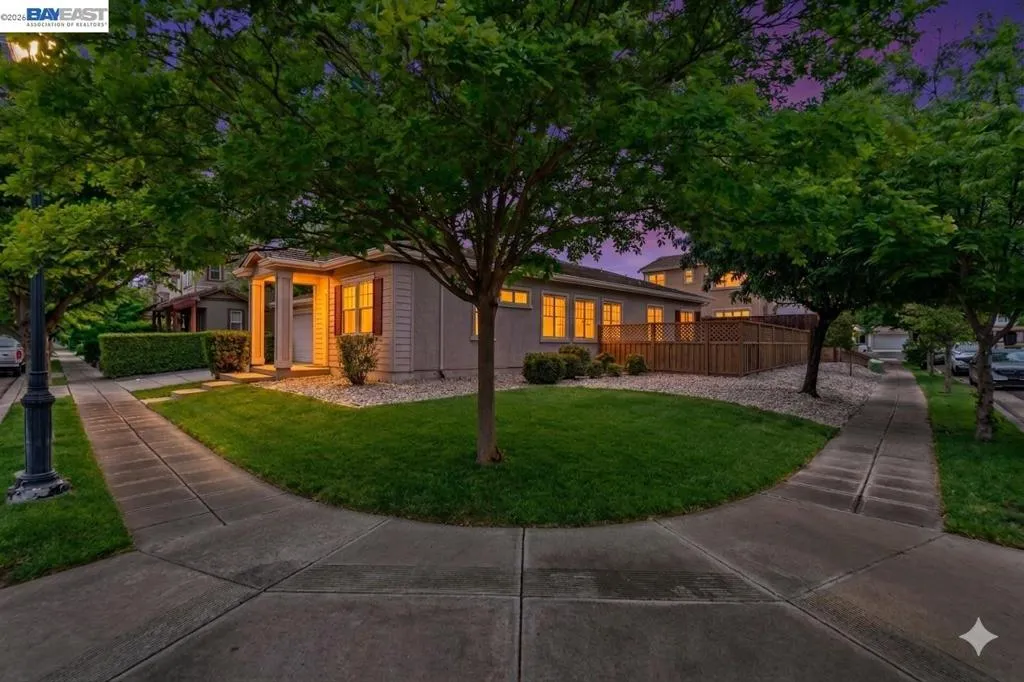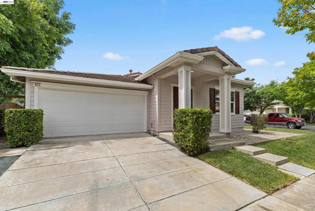 Welcome to 327 Goodall this coveted East-facing single-story 4 bedroom 3 full bath model has been meticulously maintained and sits prominently on a sprawling corner lot. Completely move-in ready, the home features brand-new luxury vinyl plank flooring and designer paint that flows seamlessly through every room. Upon entry, you are greeted by a massive great room boasting high vaulted ceilings and a cozy gas fireplace. Large windows flood the space with natural light, highlighting the open, airy floor plan. The heart of the home is the gourmet eat-in kitchen, complete with quartz countertops, gas appliances and a prep island—perfect for hosting friends and family. The spacious owner’s suite serves as a private retreat, featuring a soaking tub, double vanities, and a generous walk-in closet. Three additional generously sized bedrooms and two well-appointed guest bathrooms provide ample space and comfort for family or visitors, ensuring everyone enjoys their own private sanctuary. Outside, the large, low-maintenance corner lot offers the ultimate backdrop for summer nights and outdoor gatherings. Located in the heart of one of the most desirable locations in Mountain House, you are steps away from trails, parks, and the award-winning Wicklund School. Say goodbye to the morning drop-off line! —walk to this award-winning K-8 school. Enjoy quick and easy access to I-580, 205, and Hwy 4. NO HOA fees! Enjoy the freedom of Mountain House living without the monthly fees. Don’t miss this opportunity to live the dream in one of Mountain House’s most established and sought-after neighborhoods!