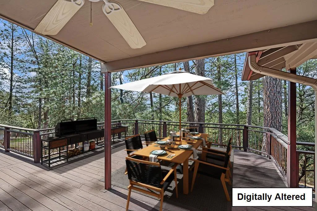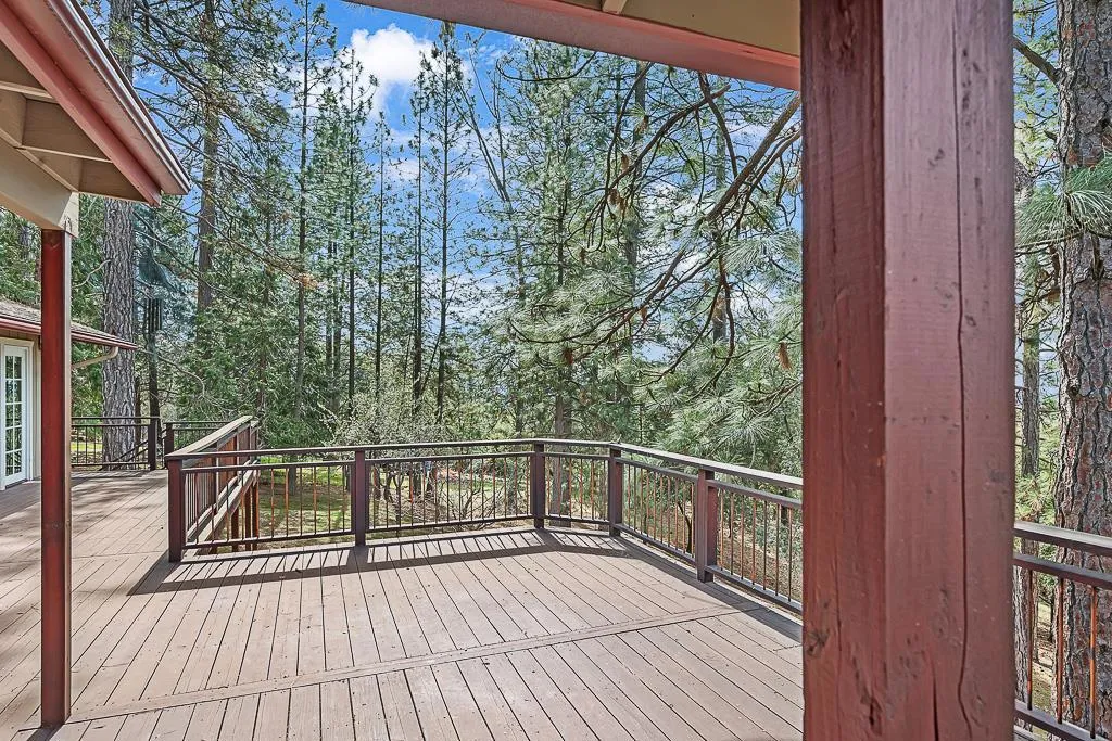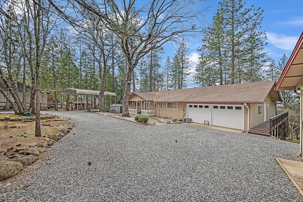 Nestled in the highly sought after Pine Acres community, this lovingly maintained home offers just over an acre of serene, nature-filled living with gorgeous views of the valley. Whether you are drinking your morning coffee on the front porch or relaxing on the deck, this property provides the ultimate sanctuary. The natural light that is brought into the home offers a beautiful glow throughout. Enjoy the spacious kitchen with granite countertops, double ovens as well as a full sized pantry to make entertaining a breeze. The primary ensuite brings with it a walk in closet as well as lovely views of the surrounding landscape while enjoying soaking in the jetted tub. 2 garages, one of which includes a workshop, and a circular driveway provide ample parking and plenty of storage for everyday living as well as weekend adventures. Step outside to discover a grand deck overlooking the beautiful backyard. The property is also equipped with FULL RV access and hookups, underground utilities, a generator, and much more. Situated in a tranquil neighborhood, the property is surrounded by lush trees and offers easy access to Gold Country Resort for a swim on those warm summer days. Whether you are a nature lover or looking for a peaceful retreat, this property is for you.
