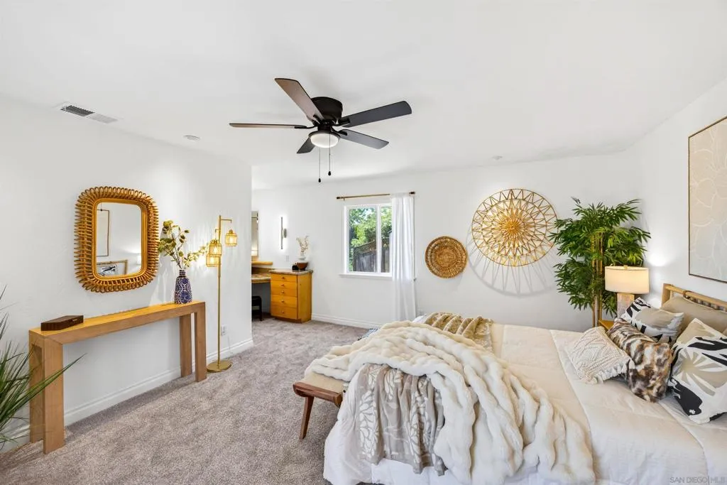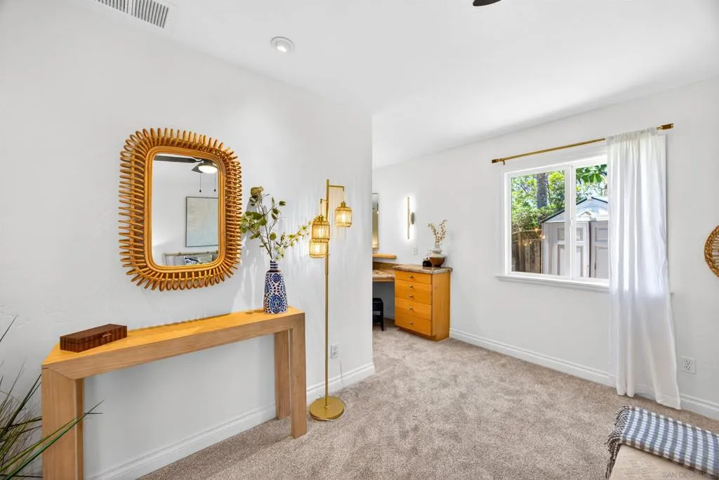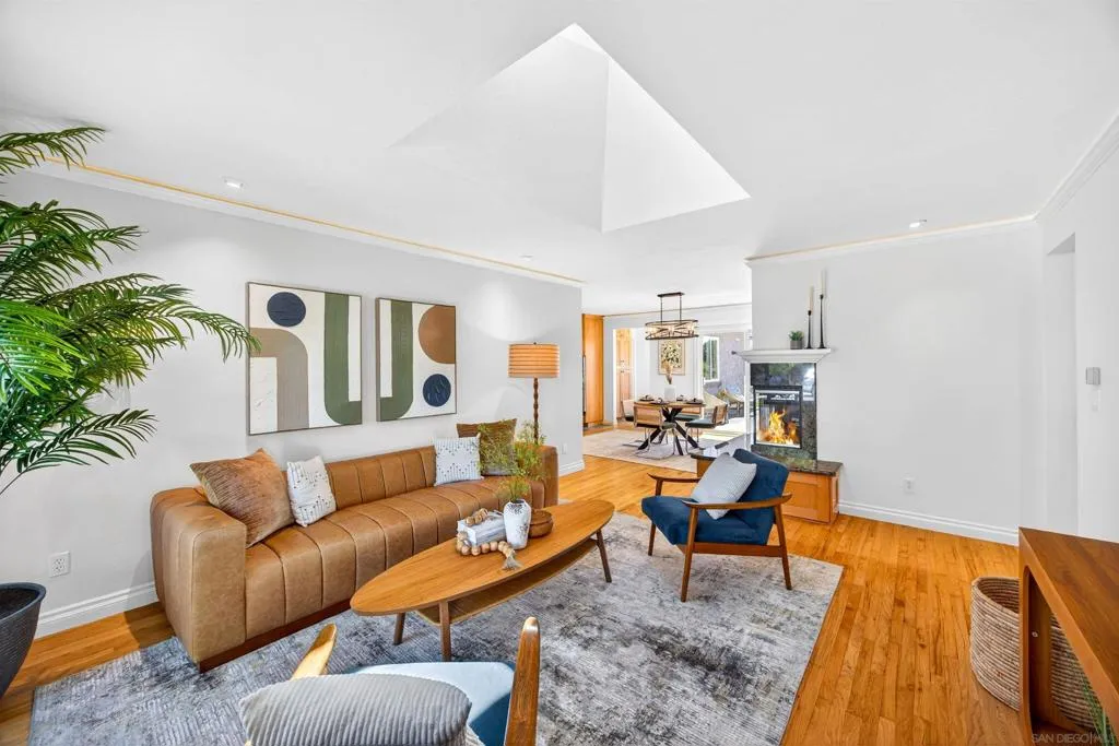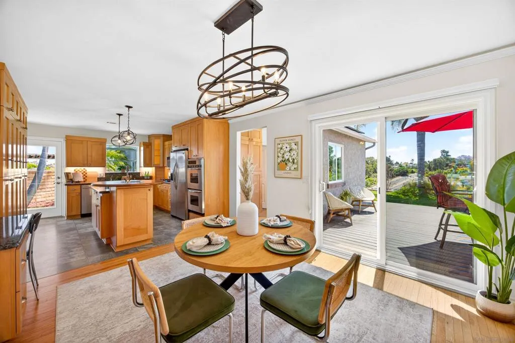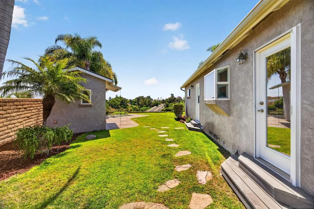 Tucked away on a peaceful cul-de-sac with breathtaking canyon views, this beautiful 4-bed, 3-bath home offers the perfect blend of privacy, comfort, and natural beauty. From the moment you arrive, you’ll feel the serenity of this special property. Inside, a light-filled, thoughtfully designed floor plan with hardwood floors throughout the living and dining room creates seamless flow for everyday living and entertaining. Expansive windows frame canyon vistas, bringing the outdoors into the home. Enhanced bedroom addition elevates the home’s livability, featuring a luxurious primary master suite retreat complete with a spa-inspired ensuite bathroom, designer vanity, and custom cabinetry offering both style and exceptional storage. This private sanctuary was designed for comfort, relaxation, and refined everyday living. Additional bedrooms are generously sized and complemented by well-appointed bathrooms for family and guests. Step outside into an extraordinary very large, usable backyard oasis- a rare find offering space, privacy, and endless possibilities.The tiered, fully fenced yard is beautifully landscaped. Enjoy a lush and productive orchard with avocado, apple, lemon, lime, peach, and multi-fruit trees, along with grapevines, roses, and garden beds. A detached workshop with electricity and water adds versatility for a studio, office, or hobby space. Ideally located near La Jolla, UTC, Pacific Beach, and Mission Beach, with easy access to major freeways, the airport, UCSD, and USD. A rare opportunity to own a private canyon-view retreat in a prime San Diego location.