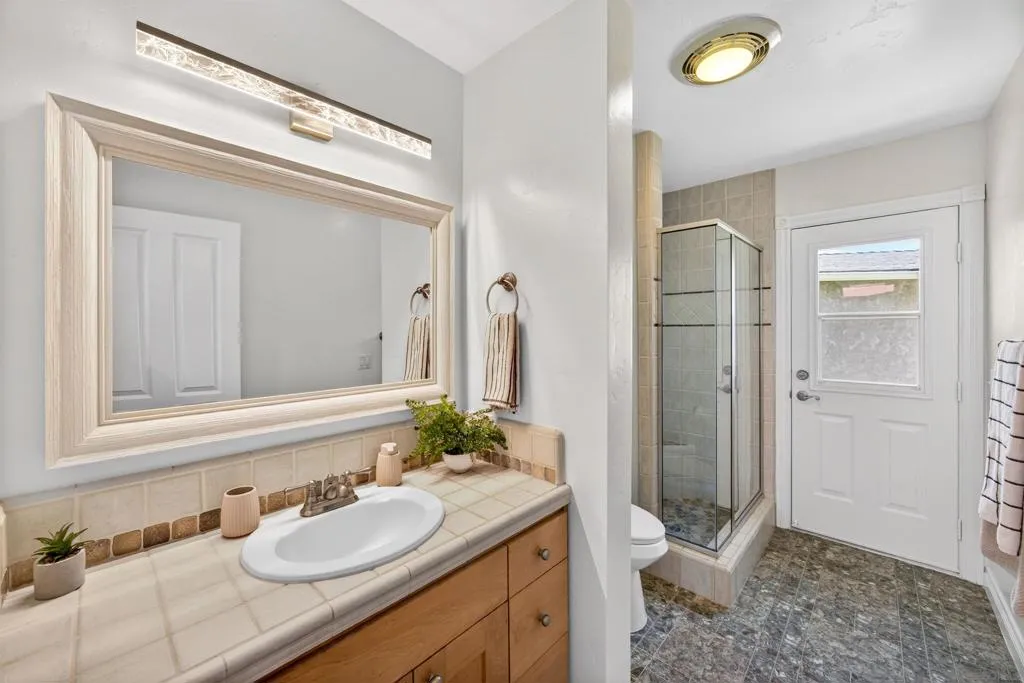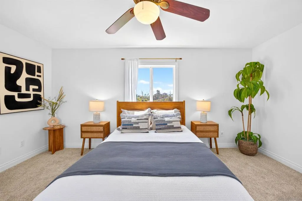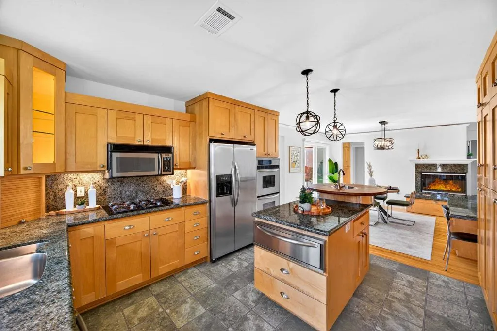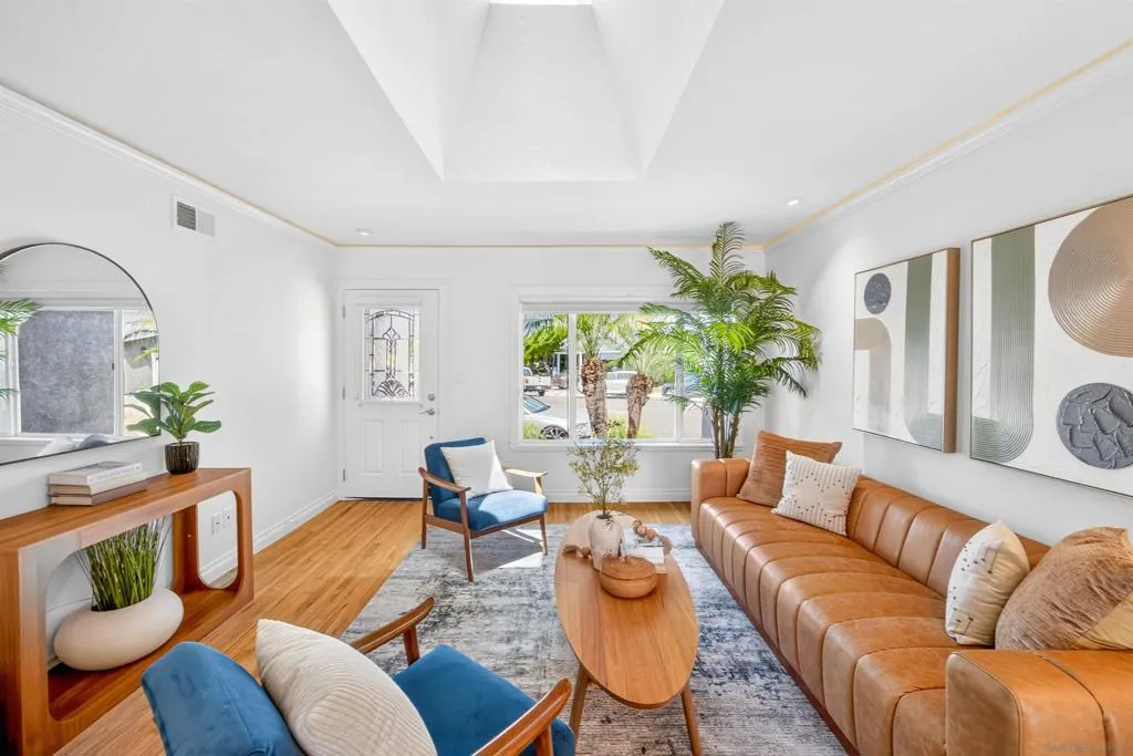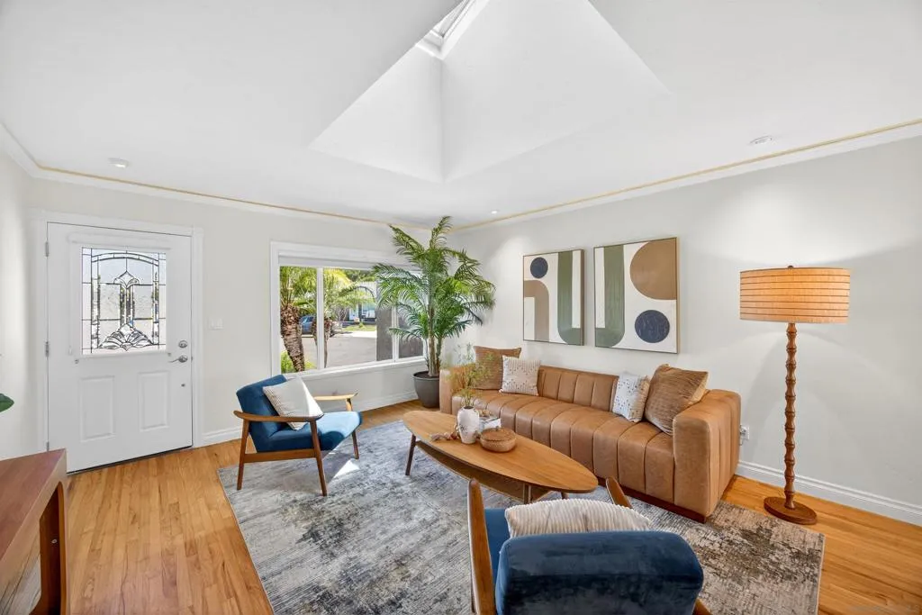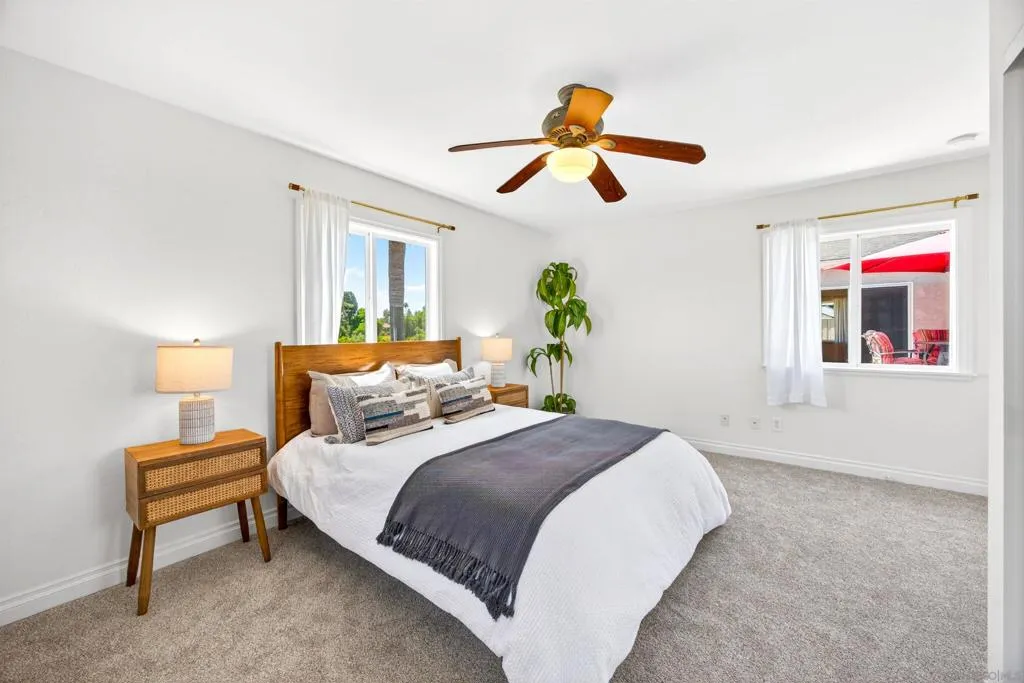 Tucked away on a peaceful cul-de-sac with breathtaking canyon views, this beautiful 4-bed, 3-bath home offers the perfect blend of privacy, comfort, and natural beauty. From the moment you arrive, you’ll feel the serenity of this special property. Inside, a light-filled, thoughtfully designed floor plan with hardwood floors throughout the living and dining room creates seamless flow for everyday living and entertaining. Expansive windows frame canyon vistas, bringing the outdoors into the home. Enhanced bedroom addition elevates the home’s livability, featuring a luxurious primary master suite retreat complete with a spa-inspired ensuite bathroom, designer vanity, and custom cabinetry offering both style and exceptional storage. This private sanctuary was designed for comfort, relaxation, and refined everyday living. Additional bedrooms are generously sized and complemented by well-appointed bathrooms for family and guests. Step outside into an extraordinary very large, usable backyard oasis- a rare find offering space, privacy, and endless possibilities.The tiered, fully fenced yard is beautifully landscaped. Enjoy a lush and productive orchard with avocado, apple, lemon, lime, peach, and multi-fruit trees, along with grapevines, roses, and garden beds. A detached workshop with electricity and water adds versatility for a studio, office, or hobby space. Ideally located near La Jolla, UTC, Pacific Beach, and Mission Beach, with easy access to major freeways, the airport, UCSD, and USD. A rare opportunity to own a private canyon-view retreat in a prime San Diego location.
