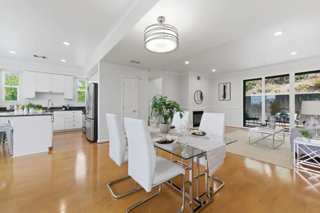 Experience modern urban living in this beautifully updated corner-unit townhouse. Featuring a rare, functional layout and fresh interior paint throughout, this home is bathed in natural light and designed for sophisticated comfort. The ground floor offers a coveted bedroom and full bathroom. The main level showcases an expansive open-concept living, dining, and kitchen area. The kitchen boasts a granite slab island, stainless steel appliances, and newly painted cabinets with sleek hardware. Enjoy seamless indoor-outdoor living with a balcony off the dining area and a private backyard patio off the living room, which features a cozy fireplace and stunning views of the Downtown San Jose. The top level houses three additional bedrooms, including a spectacular primary suite with high ceilings, a private balcony, & a walk-in closet. The spa-like primary bath includes dual sinks, a soaking tub, a separate shower, and updated lighting. Located in a prime San Jose hub, you're minutes from VTA, Hwy 87, 85, and SJ Airport. Major tech campuses Adobe, Zoom, and eBay are nearby. For recreation and shopping, enjoy proximity to Lincoln Glen, Vieira, and Canoas Parks, as well as Willow Glen Plaza, The Plant, Almaden Ranch, and Westfield Oakridge. Own a turnkey home in a world-class location!