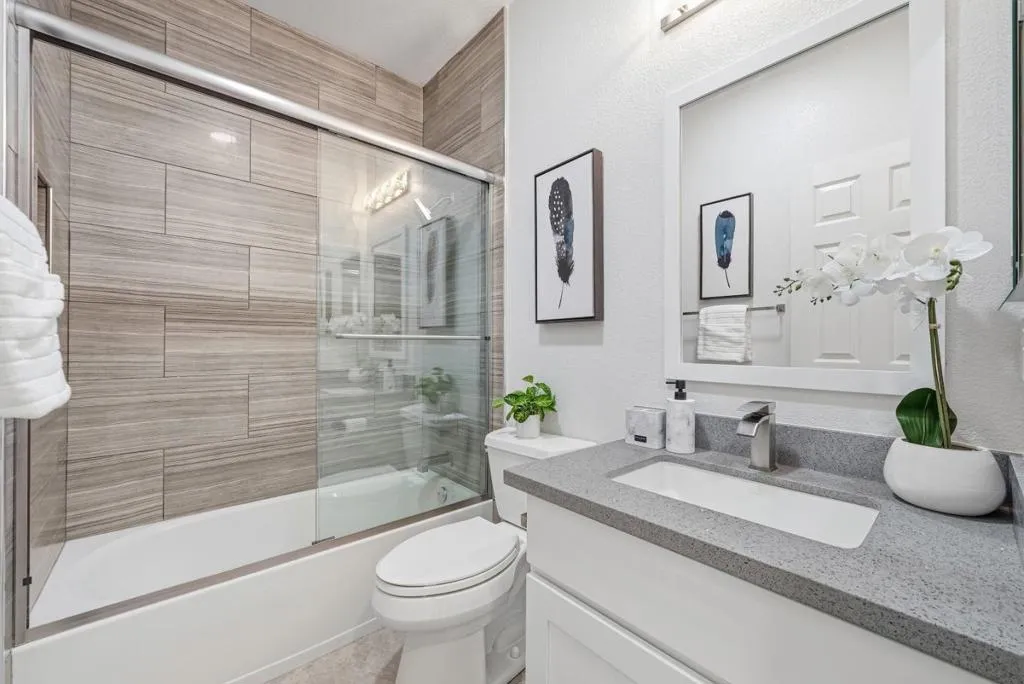 Welcome to this beautiful, light-filled end-unit townhome with 2 bedrooms, 2 bathrooms, plus a bonus room in the gated Terra Serena community of Milpitas. The main level features a spacious living room with large windows and a dining area highlighted by a stylish accent wall and elegant pendant light, with a door leading to a private balcony. The modern U-shaped kitchen offers quartz countertops and backsplash, stainless steel appliances, and ample white cabinetry. The primary suite includes a spacious bedroom, large walk-in closet, and an en-suite bathroom with double vanity and shower over tub. There is also a second bedroom and a hallway bathroom with shower over tub, along with a convenient laundry area with washer and dryer. The lower level features a bonus room ideal for an office or hobby space, plus a two-car garage. Enjoy community amenities and nearby restaurants and groceries, including Ranch 99, Walmart, and Costco, with Great Mall shopping just 5 minutes away. Easy access to Hwy 237, 880, 680, and Montague Expy, near Milpitas BART station, and a short commute to major tech companies. Top-rated Milpitas schools. Do not miss this great opportunity!